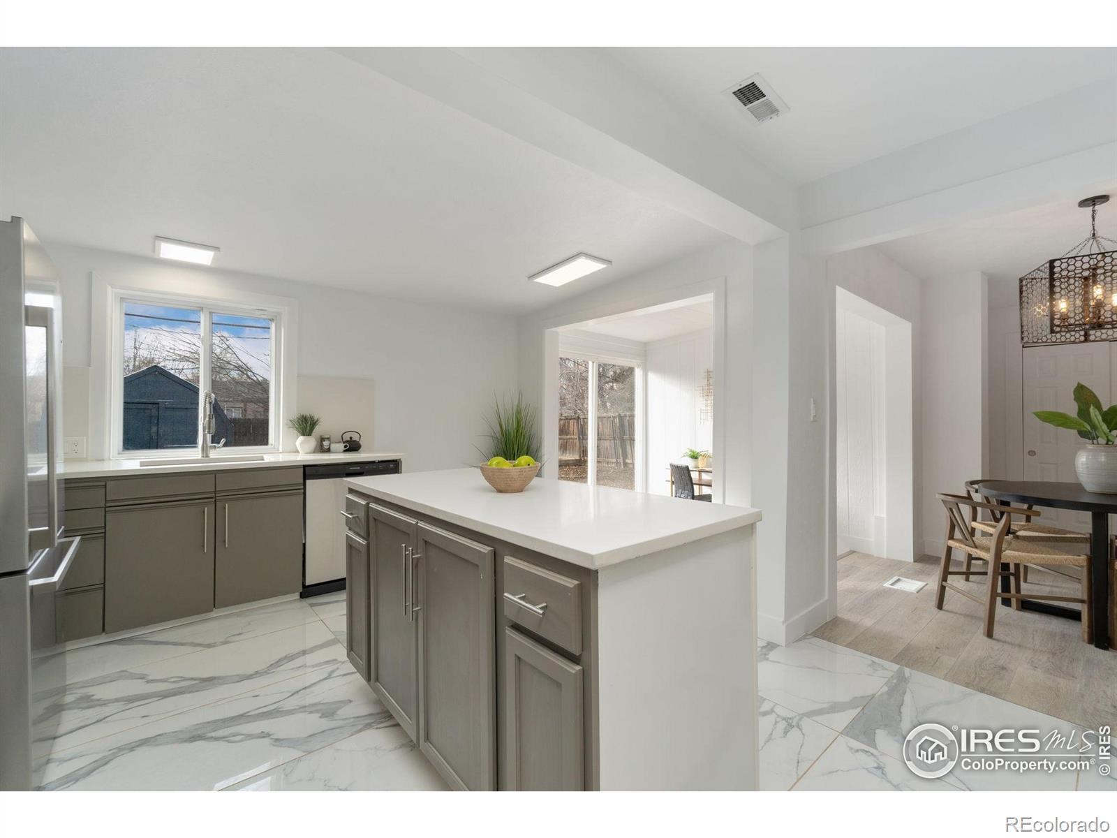 This move-in ready University Hills home offers a rare combination of value, space, and mid-century modern charm-and is being sold as-is for an incredible opportunity. Thoughtful upgrades already in place include R-49 insulation, a new sewer line, new radon mitigation system, updated electrical, and a new water heater, giving buyers peace of mind from day one.Set on a generous lot, the property truly shines with its massive garage just under 1,000 sq ft-perfect for car enthusiasts, extra storage, or an EV setup-plus two driveways and a carport for ample parking. The fully fenced backyard features brand new sod, a custom paver patio, and a storage shed, creating a functional and inviting outdoor space for entertaining or everyday enjoyment.Inside, the home feels open and welcoming with an expansive kitchen featuring quartz countertops and updated appliances that flow seamlessly into the dining and living areas. A cozy wood-burning fireplace with a striking stone surround adds warmth and character, while luxury vinyl plank flooring runs throughout the main living spaces. Both bathrooms have been completely refreshed with modern finishes that elevate the home's style.Additional improvements include a new roof and gutters (2022) and energy-efficient vinyl double-pane windows. Conveniently located near light rail access and the High Line Canal Trail, this home offers the perfect blend of urban convenience and outdoor recreation, with Cherry Creek Reservoir and U-Hills Plaza just minutes away. To top it off, the home includes a 12-month First American Eagle Premier Home Warranty for added peace of mind.