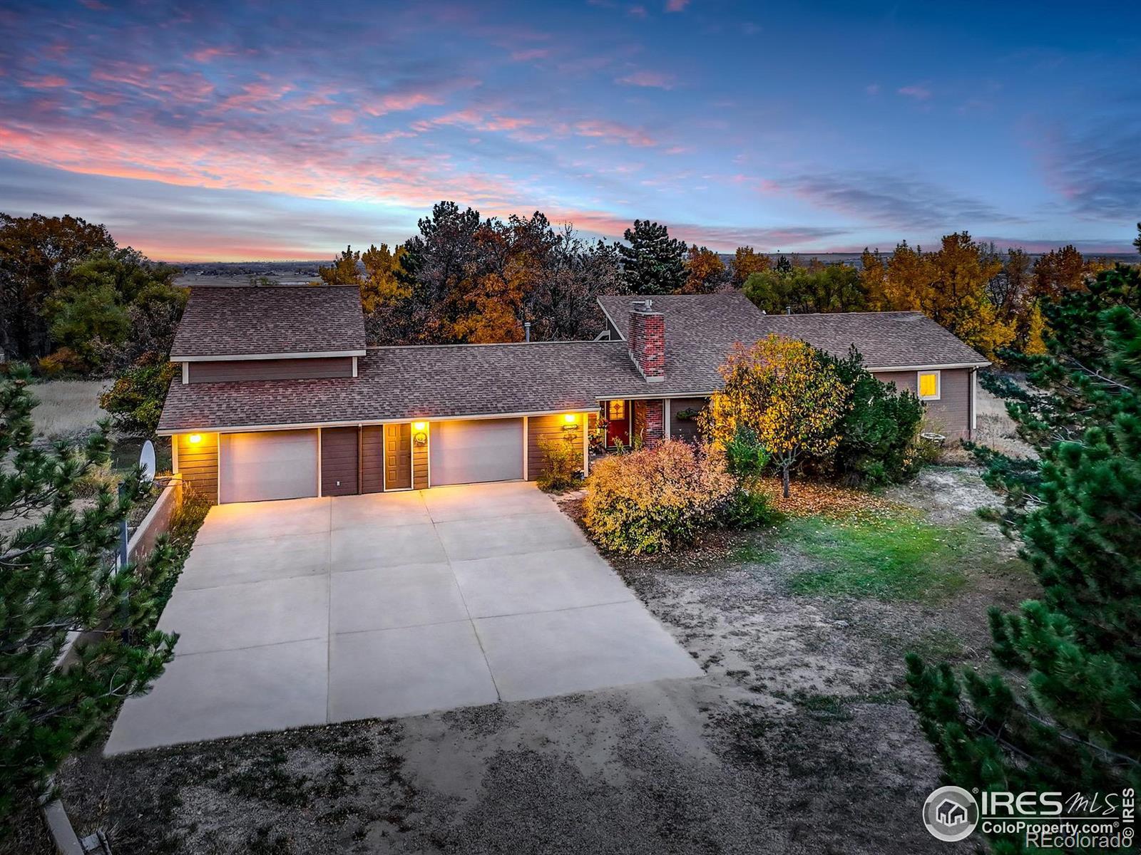 Tremendous opportunity to own a piece of pastoral paradise with breathtaking Flatiron views! This secluded property & wildlife haven offers a rare opportunity to experience the tranquility of country living while just a short drive to all that Boulder offers. Upon entering, you will be WOW'd by the living area bathed in natural light, enhanced by vaulted beamed ceilings. Gorgeous oak wood flooring is eye-catching. A cozy wood-burning fireplace highlights the open main living area, and the sunroom is the perfect space to gaze at Longmont's beautiful landscape and the twinkling city lights. The master suite is a true retreat, featuring an ensuite bath, sitting area, deck access & unbeatable Flatiron views from the picture window. A generous rec room with a gas fireplace in the walk-out basement is the perfect place for gatherings with family and friends. This space opens up to the outdoors, connecting seamlessly to the property's natural beauty. The heated oversized garage provides ample space for your vehicles and additional storage. A bonus room upstairs offers endless possibilities, whether you need a home office, studio, or exercise space. Outside, an inviting hot tub is an ideal spot for savoring Colorado at nightfall-the ultimate retreat for those seeking peace, quiet, and a connection to nature. Horse property! Zoning for up to 12 horses. Start a hobby farm or bring your animals! Minutes away is Coot Lake, Boulder Res, which offers fishing, hiking, and lake activities. Lefthand and Joder Trailheads and Boulder Valley Ranch are within 15 minutes.