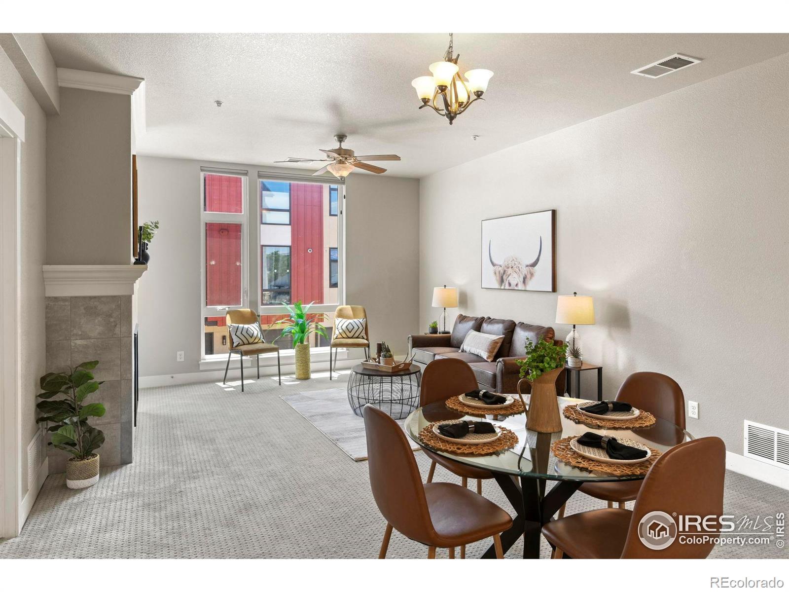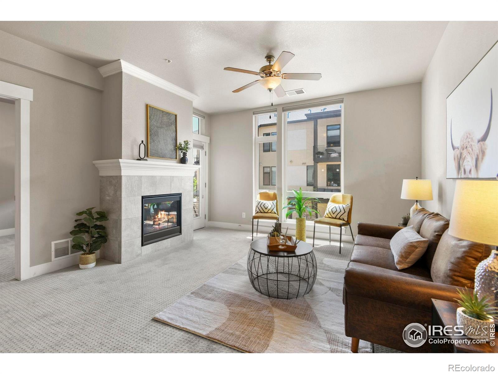 Experience elevated living in this luxurious lock and leave second-level condo, ideally located in a secure building with keypad entry and convenient elevator access. This well-appointed home features a detached garage just steps from the unit and a spacious, open floorplan designed for both comfort and function. Enjoy a beautifully updated kitchen with a large island, cozy fireplace, and a smart layout with split-bedroom design for maximum privacy.Step outside onto your private balcony-perfect for morning coffee or evening relaxation. Modern upgrades include a new all-in-one, WiFi-enabled ventless washer/dryer, a tankless hot water heater, and all appliances are thoughtfully included. Live in the heart of convenience with walkable access to grocery stores, restaurants, fitness centers, coffee shops, and the popular Power Trail. Whether you're relaxing at home or exploring the vibrant neighborhood, this condo offers the perfect blend of low-maintenance luxury and lifestyle.