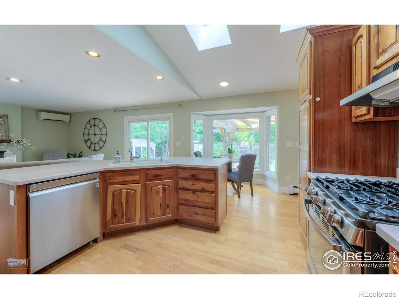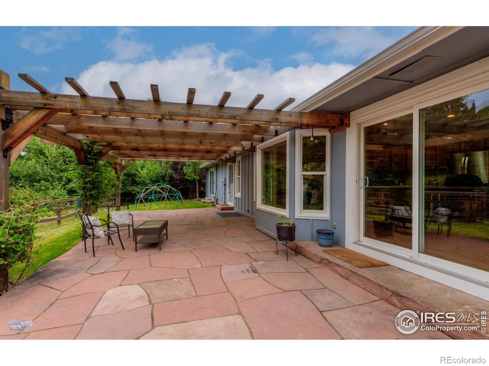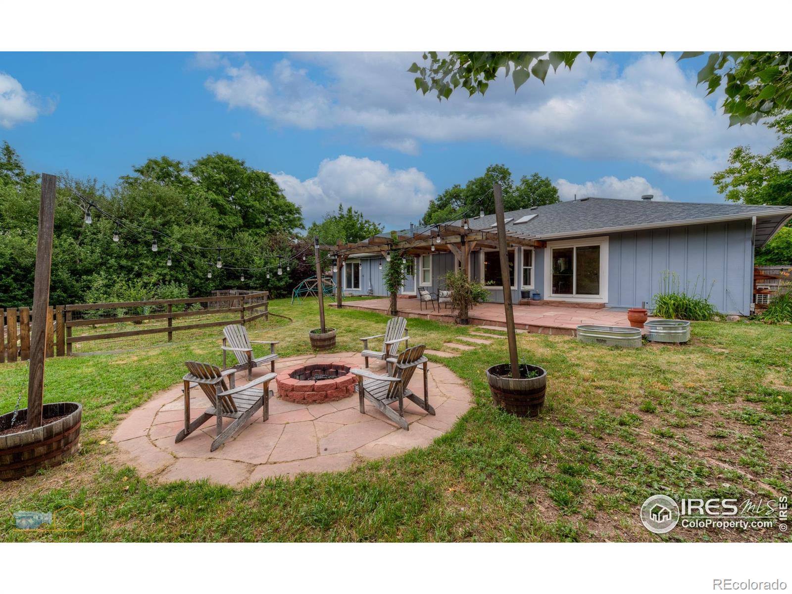 Nobody lives in Colorado to stay indoors. You'd rather enjoy your 300 days of sunshine by grilling on your pergola-covered flagstone patio, then relax around a campfire in the evening. Experience the Colorado lifestyle at this beautifully updated 5-bedroom ranch-style home on a nearly 1/3 acre lot. Just one mile from downtown Louisville's shops, restaurants, and cafes, this home offers the perfect blend of convenience, comfort, and outdoor living. Step into an open gathering room and dining area with vaulted ceilings, and another living room with a built-in electric fireplace. The modern kitchen features a spacious island, stainless steel appliances, and upgraded cabinets, giving you plenty of room to bake cookies or whip up an omelet with fresh eggs from your chickens. The spacious primary suite has a walk-in closet, private bathroom, and a private door to the beautiful backyard. The main level is completed with two more bedrooms and a 3/4 bath. Whether you spend your time indoors or out, you'll be comfortable all year round with mini splits throughout the home that double as energy efficient heat pumps. While the spacious main level has everything you need for one-floor living, the finished basement has even more. With two bedrooms, a full bathroom, and a large rec room with a wet bar and storage, you can use your imagination to set up a yoga studio, home gym, maker space, billiards lounge, home theater, guest space, or multi-generational living. With everything you need indoors, and everything you want outside, this beautiful home could be your perfect Louisville sanctuary.