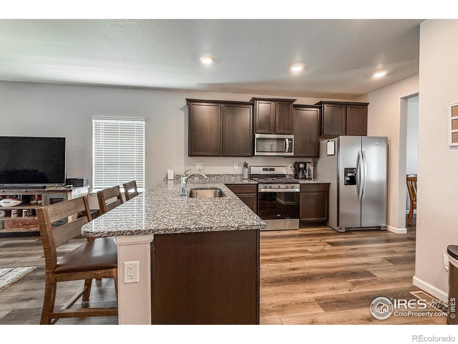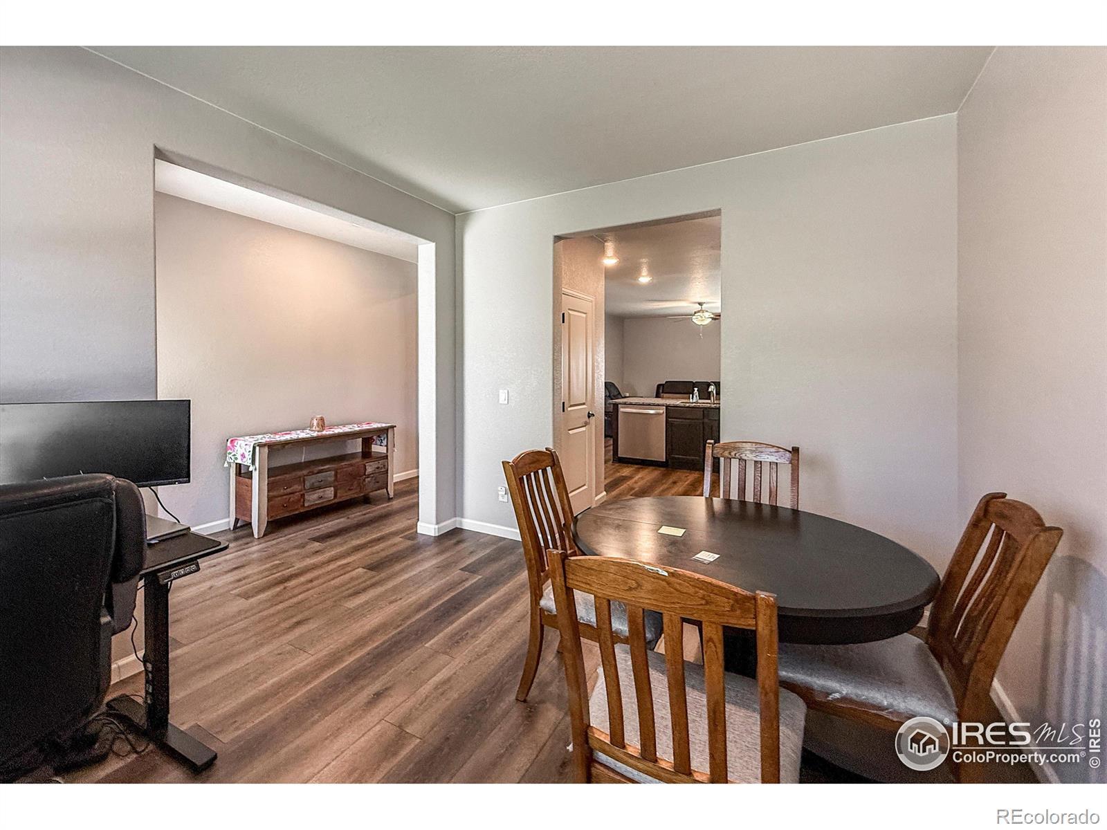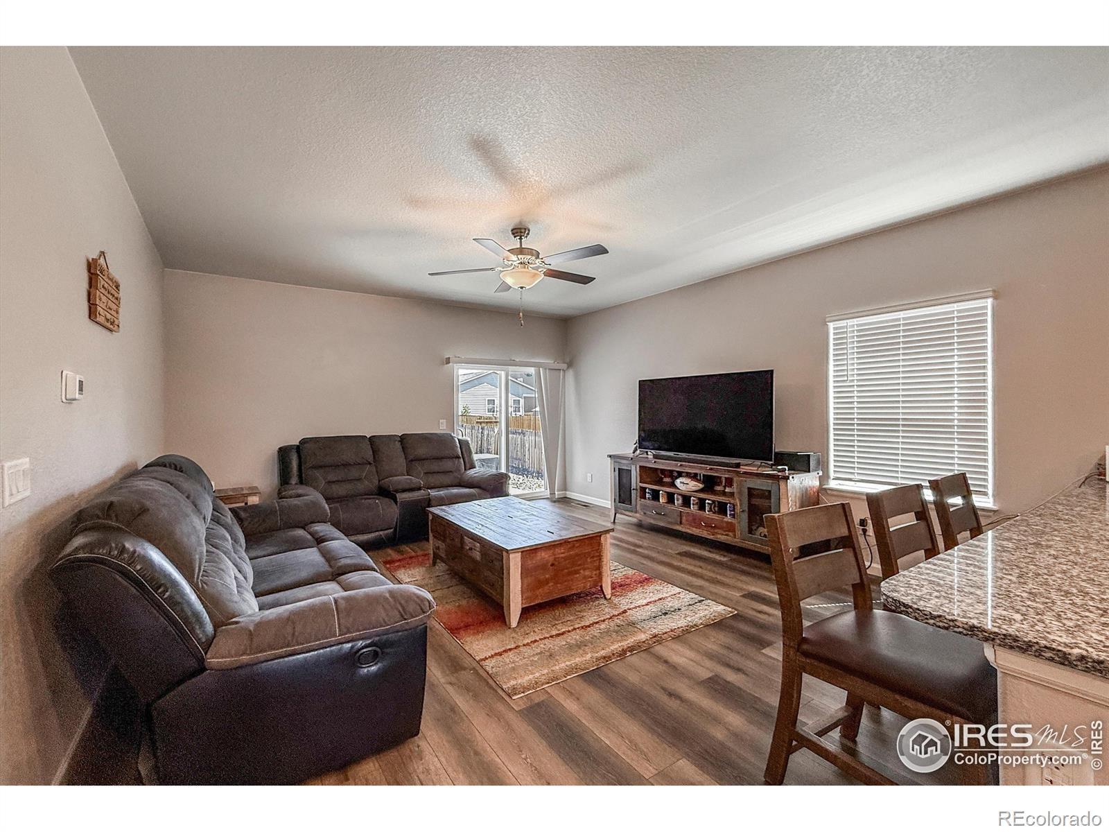 Great opportunity to own a beautifully upgraded ranch style home in vibrant neighborhood. 1472 finished square feet with 3 bedrooms and 2 full baths. Granite counters and stately cabinets with crown molding highlight a bright, open kitchen with newer Whirlpool stainless steel appliances and eat-in peninsula. Kitchen outlet features convenient USB charging port. Spacious primary bedroom with huge walk-in closet. Bathroom finishes are top-of-the-line. Beautiful manufactured wood floors throughout kitchen, living room and dining area. Large back yard with covered patio area for outdoor entertainment. Community Park with playground for recreation. Sorrento conveniently located just north of Hwy 66 with quick, easy access to north Longmont and I-25.