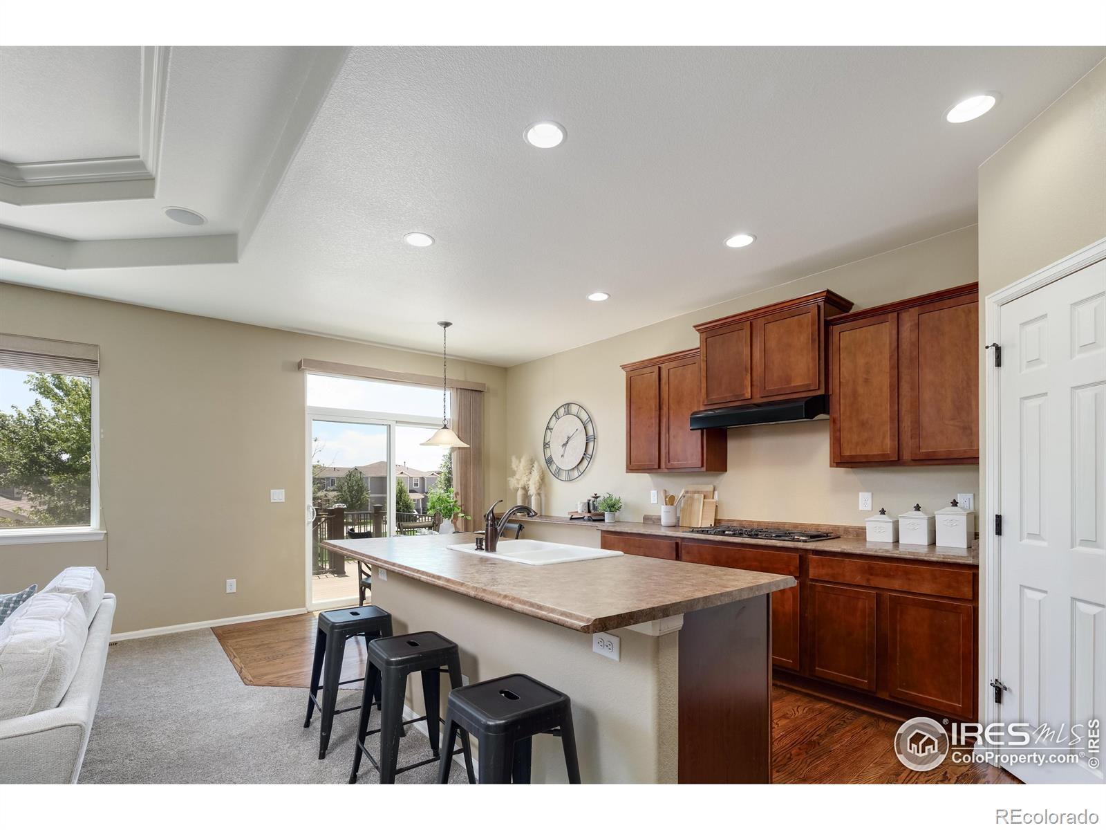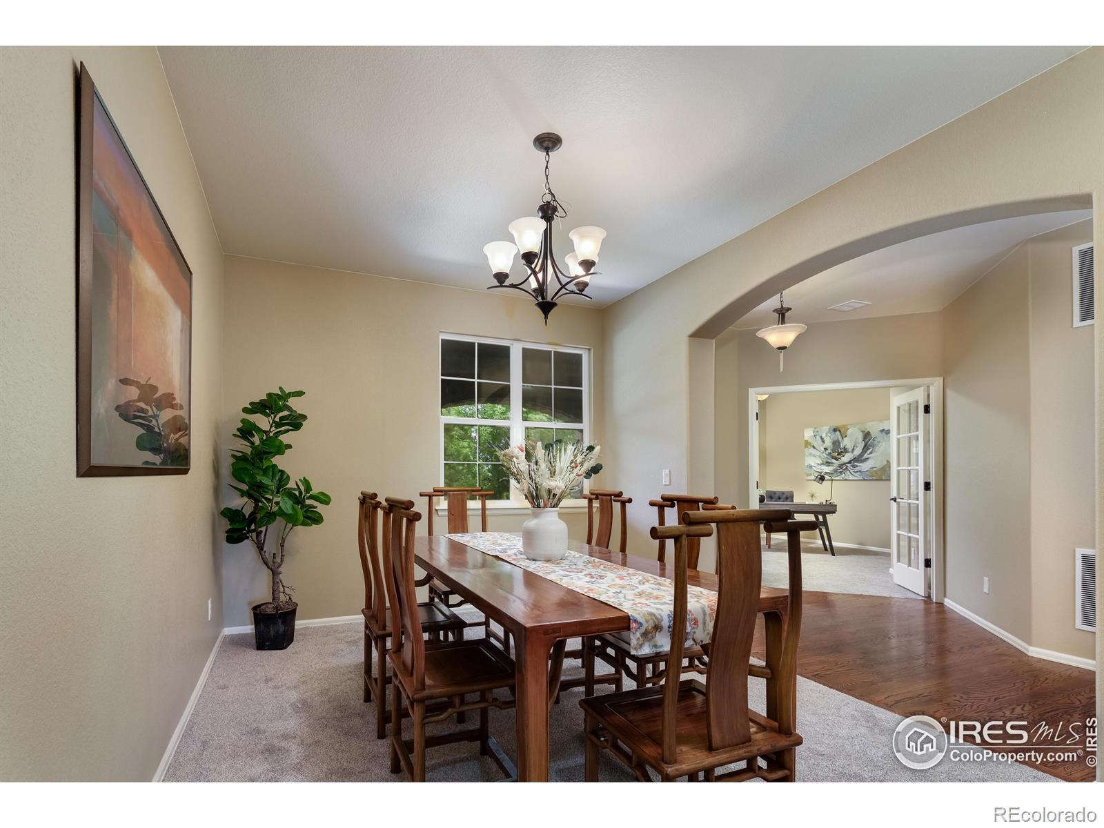 Come see this cheerful 4-bedroom, 3-bath ranch in the friendly Wyndham Hill neighborhood! This home has all the right vibes- soaring ceilings and filled with natural light. Entertaining is easy and everyday living is a joy. Whip up your favorite meals in the large kitchen with hardwood floors which includes an island perfect for coffee chats or after-school snacks. For those special occasions, the formal dining room and butler's pantry fit the bill for hosting holiday get togethers or casual movie night. When it's time to unwind, the main level primary suite offers a calm, comfortable retreat. Your ensuite bathroom has two vanities, a jetted soaking tub and roomy walk-in closet. Main level laundry? Yep, we've got that! Need space to spread out with those projects or create a kid cave? The unfinished basement is a ready-made do-it-all zone. Movie marathons, guest sleepovers, workout goals you might actually stick to- there's a place for it here. Enjoy Colorado's 300 days of sunshine on the huge back deck with a space made for summer BBQs, spectacular mountain views, and evenings under the stars. Recent upgrades, including a new roof (2023), recently serviced furnace & A/C, and an active radon mitigation system with sump pit and pump. Located close to neighborhood trails, a community pool, and quick access to I-25, this home delivers comfort, convenience, and a new place to call home. It's Time to Come Home.