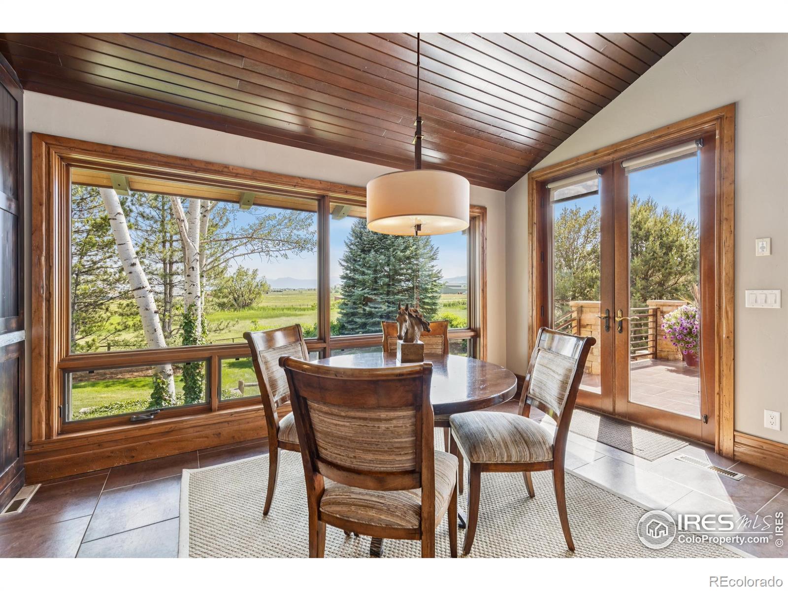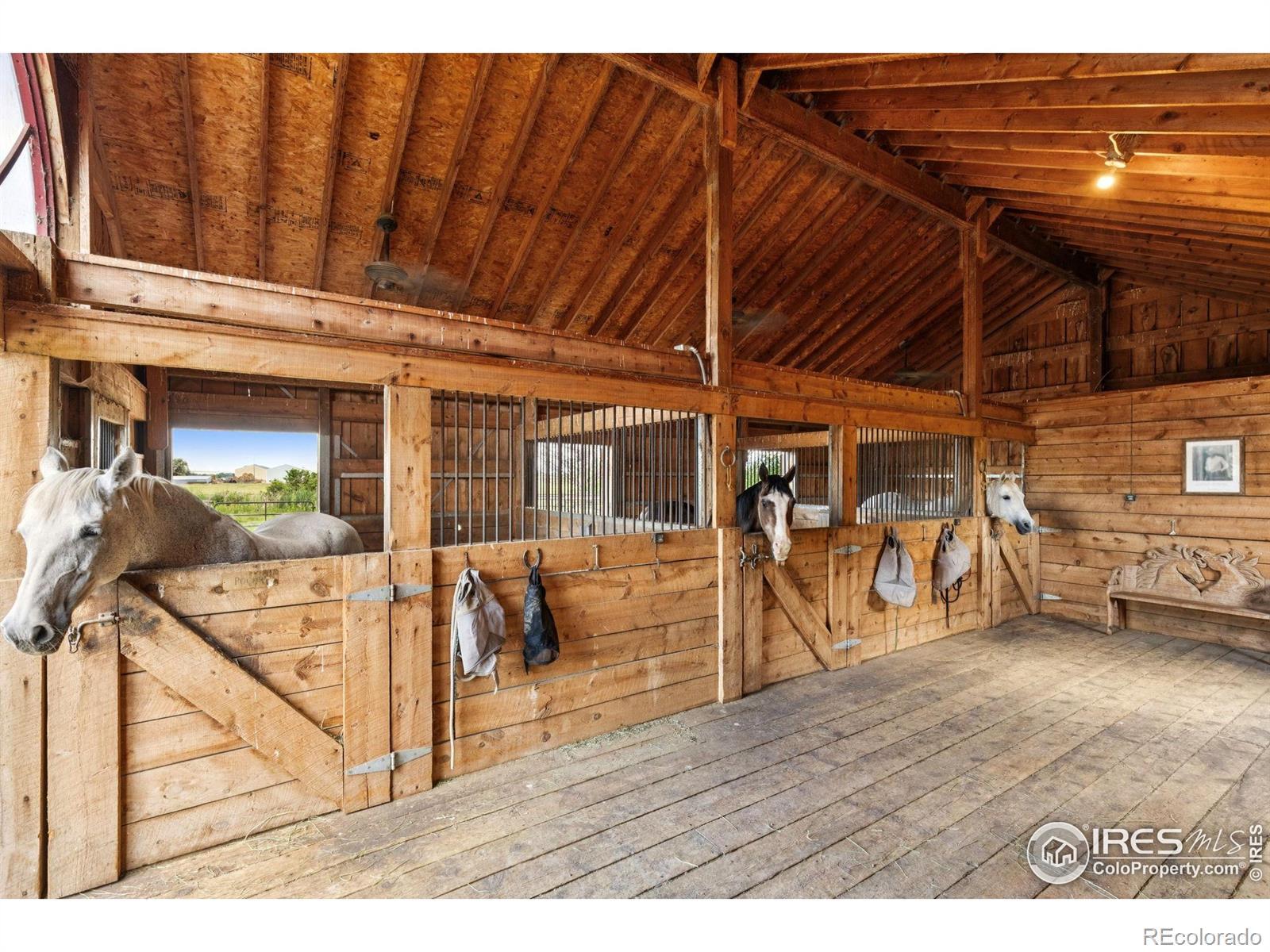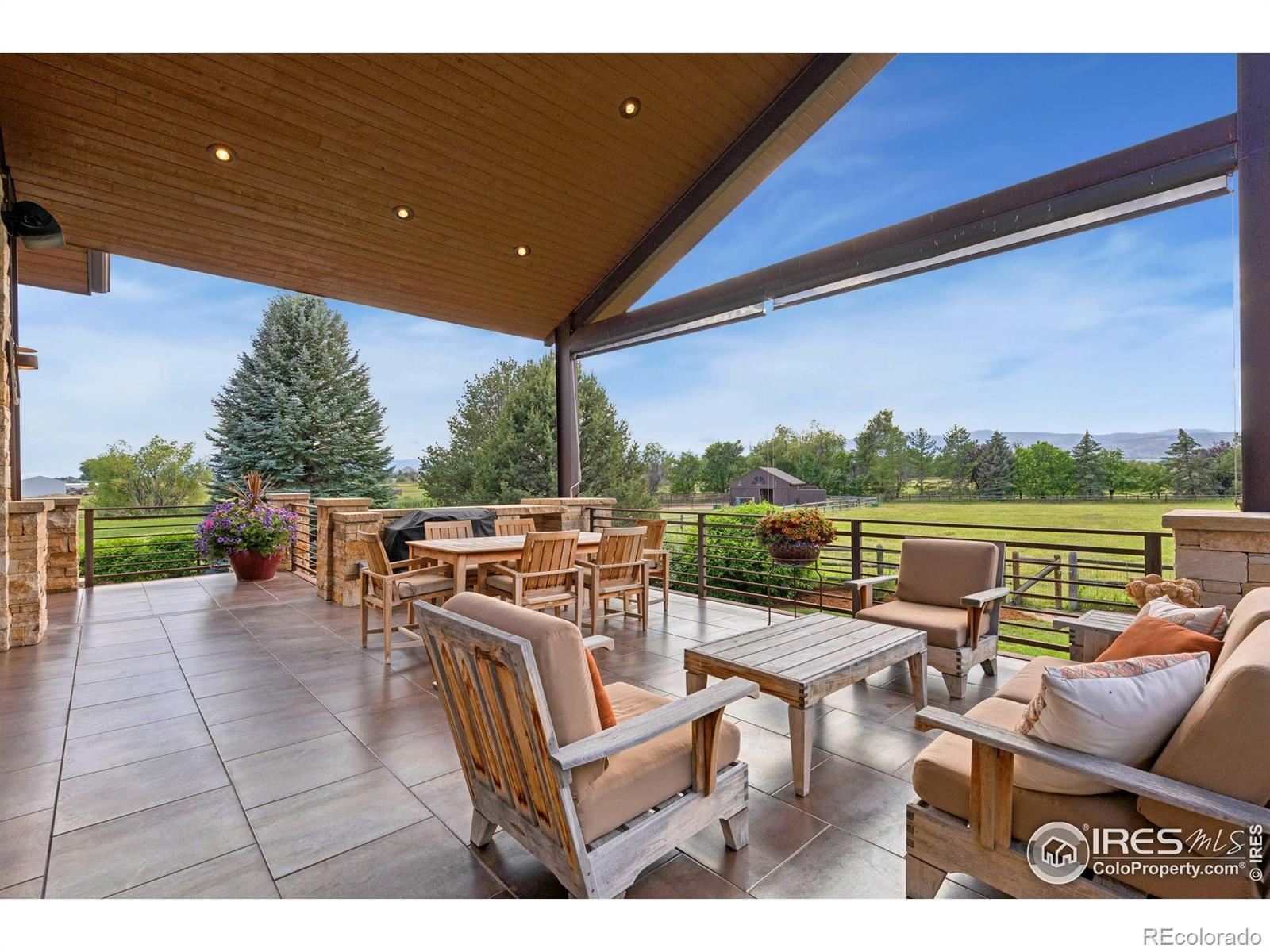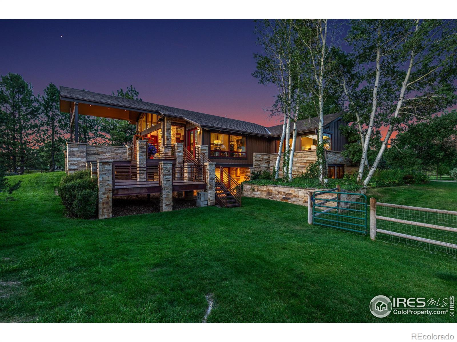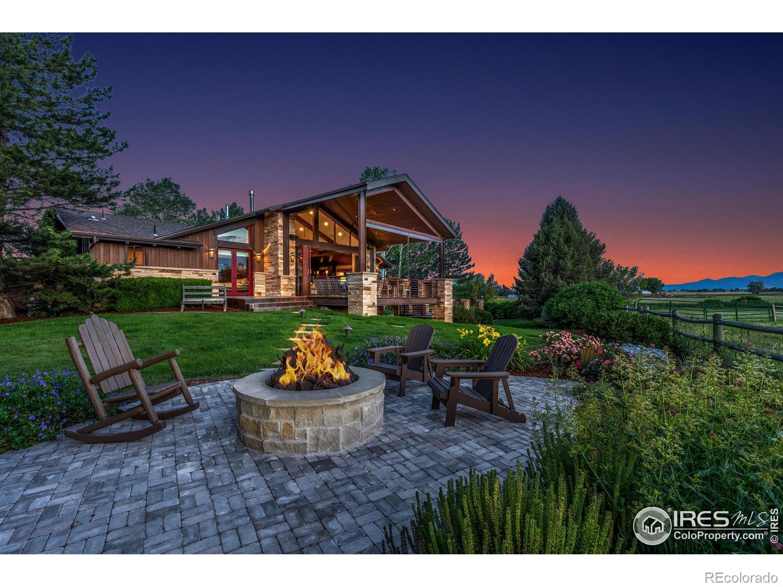 RUSTIC ELEGANCE MEETS PANORAMIC MOUNTAIN VIEWS - EXQUISITE EQUESTRIAN ESTATE ON 6.05 ACRES. More than a home - it's a lifestyle. This 4 bed 4 bath ranch-style estate blends luxury, natural beauty and equestrian functionality, all set against the stunning backdrop of Longs Peak, Mt Meeker and the Flatirons. Privately gated and completely renovated by renowned Nassar Development in 2012, offering peace and privacy minutes from town. Soaring vaulted ceilings, natural stone, custom woodwork & Chef's kitchen featuring Wolf Range/Sub-Zero/Double ovens, in-counter steamer, and Aspen Leaf Designs custom cabinetry, all designed for everyday living and entertaining. A dramatic stone fireplace and retractable glass wall connect the Great Room to a covered veranda and outdoor firepit, creating a seamless indoor-outdoor flow. The primary is private and tranquil with vaulted ceilings, spa-style bathroom and stunning mountain views. Three additional bedrooms and four well-appointed baths ensure comfort and flexibility for guests or multi-generational living. Equestrian facilities include a charming wood barn with 4 stalls, each with automatic waterers and individual paddocks, 3 fenced pastures, a riding arena, hay storage, shavings pit, and 3-rail iron fencing - all designed for function, safety and ease. James Ditch partial water share. Enjoy lush landscaping, mature trees and colorful gardens. Whether you're enjoying a quiet morning, dining al fresco, the outdoor living areas are as inviting as the interiors. This is a rare opportunity to own a property that reflects the best of Colorado living: beauty, craftsmanship, nature - whether you're unwinding by the fire, riding horses or hosting under the stars. If you've been dreaming of a home that inspires inside and out, this is it.