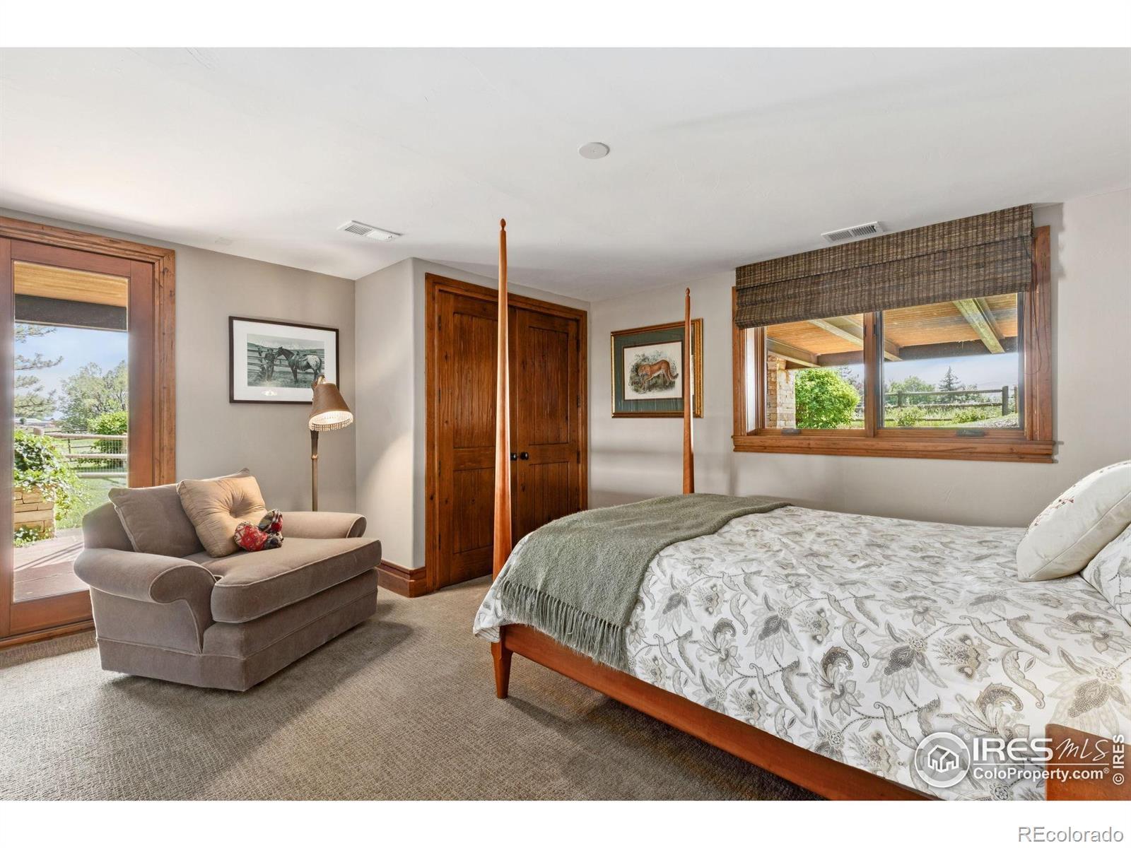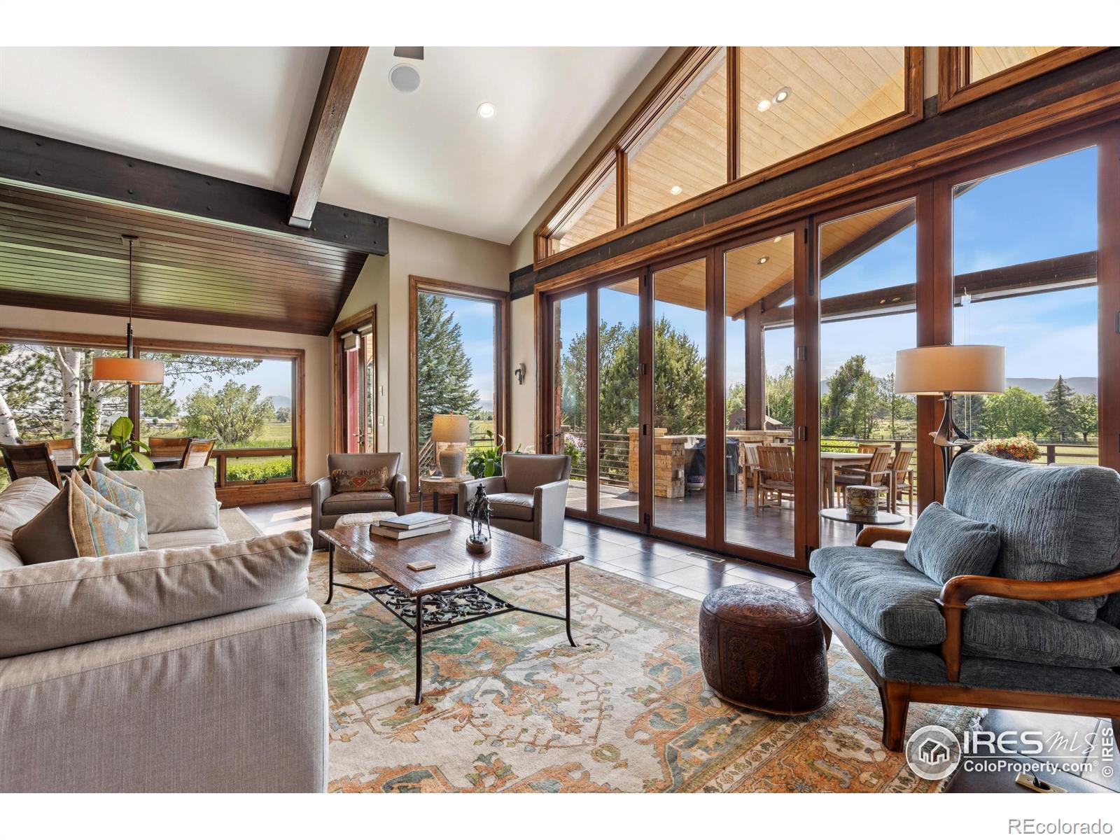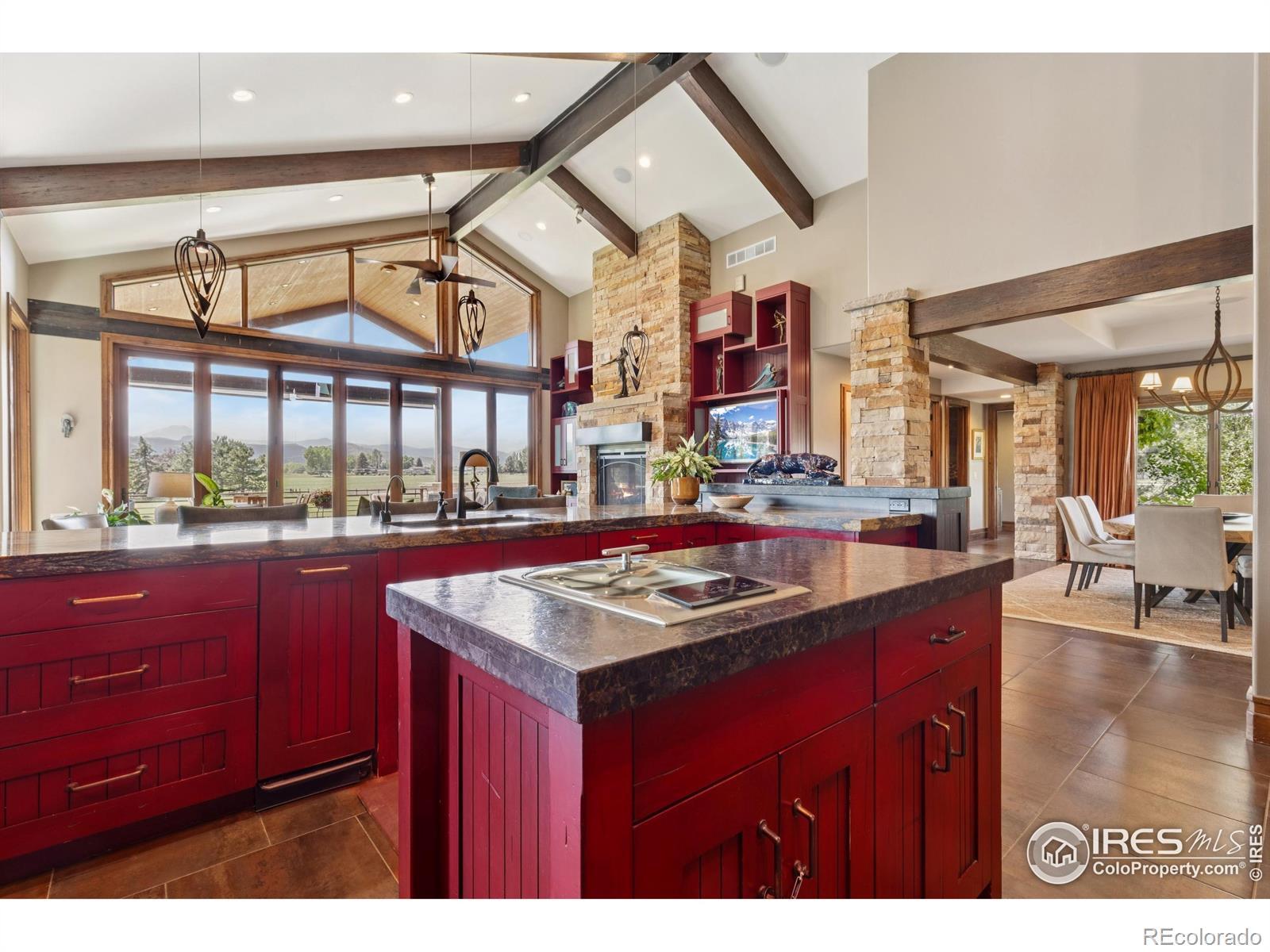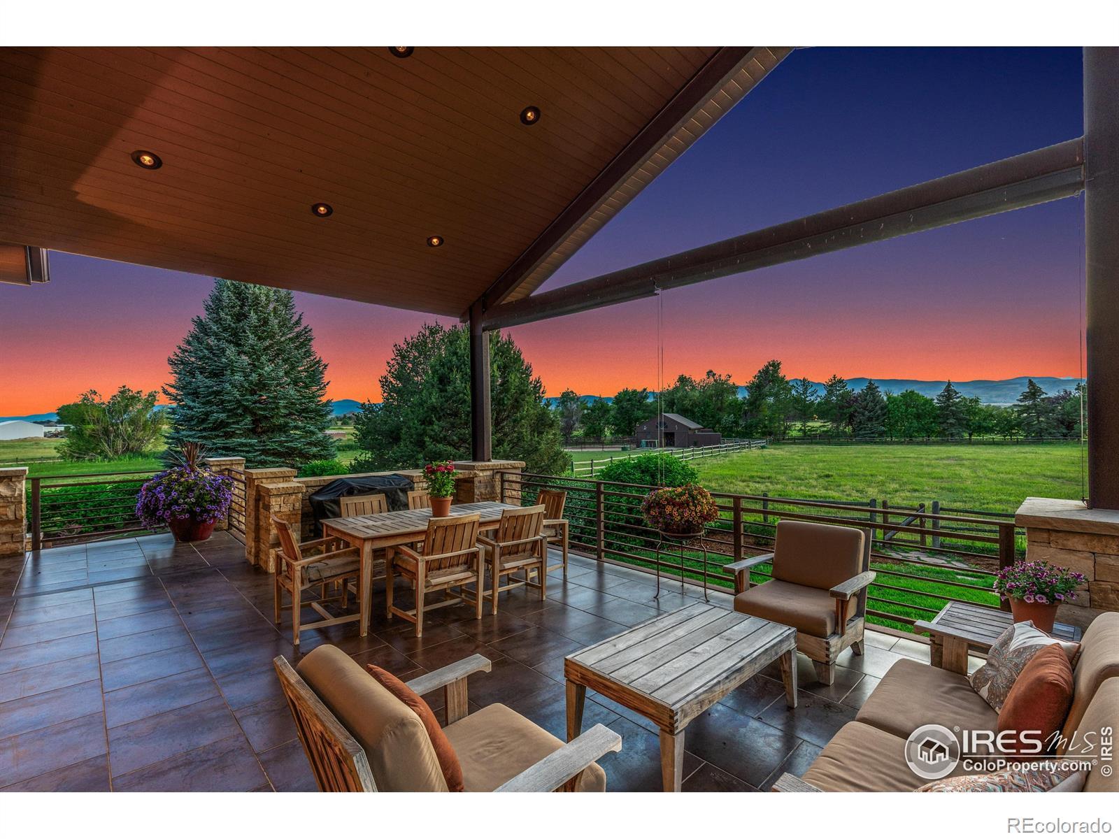 RUSTIC ELEGANCE MEETS PANORAMIC MOUNTAIN VIEWS - EXQUISITE EQUESTRIAN ESTATE ON 6.05 ACRES. More than a home - it's a lifestyle. This 4 bed 4 bath ranch-style estate blends luxury, natural beauty and equestrian functionality, all set against the stunning backdrop of Longs Peak, Mt Meeker and the Flatirons. Privately gated and completely renovated by renowned Nassar Development in 2012, offering peace and privacy minutes from town. Soaring vaulted ceilings, natural stone, custom woodwork & Chef's kitchen featuring Wolf Range/Sub-Zero/Double ovens, in-counter steamer, and Aspen Leaf Designs custom cabinetry, all designed for everyday living and entertaining. A dramatic stone fireplace and retractable glass wall connect the Great Room to a covered veranda and outdoor firepit, creating a seamless indoor-outdoor flow. The primary is private and tranquil with vaulted ceilings, spa-style bathroom and stunning mountain views. Three additional bedrooms and four well-appointed baths ensure comfort and flexibility for guests or multi-generational living. Equestrian facilities include a charming wood barn with 4 stalls, each with automatic waterers and individual paddocks, 3 fenced pastures, a riding arena, hay storage, shavings pit, and 3-rail iron fencing - all designed for function, safety and ease. James Ditch partial water share. Enjoy lush landscaping, mature trees and colorful gardens. Whether you're enjoying a quiet morning, dining al fresco, the outdoor living areas are as inviting as the interiors. This is a rare opportunity to own a property that reflects the best of Colorado living: beauty, craftsmanship, nature - whether you're unwinding by the fire, riding horses or hosting under the stars. If you've been dreaming of a home that inspires inside and out, this is it.