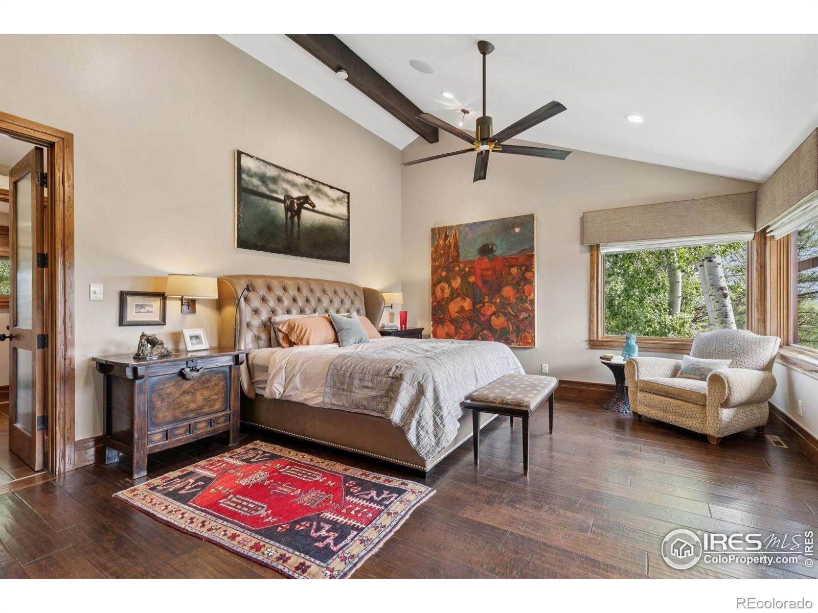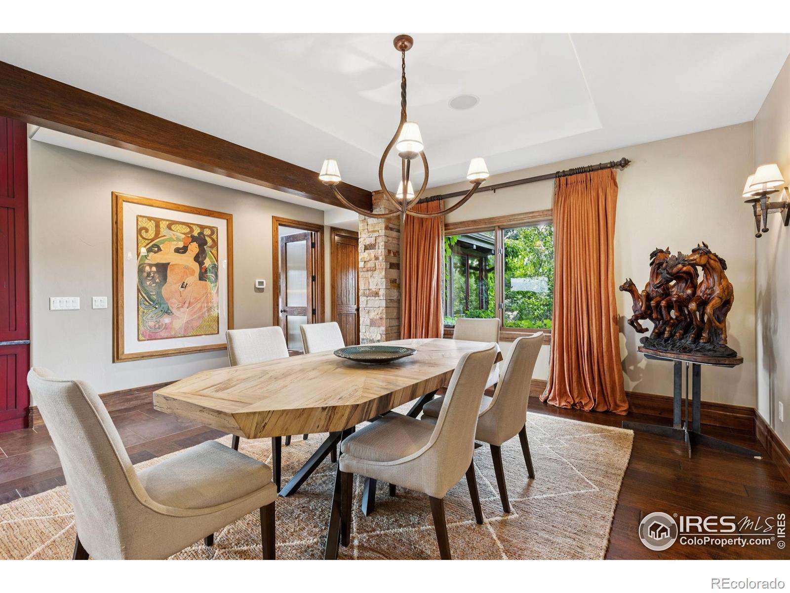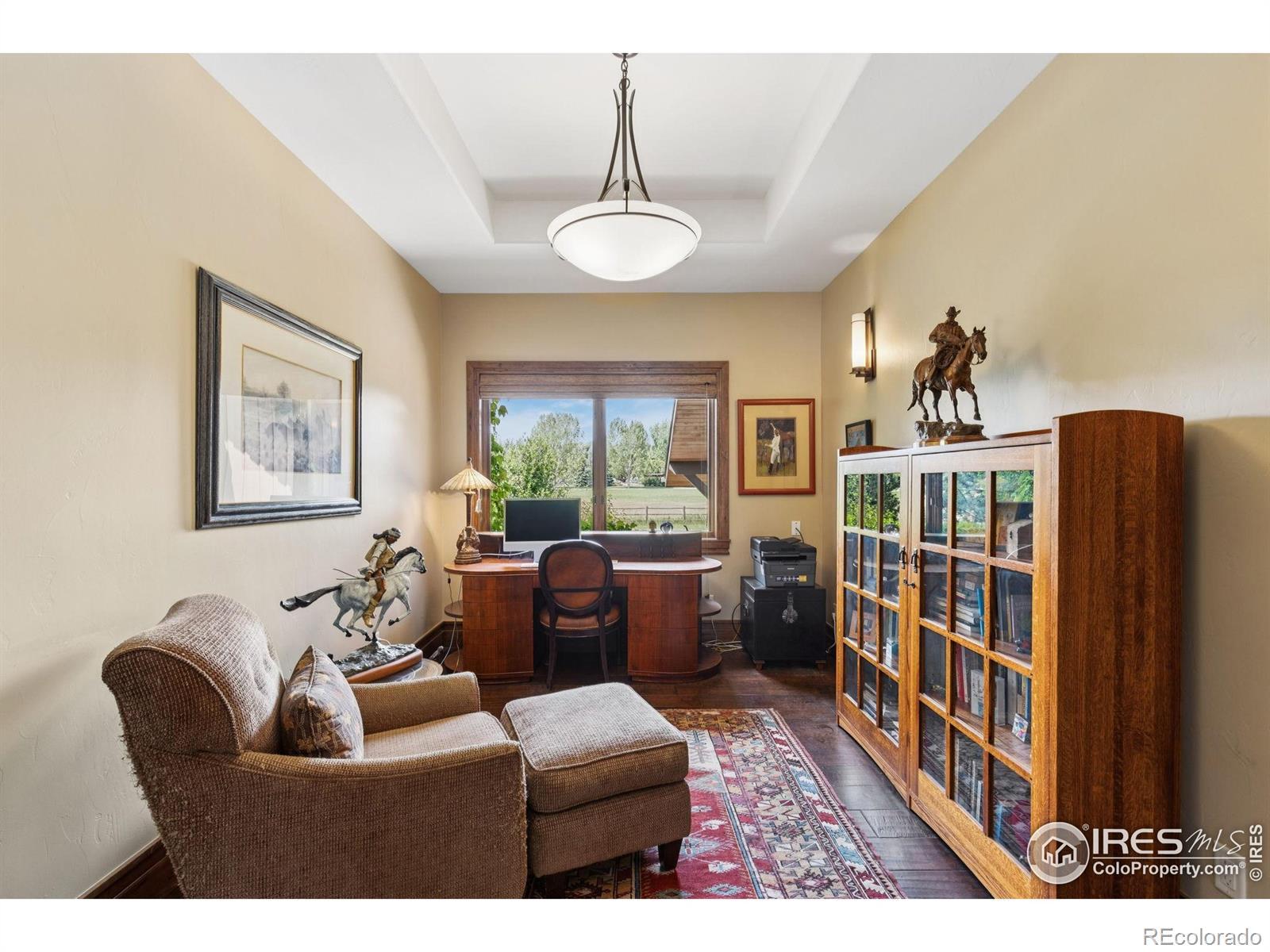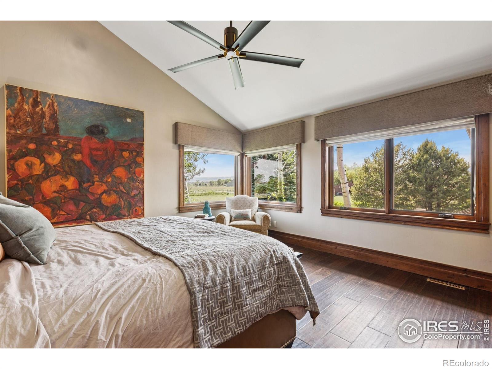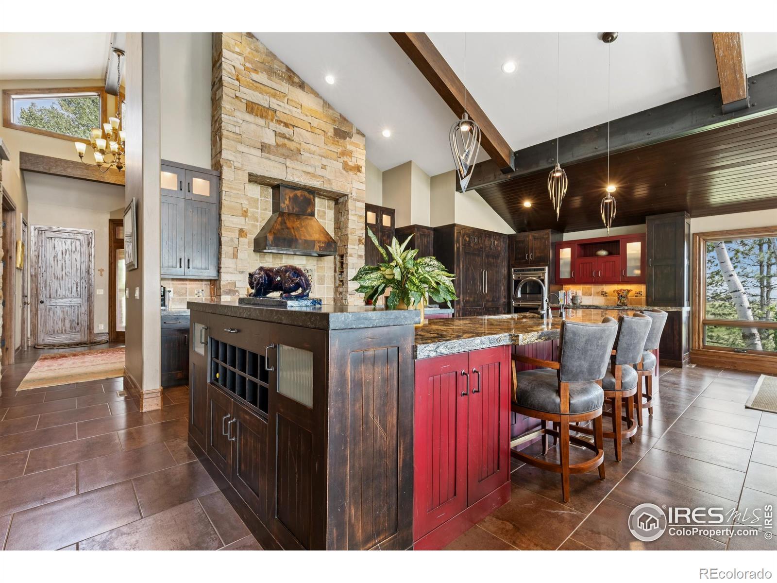 RUSTIC ELEGANCE MEETS PANORAMIC MOUNTAIN VIEWS - EXQUISITE EQUESTRIAN ESTATE ON 6.05 ACRES. More than a home - it's a lifestyle. This 4 bed 4 bath ranch-style estate blends luxury, natural beauty and equestrian functionality, all set against the stunning backdrop of Longs Peak, Mt Meeker and the Flatirons. Privately gated and completely renovated by renowned Nassar Development in 2012, offering peace and privacy minutes from town. Soaring vaulted ceilings, natural stone, custom woodwork & Chef's kitchen featuring Wolf Range/Sub-Zero/Double ovens, in-counter steamer, and Aspen Leaf Designs custom cabinetry, all designed for everyday living and entertaining. A dramatic stone fireplace and retractable glass wall connect the Great Room to a covered veranda and outdoor firepit, creating a seamless indoor-outdoor flow. The primary is private and tranquil with vaulted ceilings, spa-style bathroom and stunning mountain views. Three additional bedrooms and four well-appointed baths ensure comfort and flexibility for guests or multi-generational living. Equestrian facilities include a charming wood barn with 4 stalls, each with automatic waterers and individual paddocks, 3 fenced pastures, a riding arena, hay storage, shavings pit, and 3-rail iron fencing - all designed for function, safety and ease. James Ditch partial water share. Enjoy lush landscaping, mature trees and colorful gardens. Whether you're enjoying a quiet morning, dining al fresco, the outdoor living areas are as inviting as the interiors. This is a rare opportunity to own a property that reflects the best of Colorado living: beauty, craftsmanship, nature - whether you're unwinding by the fire, riding horses or hosting under the stars. If you've been dreaming of a home that inspires inside and out, this is it.