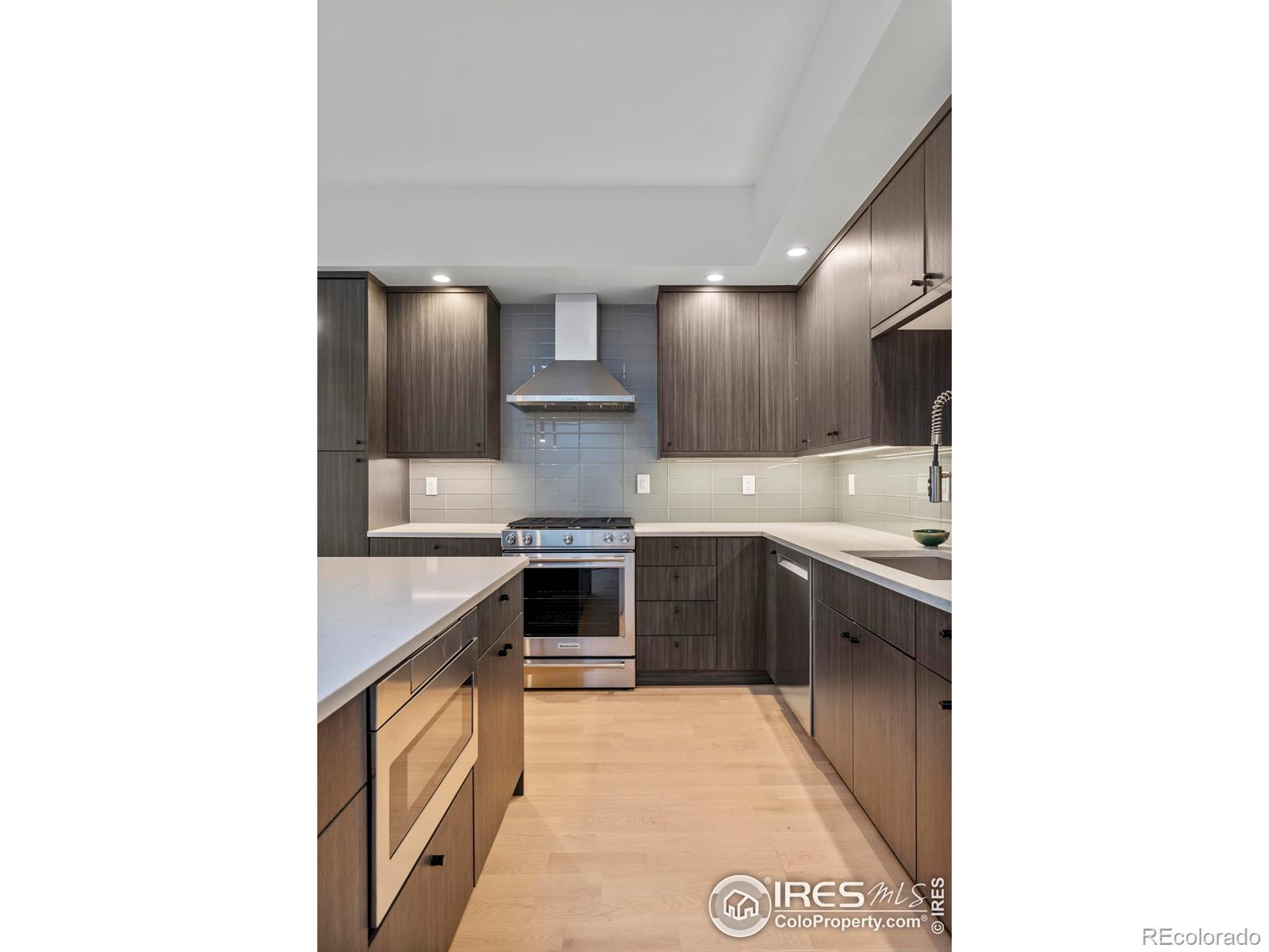 Welcome to your modern haven at 2718 Pine Street, Unit 301, Boulder, CO-a sophisticated corner oasis that perfectly blends style and functionality. Located in an ideal location walkable to the shops & restaurants of Pearl Street, and yet in a quiet neighborhood with ample auxiliary parking and close to everyday amenities. This coveted top-floor unit spans 1,417 square feet and offers a tranquil north-facing view, ensuring peace away from any power lines.Step inside to discover an open and airy layout accentuated by hardwood floors and abundant natural light. The chef's kitchen stands as the centerpiece, boasting a gas range, stainless steel appliances, quartz countertops, and sleek, high-end cabinets-ideal for culinary enthusiasts and entertainers alike.Enjoy the thoughtful design of a separated bedroom floor plan, where each of the two spacious bedrooms enjoys its own private bathroom. The luxurious primary suite is a true retreat, featuring a double sink vanity, stall shower, walk-in closet, and large windows that invite in the morning sun.For convenience and comfort, the unit includes air conditioning, forced air heating, and a skylight to enhance the ambiance. The oversized laundry room with extra storage simplifies daily living, while the secure garage offers a dedicated car space plus two bike lockers transferred with sale-perfect for the active Boulder lifestyle.Additional amenities include a secure lobby entrance with a package delivery area, elevator access, covered parking, and a pet-friendly atmosphere. Outdoor enthusiasts will relish the private deck, offering a serene space to unwind and enjoy Colorado's beauty. Welcome home to modern living at its finest.