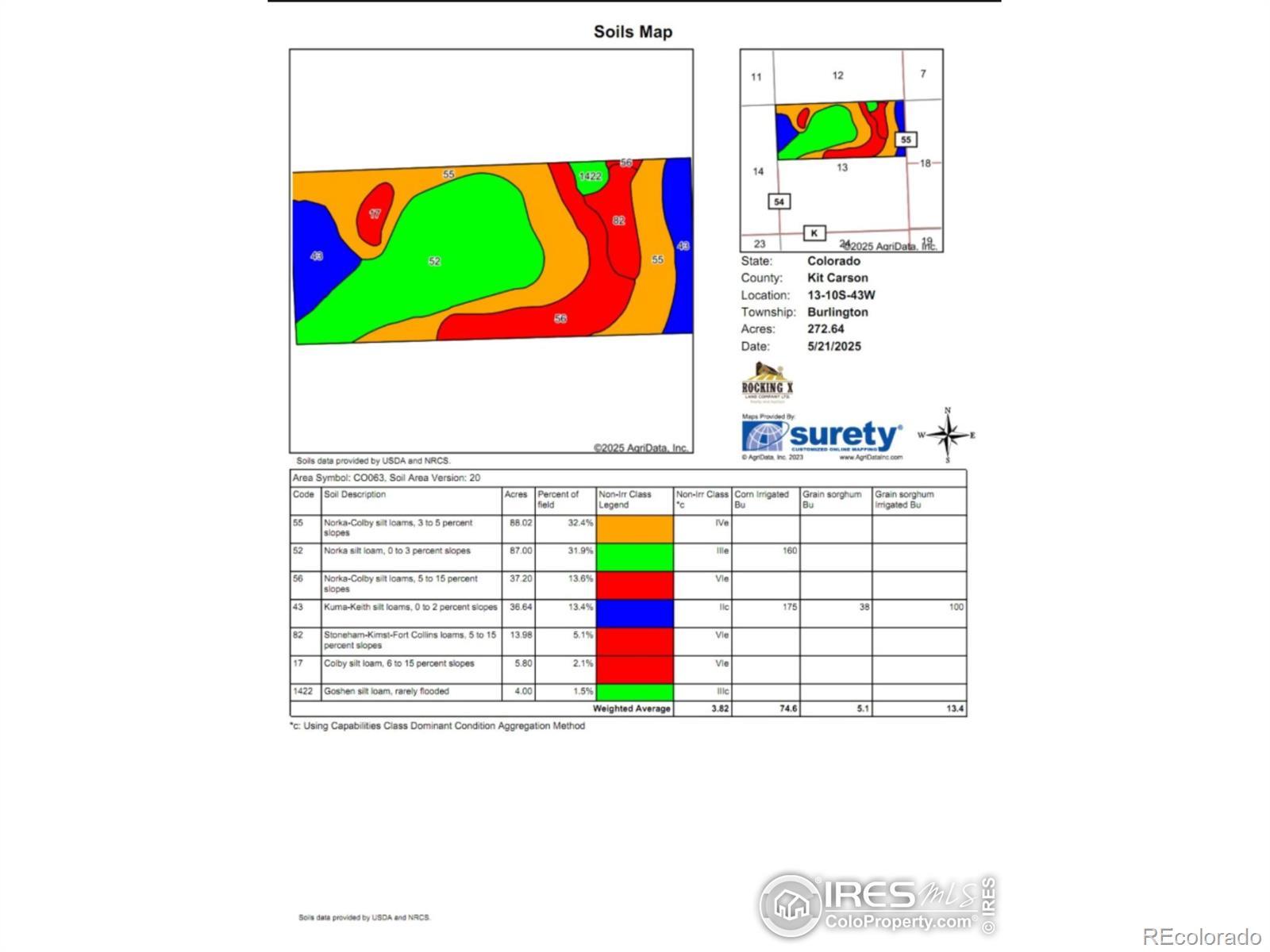 Located Southeast of Burlington, CO at Roads 55 & L. Sec 13- Township 10 - Range 43 West. Property Description: 271.87 AC +/- Dryland broken down into 195.31 CRP acres and 67.73 Dryland acres. The CRP contract is $38.18 per acre and expires in 2031. Soils are mostly class III-IV. There is a new transmission line running along the north edge. It is easily accessed by maintained county roads.