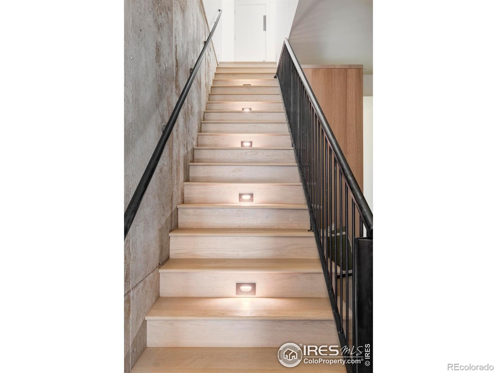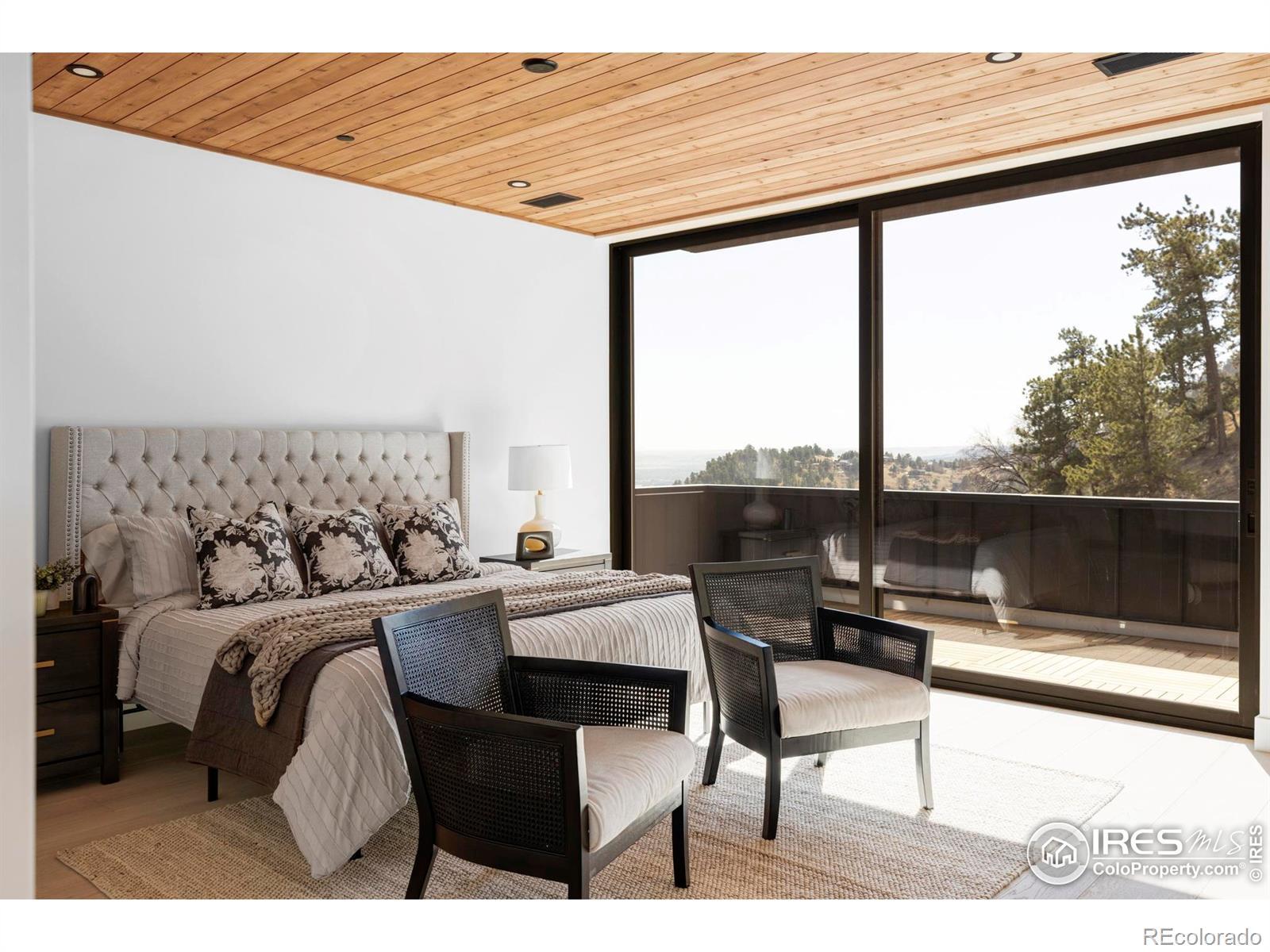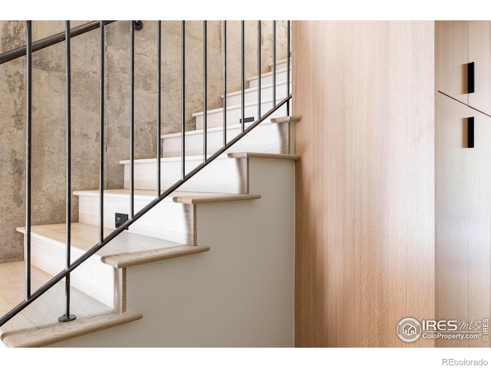 A masterfully modern foothills lifestyle awaits in this spectacular new-construction Pine Brook Hills showpiece designed by architect Nick Fiore of Flower Architecture. Featuring exquisite contemporary design and breathtaking views, this new construction home is a refined sanctuary just minutes from Boulder, Colorado amenities. Inside, a soothing palette of warm materials is accompanied by thoughtful illumination and premium finishes. Cedar tongue-and-groove ceilings soar above wide-plank white oak floors, level 5 drywall, solid-core doors and floor-to-ceiling windows. The front door opens on the lower level, where a large foyer boasts bench seating and a row of mudroom storage. The main level is designed for relaxing and entertaining, featuring a great room with a chic circular wood-burning fireplace, and floor-to-ceiling and wall-to-wall windows frame views that sweep across the Boulder skyline and beyond. The work-of-art open kitchen features custom whitewashed oak cabinetry and quartz countertops surrounding a fleet of Italian Smeg and Fisher & Paykel appliances. The home's top floor is dedicated to the private owner's retreat, featuring a luxurious bedroom with a linear gas fireplace that opens to a stunning private deck. Escape to the en-suite spa bathroom to enjoy a large wet room shower and freestanding soaking tub, a private water closet and a floating terrazzo double vanity. A facade of exposed architectural concrete and fire-resistant standing-seam steel siding creates a striking juxtaposition with the surrounding landscape, while a long driveway and attached two-car garage add abundant parking to this hillside Boulder beauty. This phenomenal home is just minutes from world-class trails, Wonderland Lake, North Boulder & Downtown/Pearl St amenities. See Attached Features List and Floor Plans