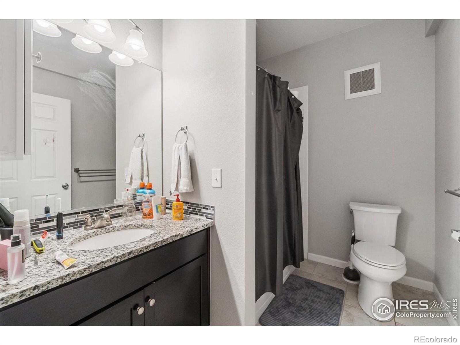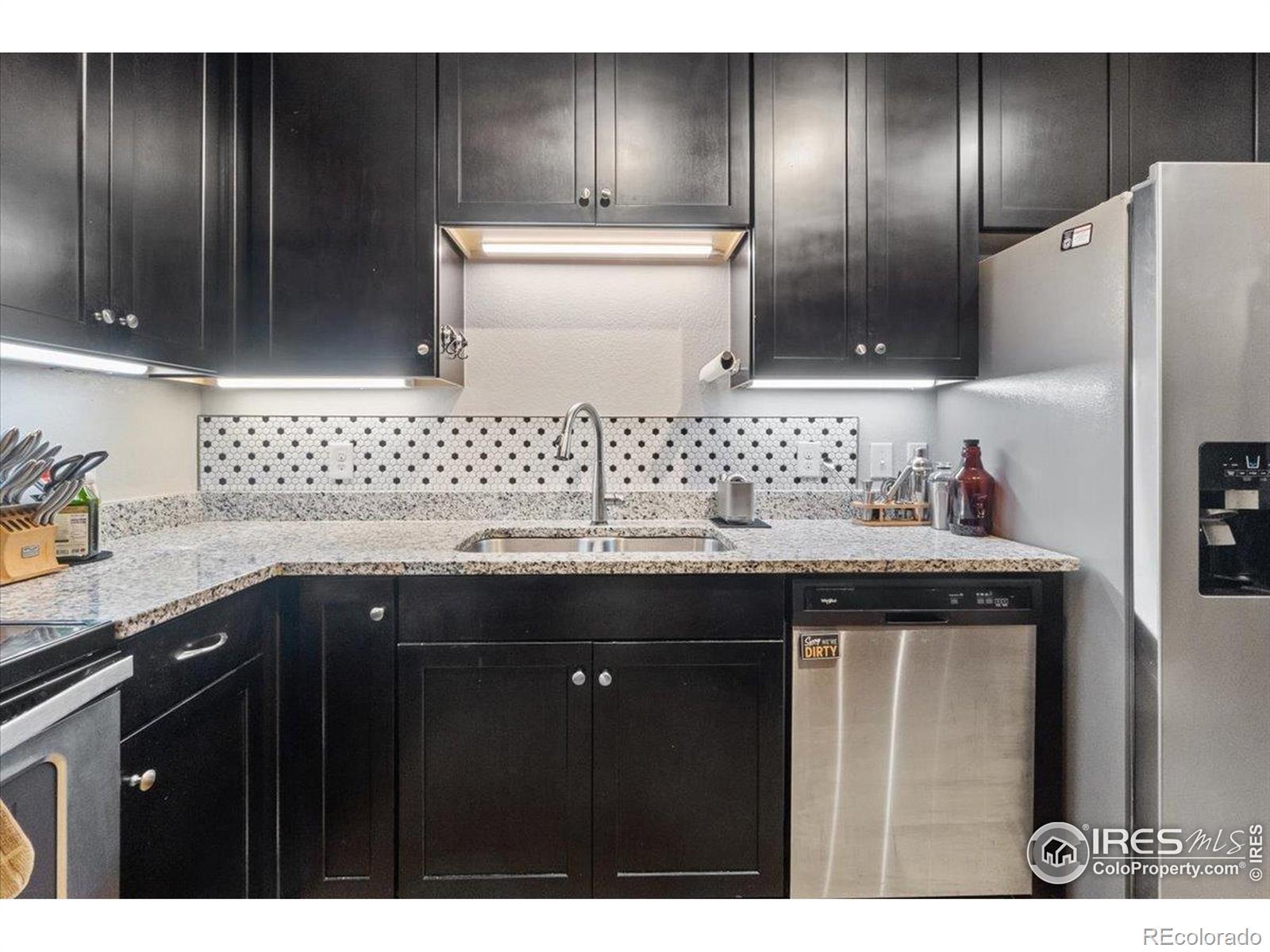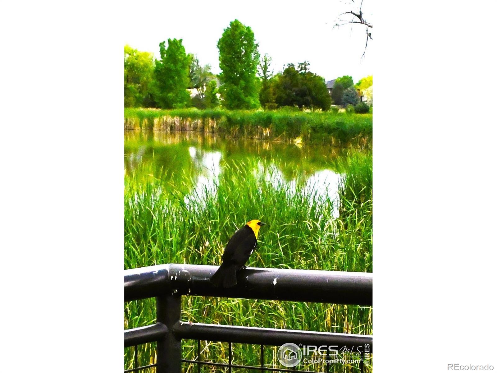 Beautiful condo tucked into the neighborhood and conveniently located across form the pool! Does NOT face County Line Road or 9th Ave. No stairs in or to unit. As you enter through the covered front entrance/porch you will see the spacious open floor plan and high ceilings. To your left is the gorgeous kitchen with granite countertops, custom back splash, stainless steel appliances, tall cabinets and kitchen island. Lots of space for food prep and entertaining. The dining area can accommodate a large table, perfect for holiday meals. In addition to the many cabinets there is also a pantry. All appliances stay. To your right is the huge living room with a cozy fireplace with stone surround. Plenty of room for big, comfy furniture. Open the sliding doors to the patio and enjoy the fresh Colorado breeze. Down the hallway is the 3rd bedroom (non-conforming) which is perfect for watching movies, working from home or for a home office. The primary suite is light and bright with west facing windows, vinyl flooring and also features a walk-in closet. Laundry is conveniently located near the bedrooms. The assigned parking space is located right outside of the home, and there is lots of visitor parking. Union Reservoir is right across the road, a perfect spot for paddleboarding, fishing, swimming and dog walking. Surrounded by walking/biking trails. Easy access to I-25 via Hwy 66 or Hwy 119.