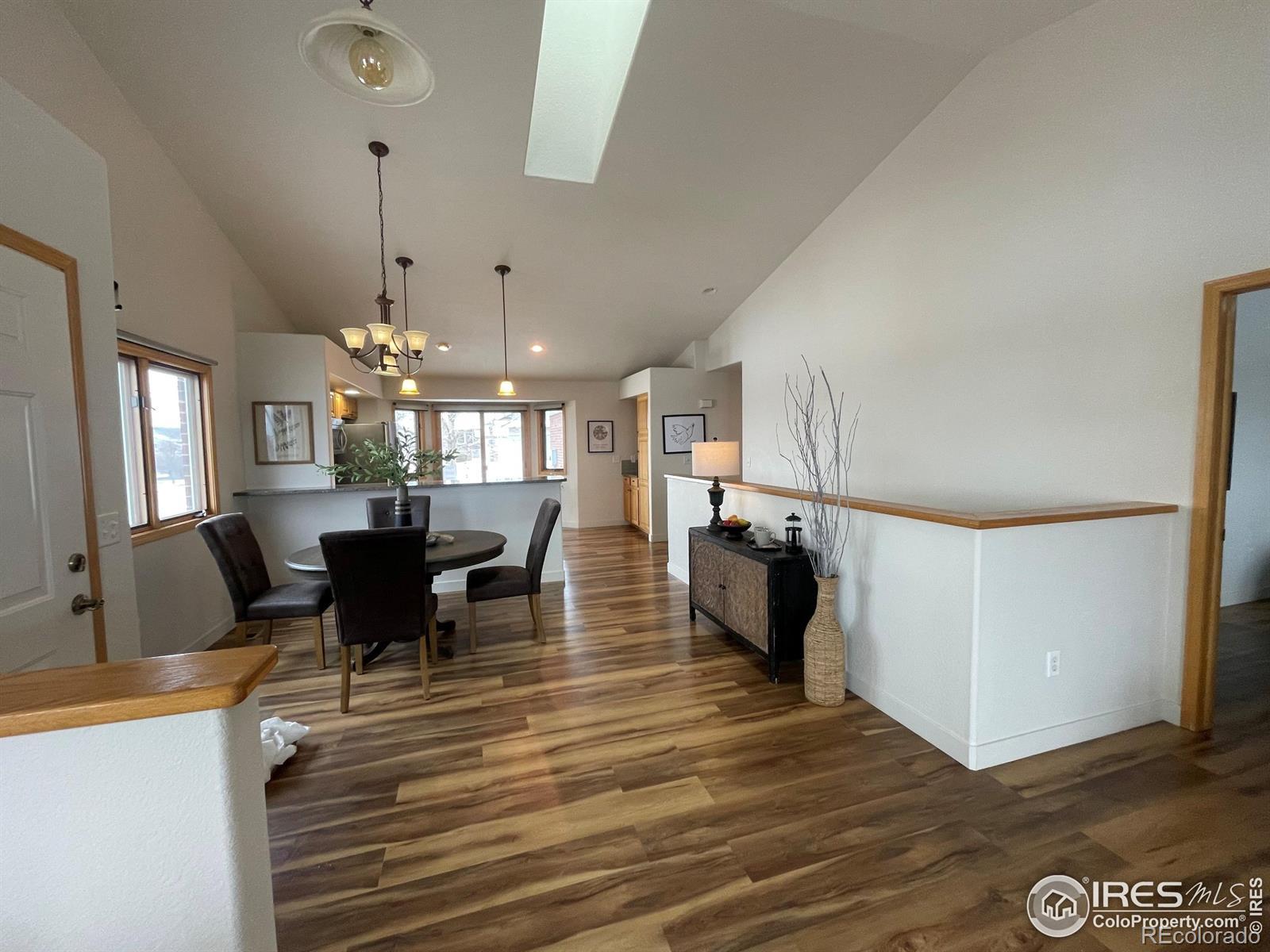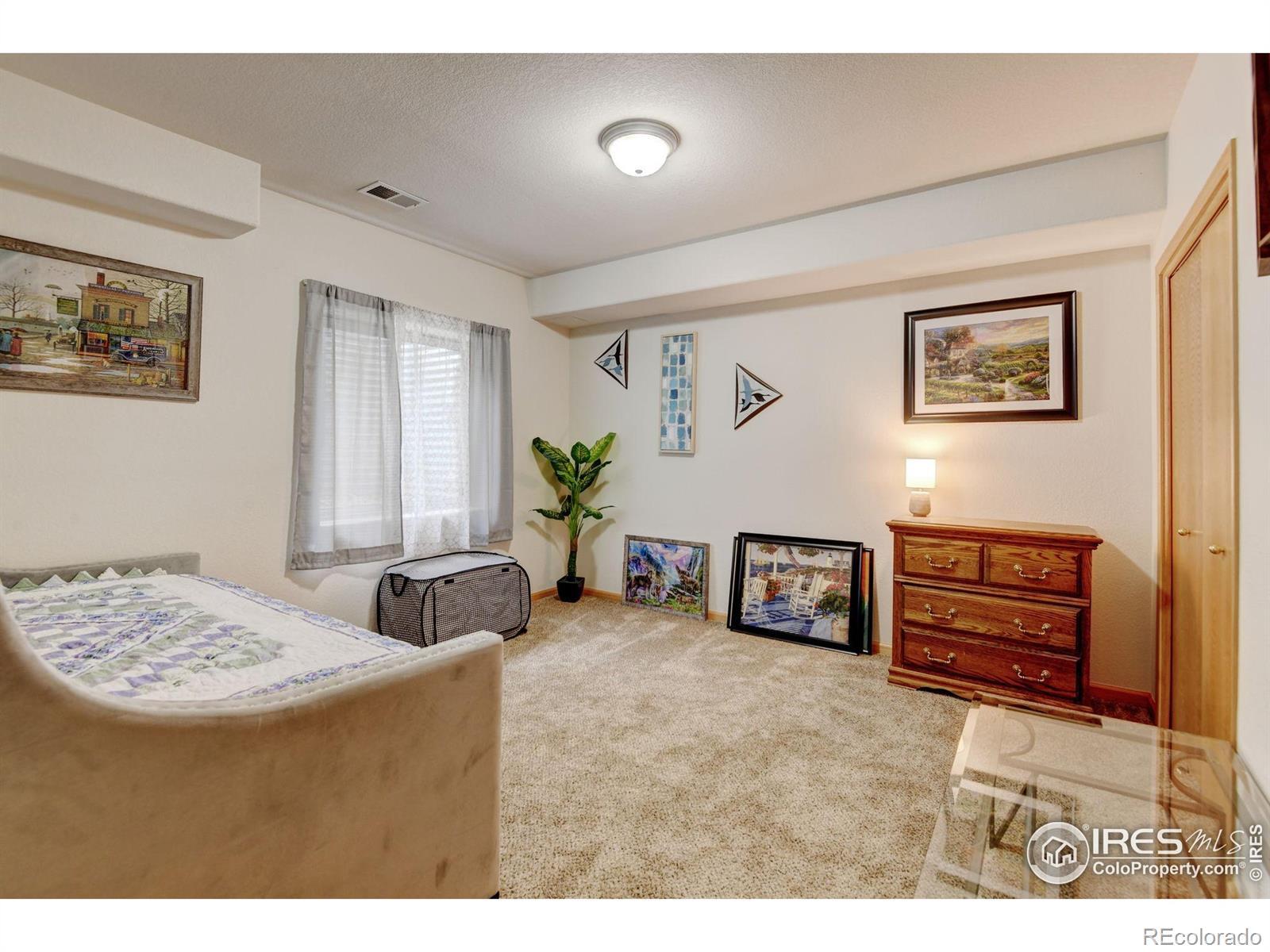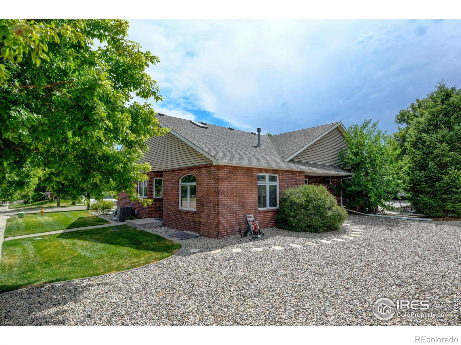 Come see this welcoming, bright and open home today! Recent $20K price reduction. Great price per sq. ft. value! Seller 's have just completed new epoxy flooring in the garage! The sun filled great room has vaulted ceilings, a large skylight and is welcoming and comfortable. The open kitchen offers stainless appliances, a bar area, granite countertops, and is a spacious place for gathering, entertaining, and creating culinary delights! The large primary suite has private views, and has it's own private bathroom and a large walk in closet. The secondary bedroom on the main level makes a great office or hobby room and the laundry is also conveniently located on the main level. This southern facing low maintenance brick patio home has well established HOA that takes care of the exterior maintenance, including the roof, lawn care, sprinkler systems, trash and recycling, snow removal, and management. This is truly a lock it and leave it home - or live here full time and enjoy having all the work done for you! There is a 1acre park is located just across the street and this home is very private at the end of the street and backs to a quiet farm property with cute animals! The finished basement with 9 ft ceilings offers a large recreation/theater room, a large storage room and two very nicely sized bedrooms with egress windows. This home is perfect for multi generational living. Located just 10 minutes to old town FOCO and breweries, shopping, restaurants, recreation trails and all the wonderful amenities Fort Collins has to offer. Additional features include roller shades, a linen closet, a laundry/utility sink, and the washer and dryer are included. The 2 car attached garage has brand new epoxy flooring and a south facing driveway and is adjacent to the large front patio. The A/C is new - and the furnace has been maintained regularly. This home is move in ready and easy to show!!