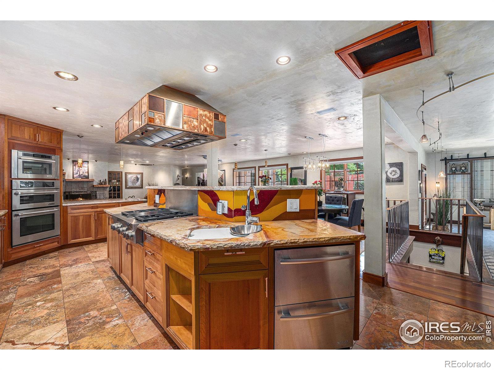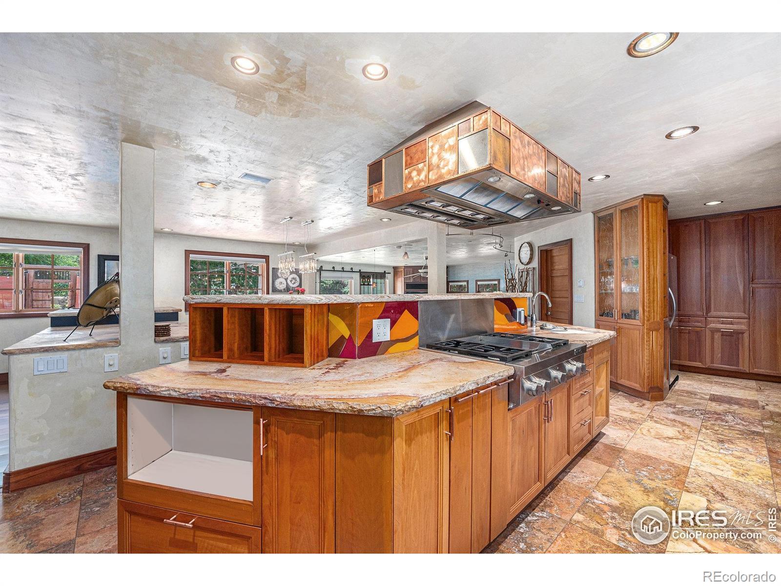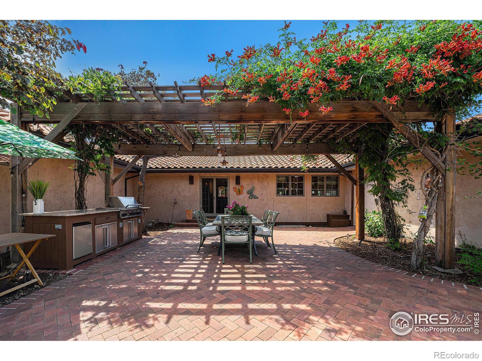 Nestled in the prestigious and tranquil community of Pony Estates, this stunning 4-bedroom, 5-bath Spanish-style ranch sits on a sprawling 1.64-acre lot where horses are welcome and serenity meets luxury. From the moment you step onto the property, you'll be captivated by the lush, manicured grounds, complete with a sparkling pool, hot tub, swim up bar, koi pond, rock waterfall, outdoor kitchen with granite countertops, fireplace and tons sitting spots for relaxing. Enjoy al fresco dining under the pergola, host unforgettable gatherings by the fire, or relax in the sun while friends and loved ones play games and enjoy the pool. Step inside to find a thoughtful design that combines comfort and elegance in one seamless layout. The chef-inspired kitchen features live edge stone countertops, stainless steel appliances, double oven, prep sink, gas range, butler's pantry, cooper hood with warming lamps, gorgeous cabinetry and a grand center island. The kitchen opens up to the living room with custom fireplace, dual dining areas with cherry hardwoods, and family room surrounded with windows. Down the hall find the dedicated executive office featuring french doors and custom built-in desk, cabinetry. Retreat to the primary suite, complete with vaulted ceilings, private access to outdoor oasis, fireplace, luxurious 5-piece bath with soaking tub and Swedish massage steam shower, and a generous walk-in closet with built-in organization system. Find two additional bedrooms and bathrooms on the south wing. Head downstairs to find a fully finished basement offering an additional recreation area, wine cellar and a fourth bedroom. 2-car garage with RV parking. Huge 4-stall barn. Solar powered energy efficient. Unincorporated Boulder County. Low taxes and no HOA. Don't miss out on a rare opportunity to own this entertainers paradise!