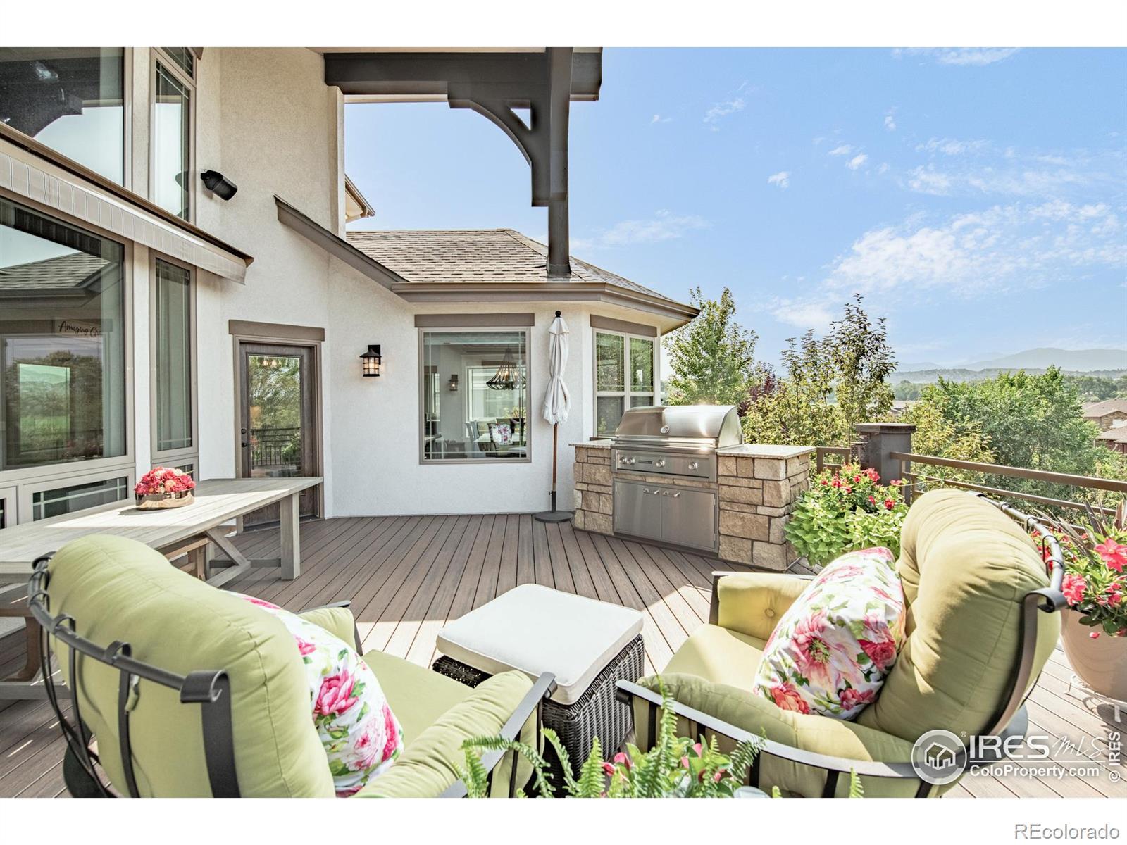 Sophisticated luxury defines this stunning residence perched on the prestigious Mariana Butte Golf Course. Set on an expansive, professionally landscaped lot within a serene cul-de-sac, this home offers both privacy and elegance. A striking front entry invites you into an open-concept floor plan bathed in abundant natural light. Soaring ceilings elevate the great room, highlighted by a breathtaking stacked stone fireplace and oversized windows framing picturesque views. The chef's kitchen is a masterpiece, equipped with premium appliances, a spacious butler's pantry, and a bright dining area drenched in sunlight. Seamlessly extend your gatherings outdoors to a generous deck, where sweeping mountain vistas create the perfect backdrop for entertaining. The main-floor primary suite is a tranquil retreat, featuring a spa-inspired bath designed for ultimate relaxation. Upstairs, a versatile loft offers an ideal space for a cozy sitting area or home office. Entertain with ease in the fully finished walkout basement, complete with a large recreation room and wet bar. Step outside to your private backyard oasis, boasting a hot tub and inviting fire pit area-perfect for unwinding or socializing under the stars. Located within the coveted Overlook at Mariana community, this exceptional home is ideally positioned near multiple premier golf courses.