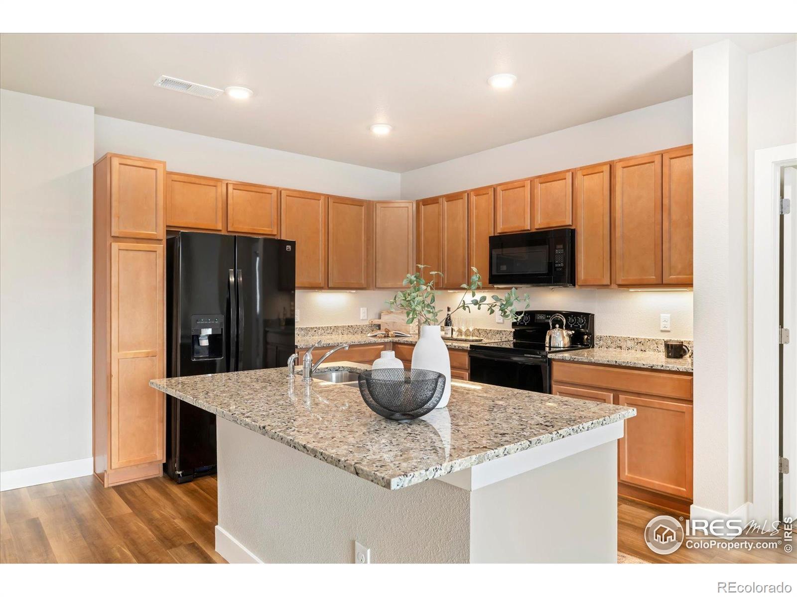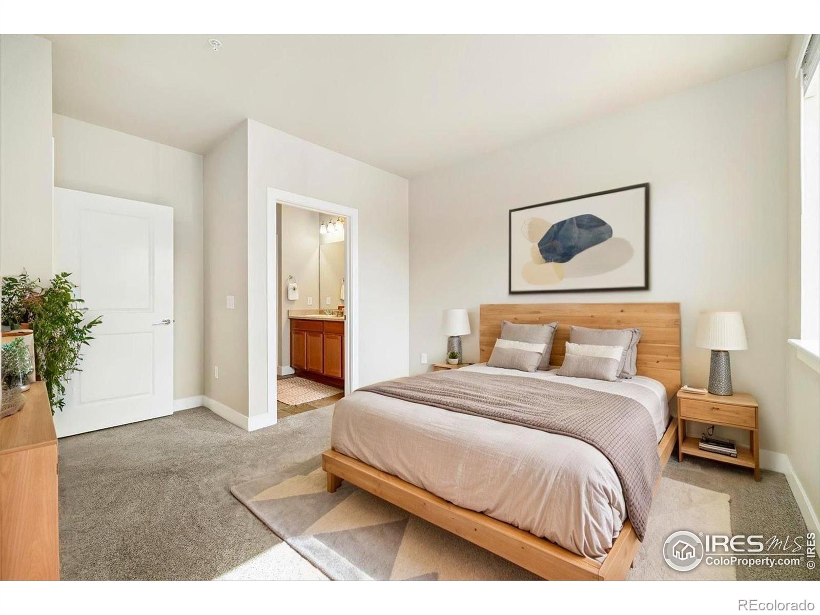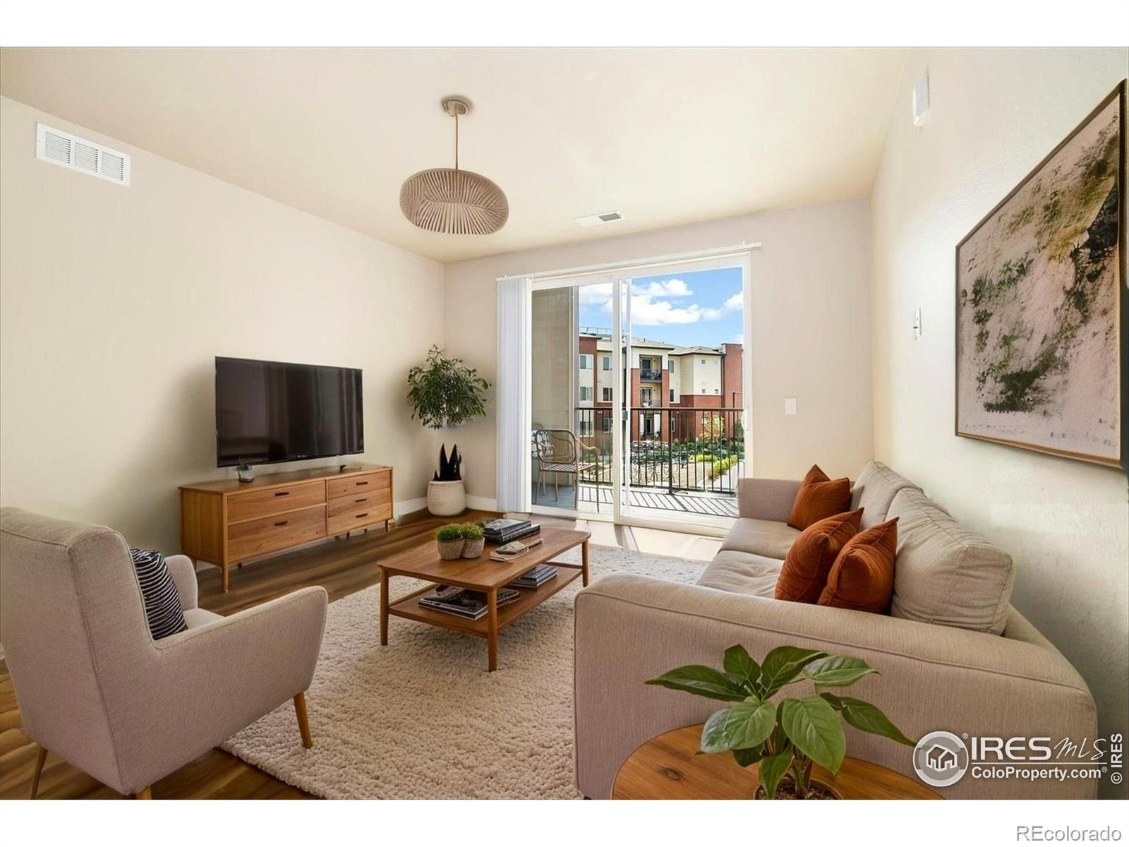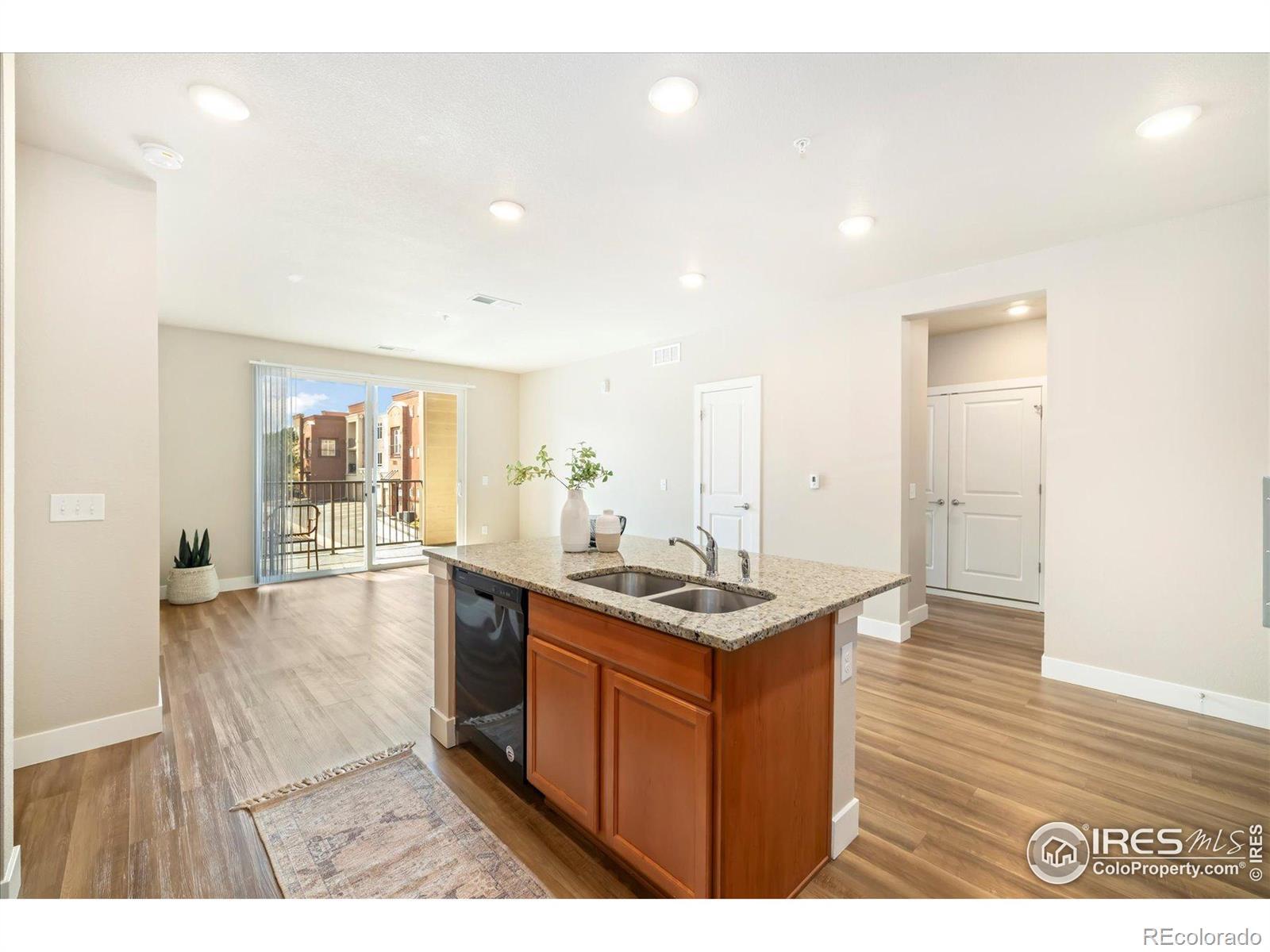 LENDER INCENTIVE with a preferred lender of listing agent - read Broker Remarks! Like-new in LIV City Center, this sunlit 2-bed, 2-bath condo features an open kitchen with granite counters, an oversized island with seating, ample cabinet and pantry storage, and easy-care laminate flooring. Living and dining areas are bright and airy with 9' ceilings throughout and an 8' sliding door opening to a quiet balcony with park views across the street. The entryway offers space for a bench or mudroom wall, while bedrooms on opposite wings provide privacy. The primary suite includes a generous walk-in closet and full bath; the second bedroom has its own bath. Additional perks include in-unit laundry, secure building access, one deeded parking space, and opportunity for a second space via the annual community lottery (seller has secured a 2nd parking space each year). Steps from Settler's Park, shops, restaurants, light rail, Hospital, Gateway High School, with quick access to I-225, Tech Center, Aurora Town Center, DIA, and downtown Denver. This move-in-ready condo offers a modern, carefree lifestyle and well maintained.