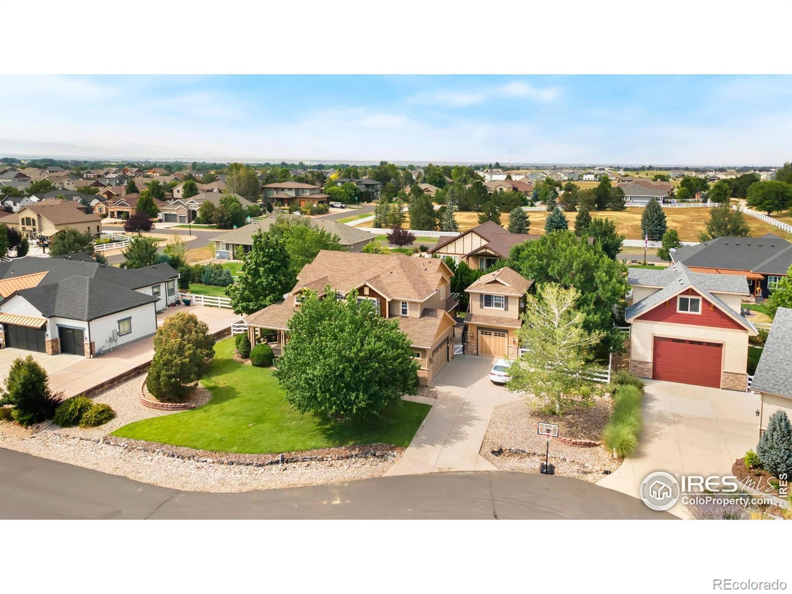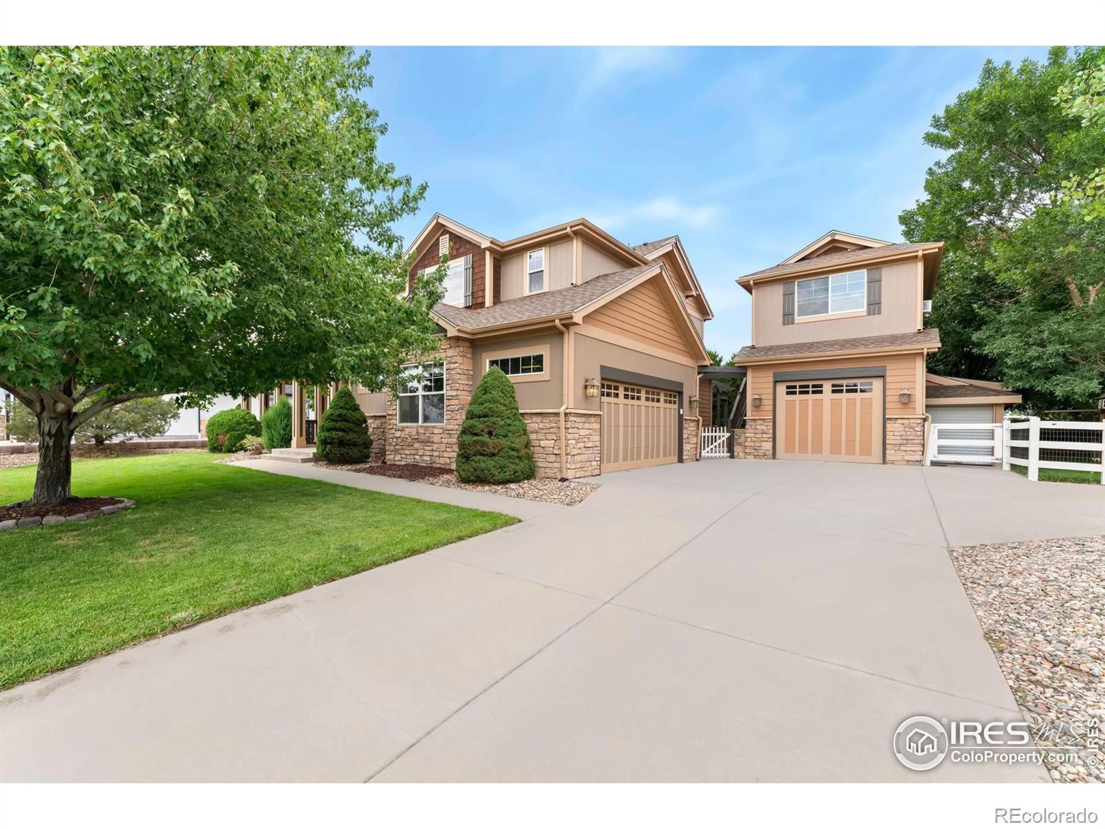 Custom-built beauty with a carriage house on a cul-de-sac! This two-story home sits on a spacious .32-acre lot designed for luxurious living and offers extensive space and top-notch features for anyone looking for a move-in ready home. Every corner of this home has been designed with livability in mind. The spacious main floor impresses with well-defined areas that flow seamlessly together, complemented by tall ceilings, hardwood flooring throughout, and large windows that flood the space with natural light. Two living spaces give you flexibility for both everyday living and special gatherings. The kitchen features stainless steel appliances, granite countertops, a tiled backsplash, breakfast bar, and loads of prep and storage space. The dining area extends the experience outdoors, offering direct access to a hot tub area. Upstairs, the home boasts four generously-sized bedrooms, including a massive primary suite that features vaulted ceilings and a luxurious 5-piece ensuite bath with a jacuzzi and a walk-in closet. The unfinished basement presents a fantastic opportunity for future expansion, allowing you to customize the space to fit your needs. Out back, enjoy a fully fenced yard with a concrete patio covered by a pergola and a canopy of mature trees for shade and privacy. An oversized attached with tall ceilings offers plenty of room for vehicles and storage, while the additional detached garage includes a 2nd floor carriage house with its own bathroom, ideal for a studio or an in-law suite. Located in the Angel View Estates neighborhood, this home offers easy access to local amenities, enhancing your living experience with proximity to shopping, dining, and entertainment options.