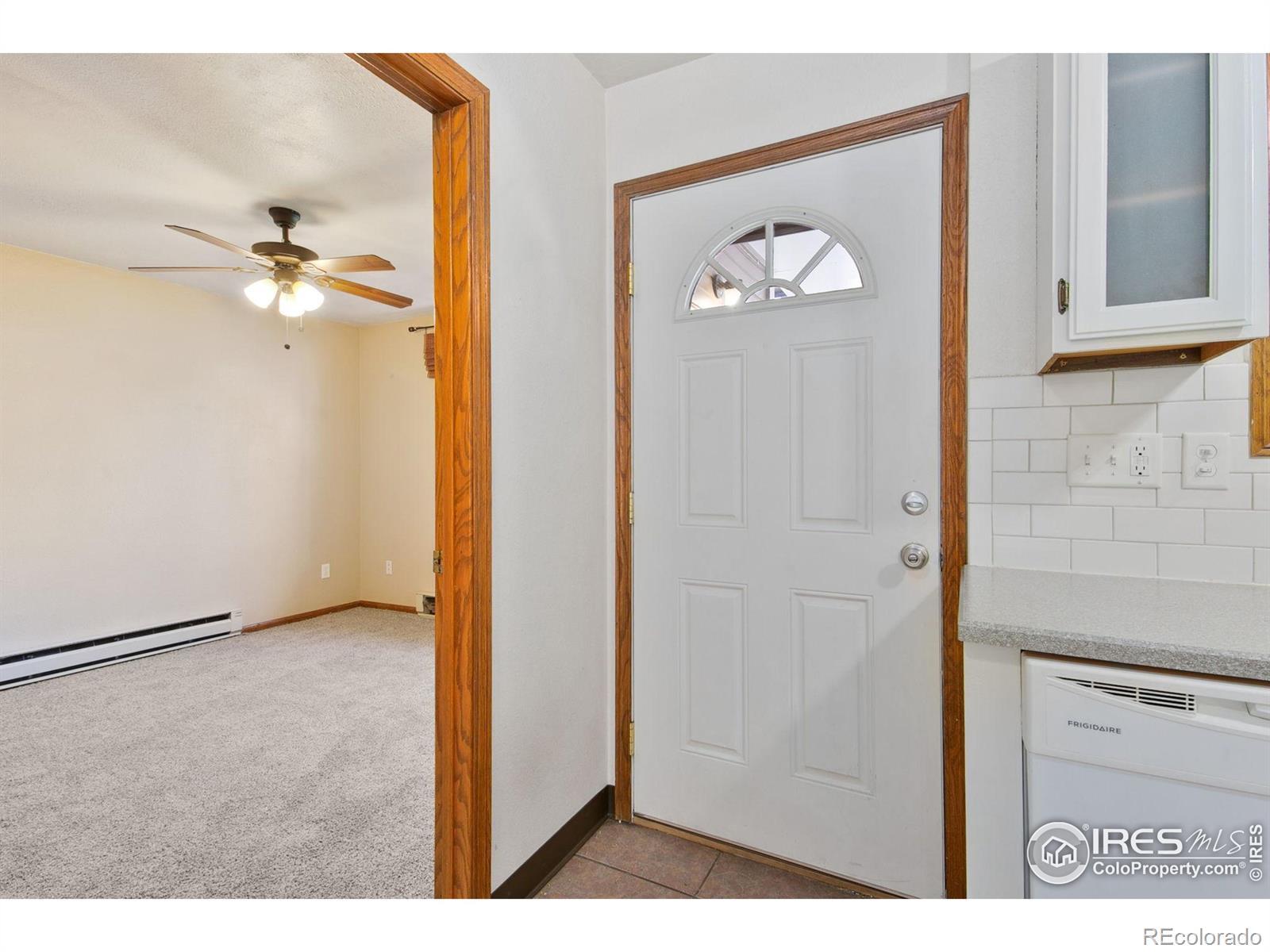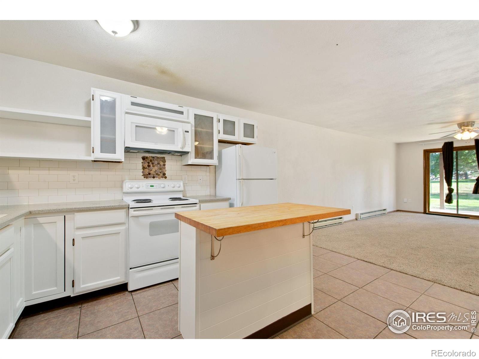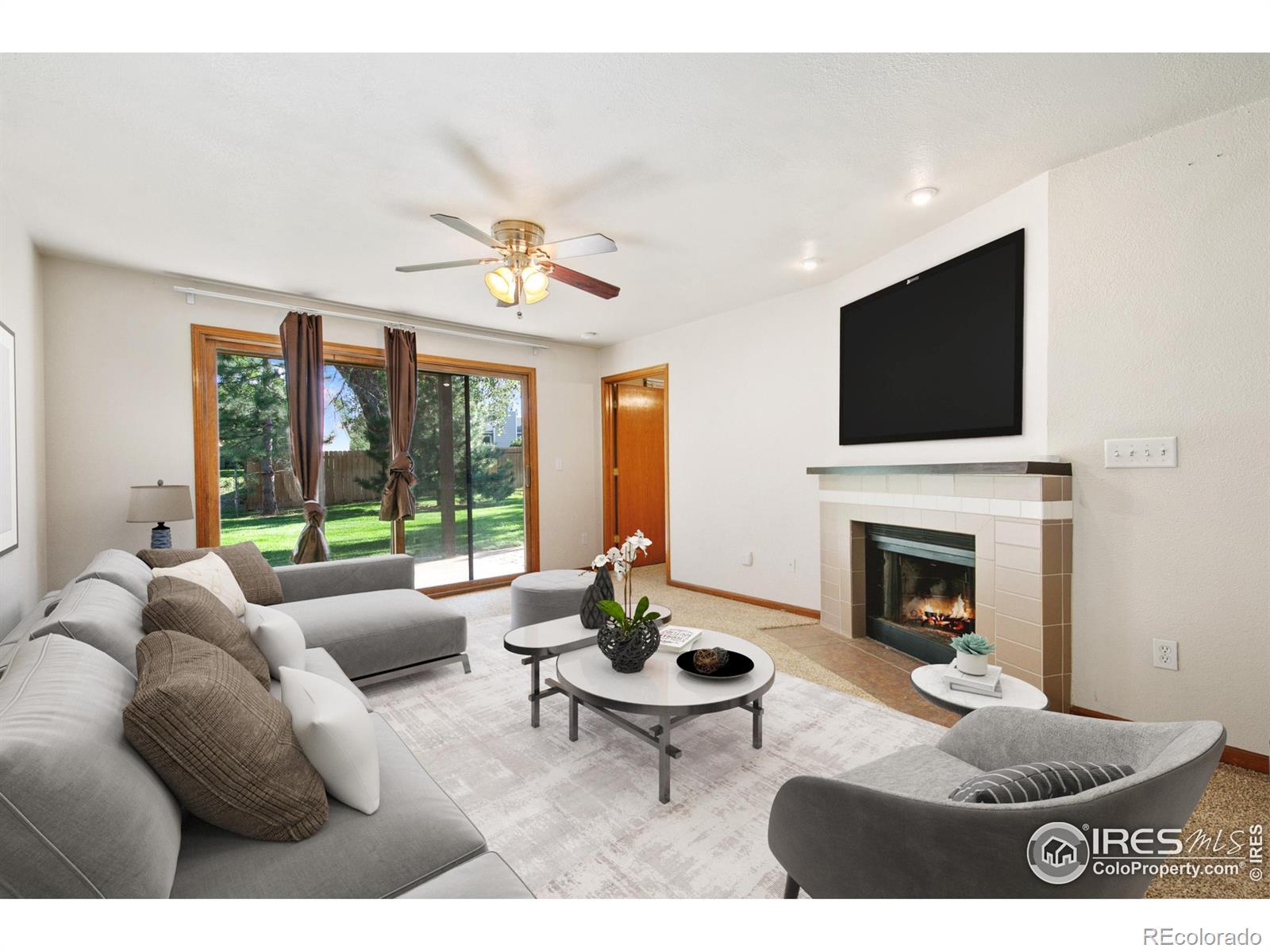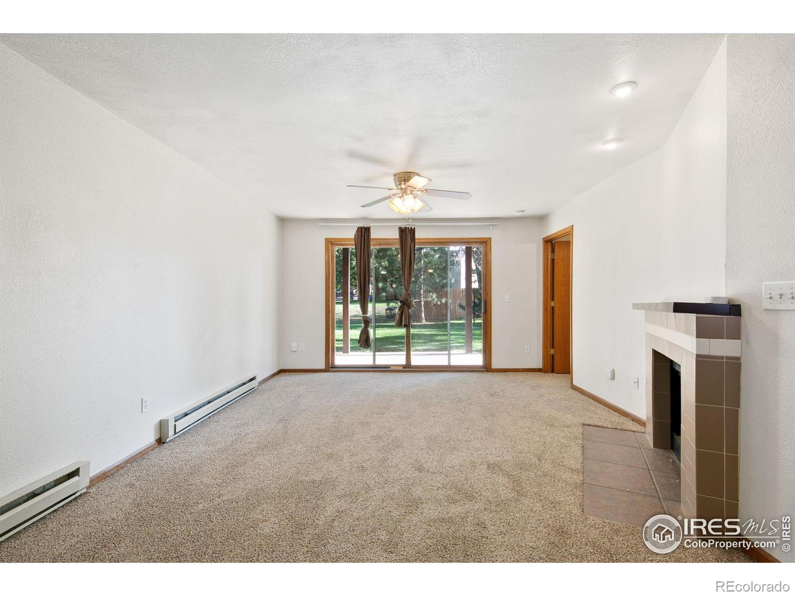 Back on the Market through no fault of the home. Prime end-unit living in Midtown! This main-floor condo in Aspen Village offers easy living with a thoughtful layout and fresh updates that make it completely move-in ready. With new carpet and fresh paint throughout, this 2-bed, 1-bath unit feels clean, inviting, and ready to enjoy from day one. The open living area creates a welcoming atmosphere, highlighted by a classic wood-burning fireplace that serves as the centerpiece of the room. The kitchen has been updated with a clean, modern look, featuring white appliances, a subway-tiled backsplash, and a functional island for meal prep or casual dining. Slide open the doors to your covered patio that backs to a private HOA-maintained green space, providing privacy and a peaceful outdoor retreat without the upkeep. A storage closet on the front patio is perfect for seasonal items. Central Fort Collins convenience just minutes from CSU, Old Town, and all the restaurants, shops, and culture that make Midtown a vibrant place to be.