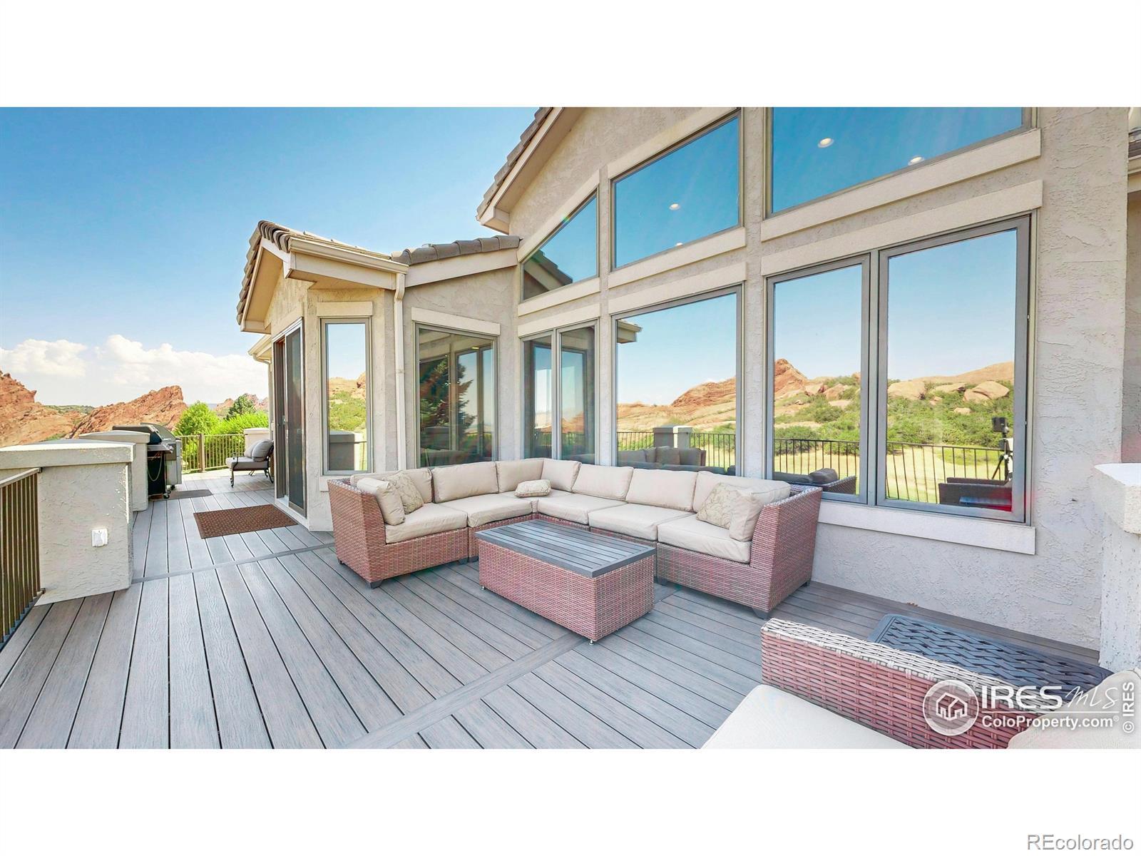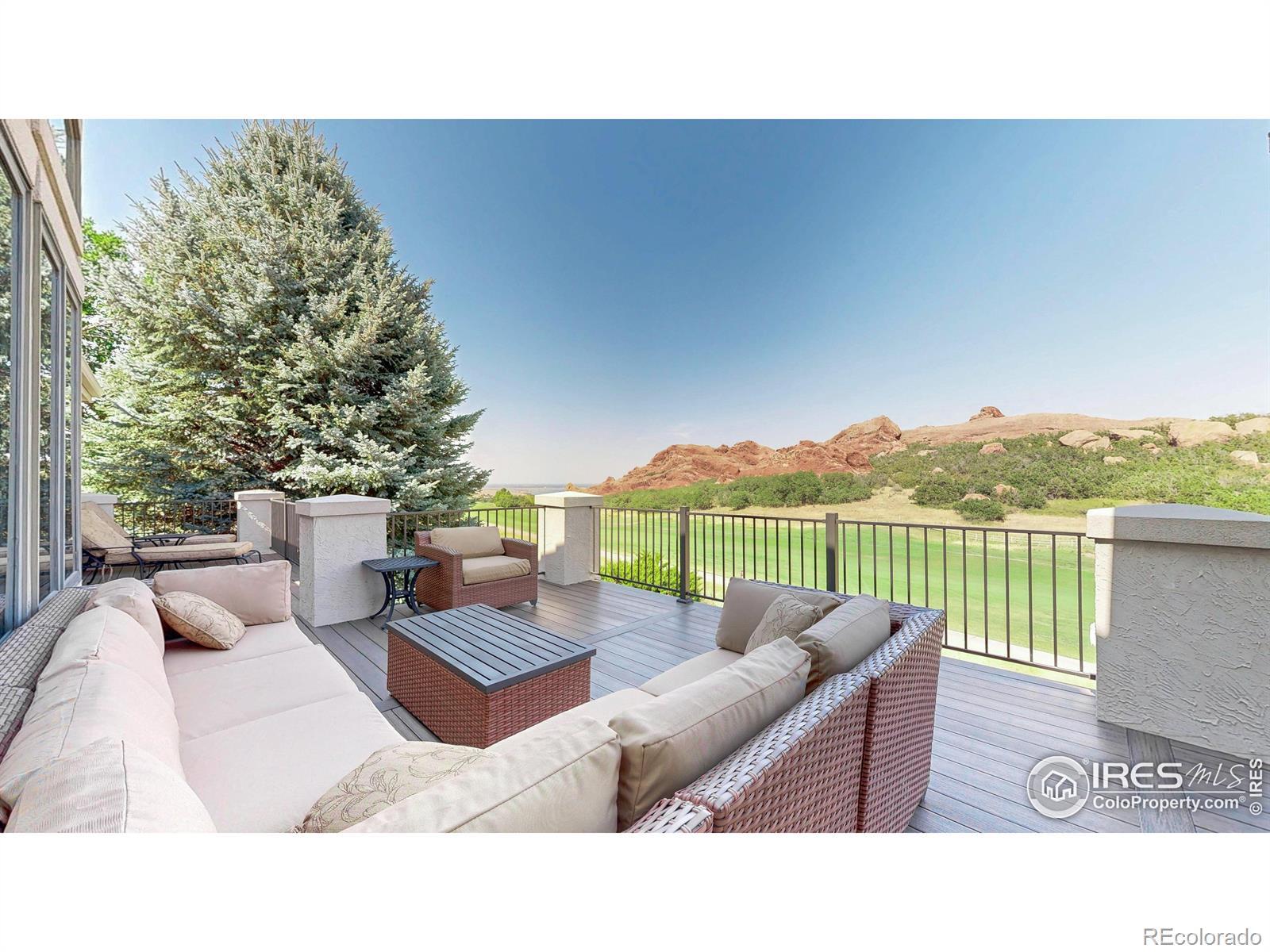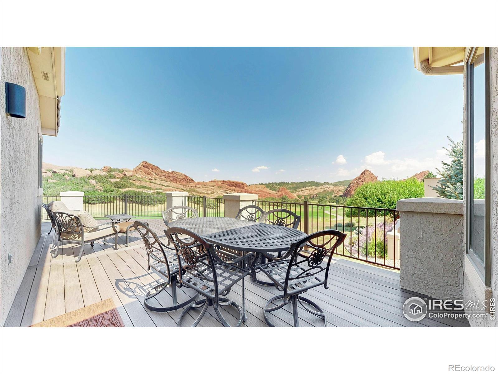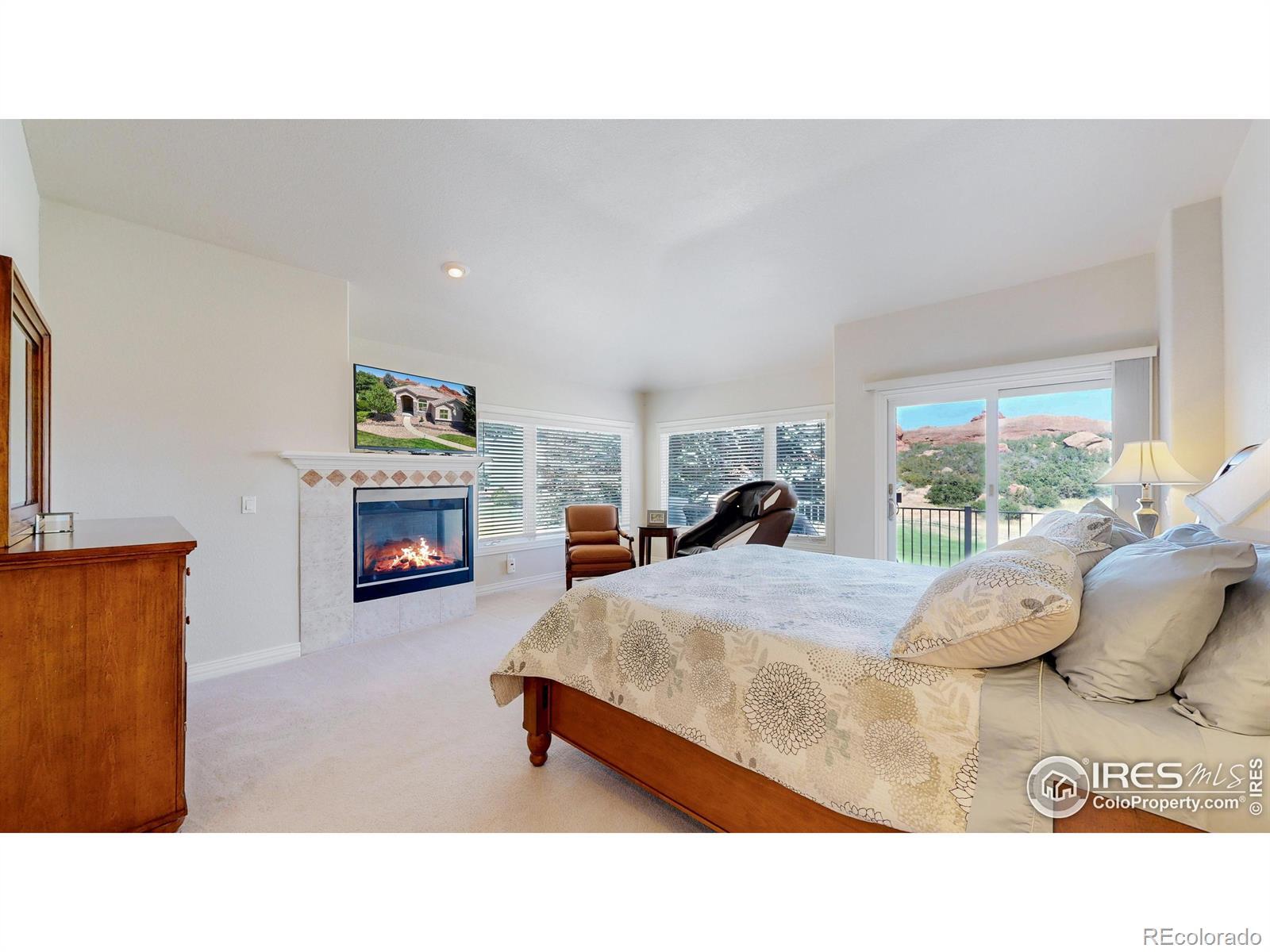Located on the prestigious Arrowhead Golf Course, this stunning home offers breathtaking views! Step into the oversized great room featuring a cozy gas log fireplace, hand-scraped engineered hardwood floors, built-in shelving, and expansive windows that perfectly frame the scenic golf course and red rock vistas. The updated kitchen is a chef's dream, equipped with premium Thermador appliances, slab granite countertops, and a tile backsplash. Just off the kitchen, a new expanded composite deck-positioned on the east side of the home-offers a peaceful evening retreat overlooking the fairway. Entertain in style in the formal dining room, which includes a built-in sideboard with a slab granite top and elegant glass-front cabinetry. The study is outfitted with custom built-in bookshelves and large windows that fill the space with natural light. The expansive primary suite is a true sanctuary, showcasing stunning views, gas fireplace, dual walk-in closets, and a newly remodeled spa-like bathroom complete with a freestanding tub, frameless glass shower, and a heated towel bar. A newly updated guest bathroom with a quartz-topped vanity serves the main floor, along with a secondary bedroom located on the opposite side of the home-perfect for privacy-featuring its own brand-new 3/4 bath. The spacious main floor laundry room includes built-in cabinetry, a utility sink, and washer/dryer. Downstairs, the walkout level is designed for entertaining. The family/recreation room features a fully equipped wet bar with a large wine refrigerator, granite countertops, tile backsplash, and even includes the pool table and theater seating! A secondary bedroom on this level offers a great option for a home office, while a large workout/flex space provides endless possibilities. Two additional bedrooms share a beautifully remodeled full bath. There is a flagstone patio with a dry under system for those rainy days. The oversized 3-car garage provides ample space for vehicles, gear, and toys.