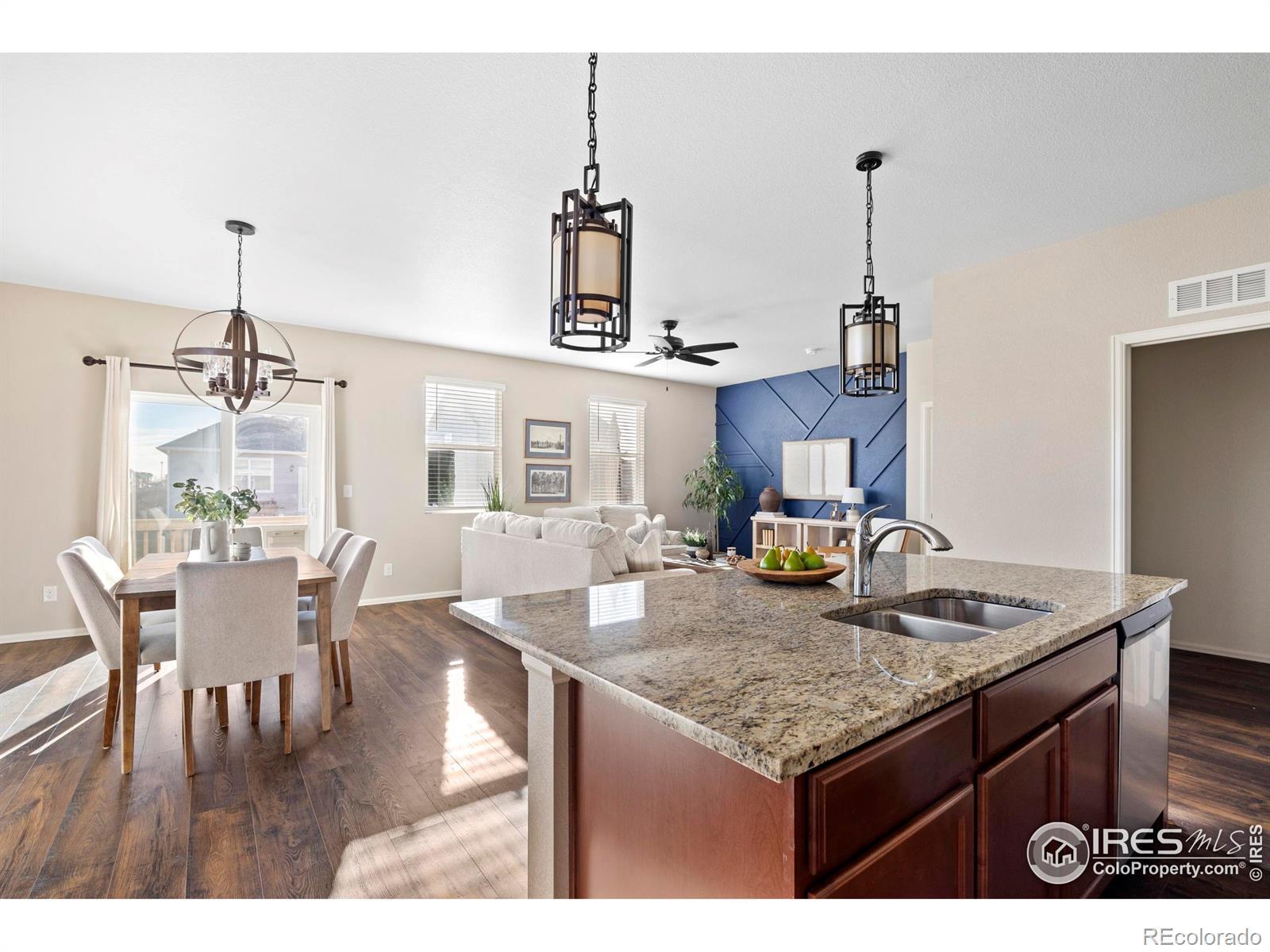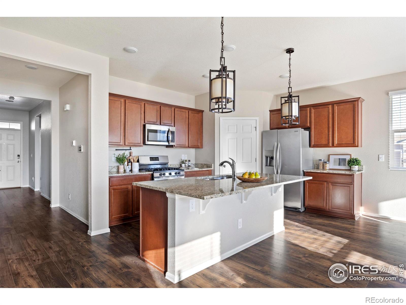 Discover the charm of this upgraded ranch-style home at 939 Keneally Court, Windsor, CO. This modern residence features an open and thoughtful floor plan, offering 1,625 square feet of single-level living that's both smart and sophisticated. With three well-separated bedrooms and two beautifully appointed bathrooms, this home is designed for comfort and functionality.Step inside to find new luxury vinyl plank flooring that flows seamlessly throughout the living areas, complemented by designer light fixtures that add a touch of elegance. The kitchen is a culinary delight, equipped with stainless steel appliances-including a gas range-granite countertops, and a large island perfect for gathering and entertaining.The primary bedroom is a serene retreat with an ensuite bathroom featuring dual sinks, a spacious shower, and a walk-in closet to accommodate all your storage needs. Step outside to enjoy the expanded back deck, which overlooks a private backyard, complete with a privacy fence-ideal for outdoor relaxation and entertaining. Positioned on a corner lot, this home boasts an expanded side yard, offering extra privacy and additional space for your outdoor lifestyle. With a total lot size of 7,928 square feet, there's plenty of room to enjoy. This home is a perfect blend of modern upgrades and timeless style, ready to welcome you home.