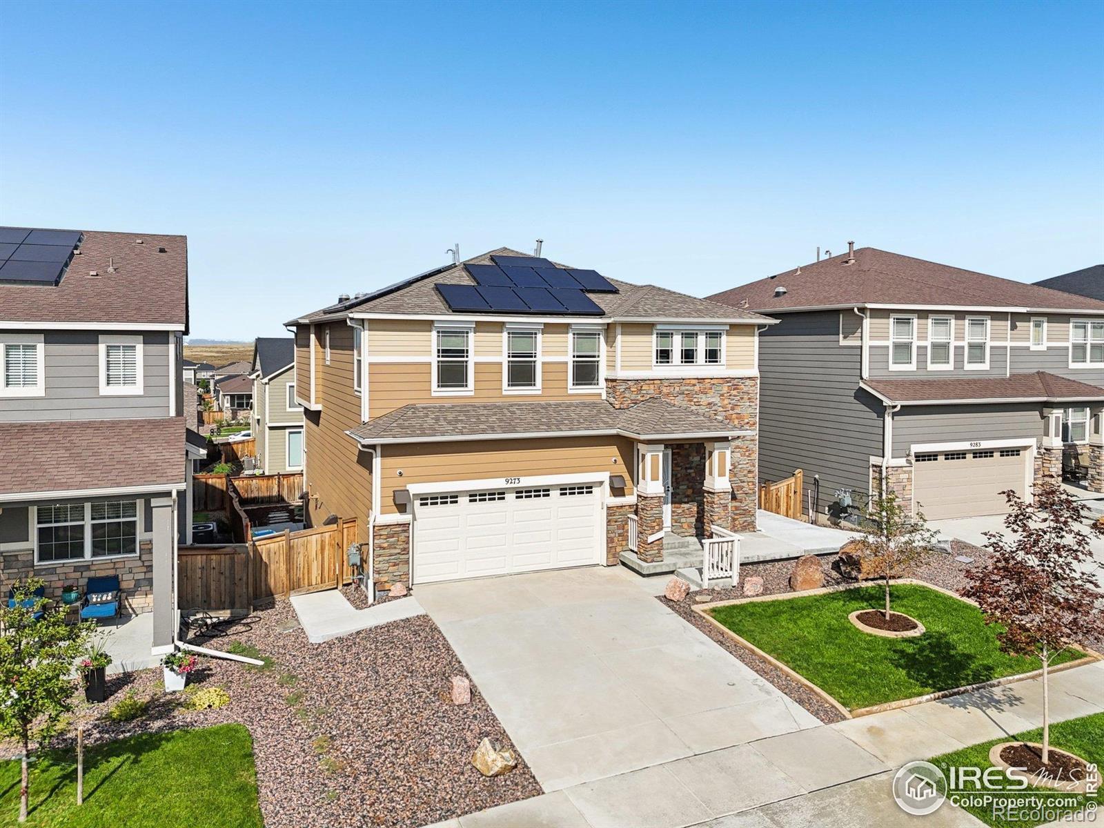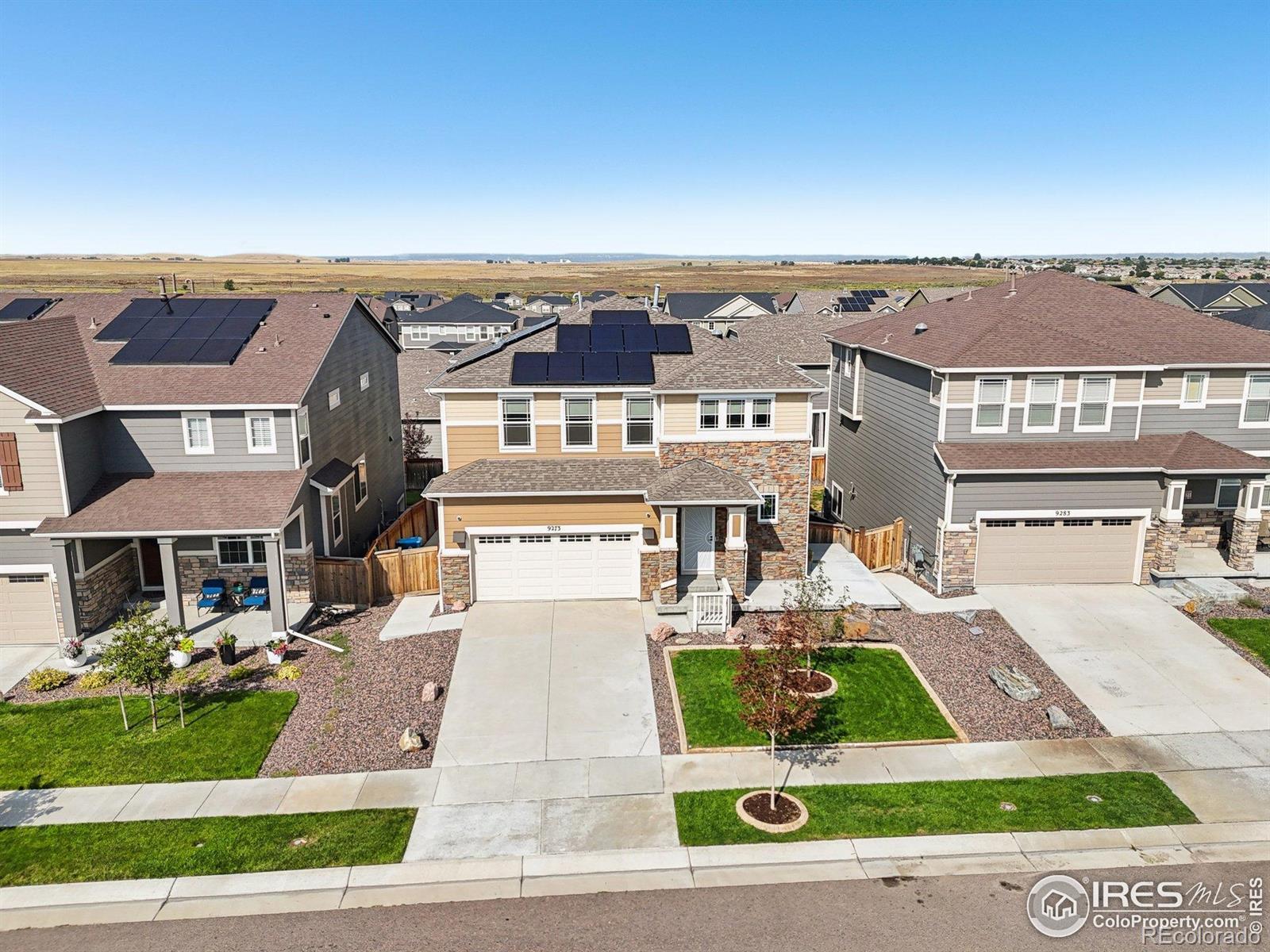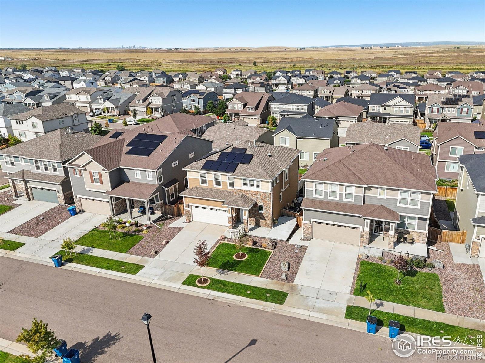 Stunner in Buffalo Highlands! This delightful two story home with a finished basement has been extensively upgraded for the new owner! The main level features a gourmet kitchen with stainless appliances, granite counters, stylish cabinets, large island with ample seating, bullnose corners, separate dining space, great room and patio with views ideal for entertaining. The upper level floor plan is perfect with its large primary suite with mountain views, a spa-like shower and walk in custom closet. Additionally there are 2 more bedrooms upstairs plus a 5 piece full hallway bathroom, loft and office space that is bright and cheery. The finished (and permitted) garden level basement was fully permitted and offers an additional bright and open flex space complete with TV, gorgeous electric fireplace, microwave and fridge. Extensive updates include: fully PAID solar with battery backup, owned security system, solar tube lighting, retractable awning, fully landscaped backyard, gardens, extra trees/shrubs for privacy, tankless water heater and softener, sump pump, additional concrete walkway/patio, decorative stone window well covers, new garage door and opener with its own camera. Inside the home you will appreciate the quality plantation shutters, bullnose corners, custom blinds throughout, some new windows, additional ceiling fans, custom tile work, custom closet systems and more. Enjoy easy access to DIA, Rocky Mountain Wildlife Preserve, downtown Denver & Brighton Crossing. Up and coming with new dining, shopping & entertainment options coming as well as a new neighborhood school and multiple community events throughout the year. Make this beautiful home yours today!
