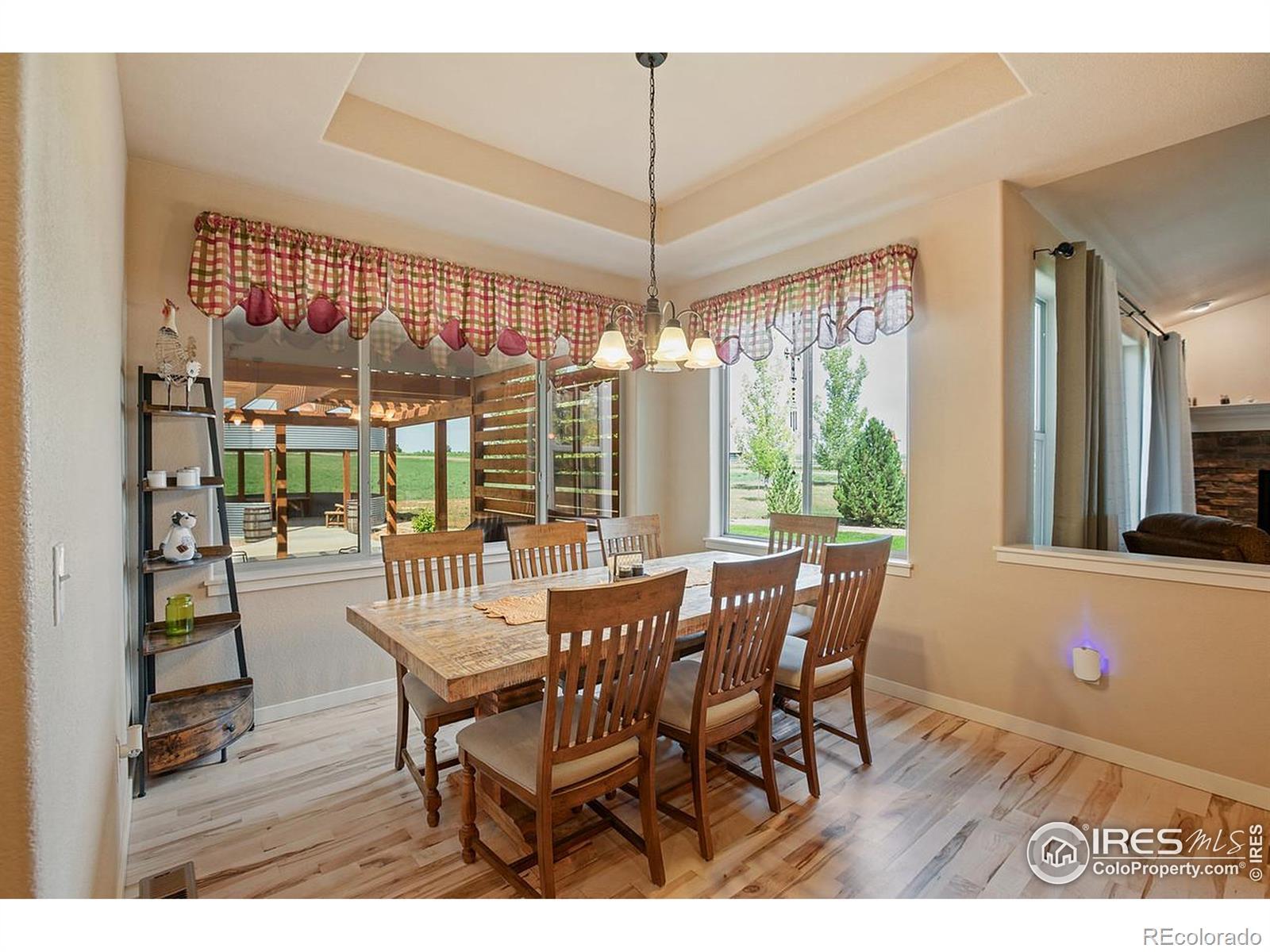Back on the market, no fault of the property! Here is the Holiday gift you have been looking for! You will not want to miss out on this beautiful semi-custom ranch located just two miles east of Eaton on 4.78 acres! This nicely landscaped yard offers established trees, front and back covered patios, grain bin gazebo, garden shed and amazing mountain views. A pipe fence pasture has a lean-to with three pens set up and ready for your livestock with water and electric access at the fence line. Large 40x40 insulated shop with concrete floors, large overhead door and heater offer all of the storage or work space you could ever need. Inside this completely finished ranch style home you will find new granite counters in the kitchen, amazing wet bar in the basement for entertaining, as well as many other beautiful finishes throughout. Don't miss out of this amazing opportunity to own your own little slice of heaven!