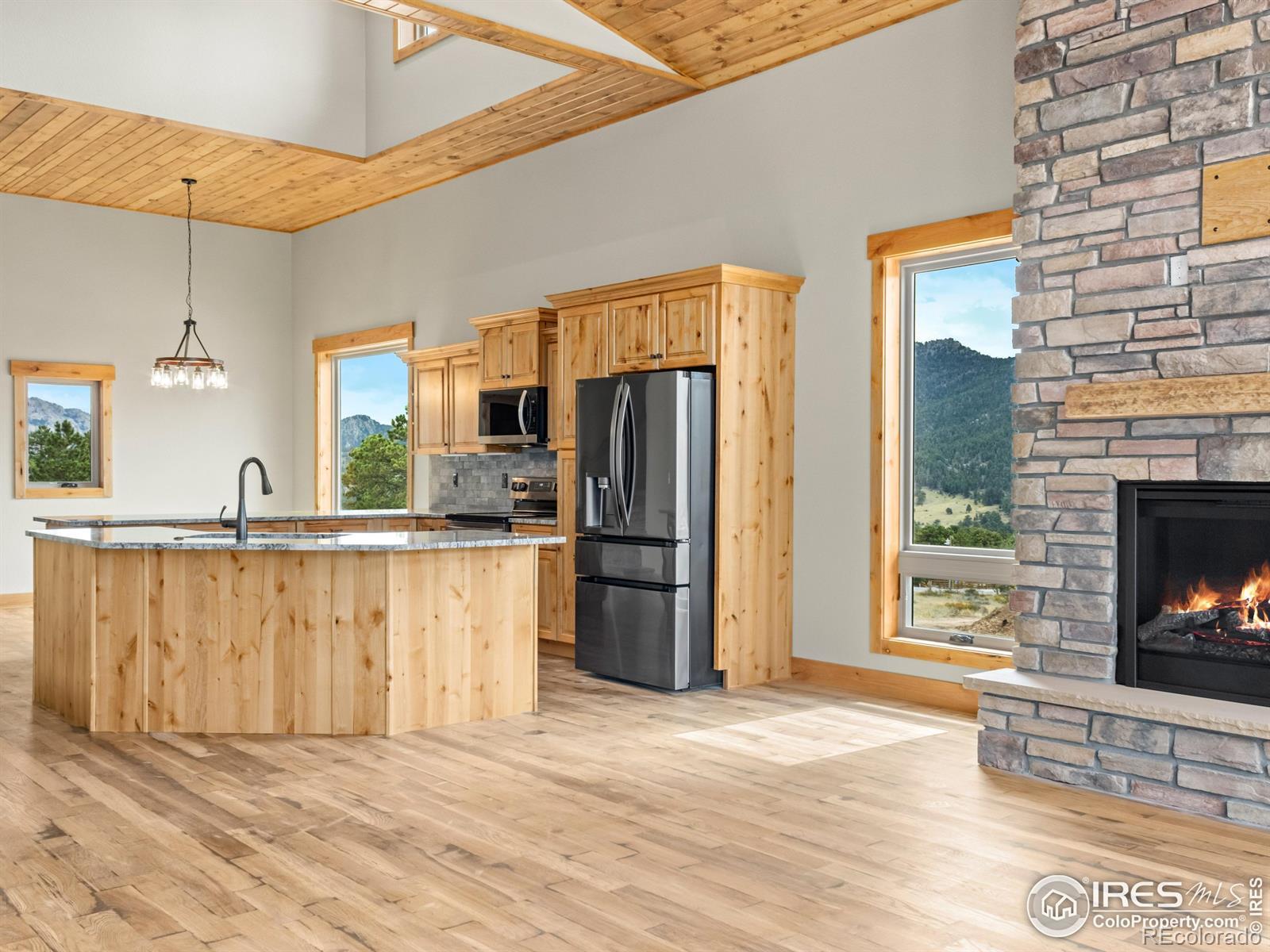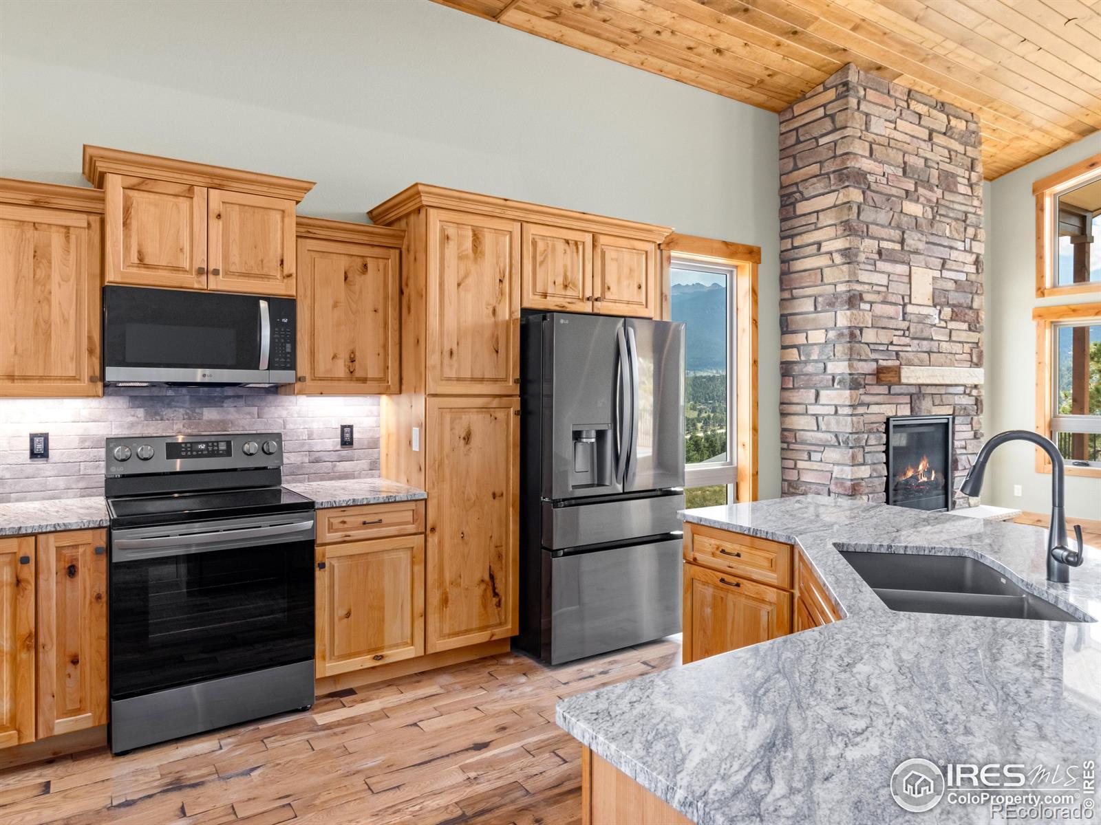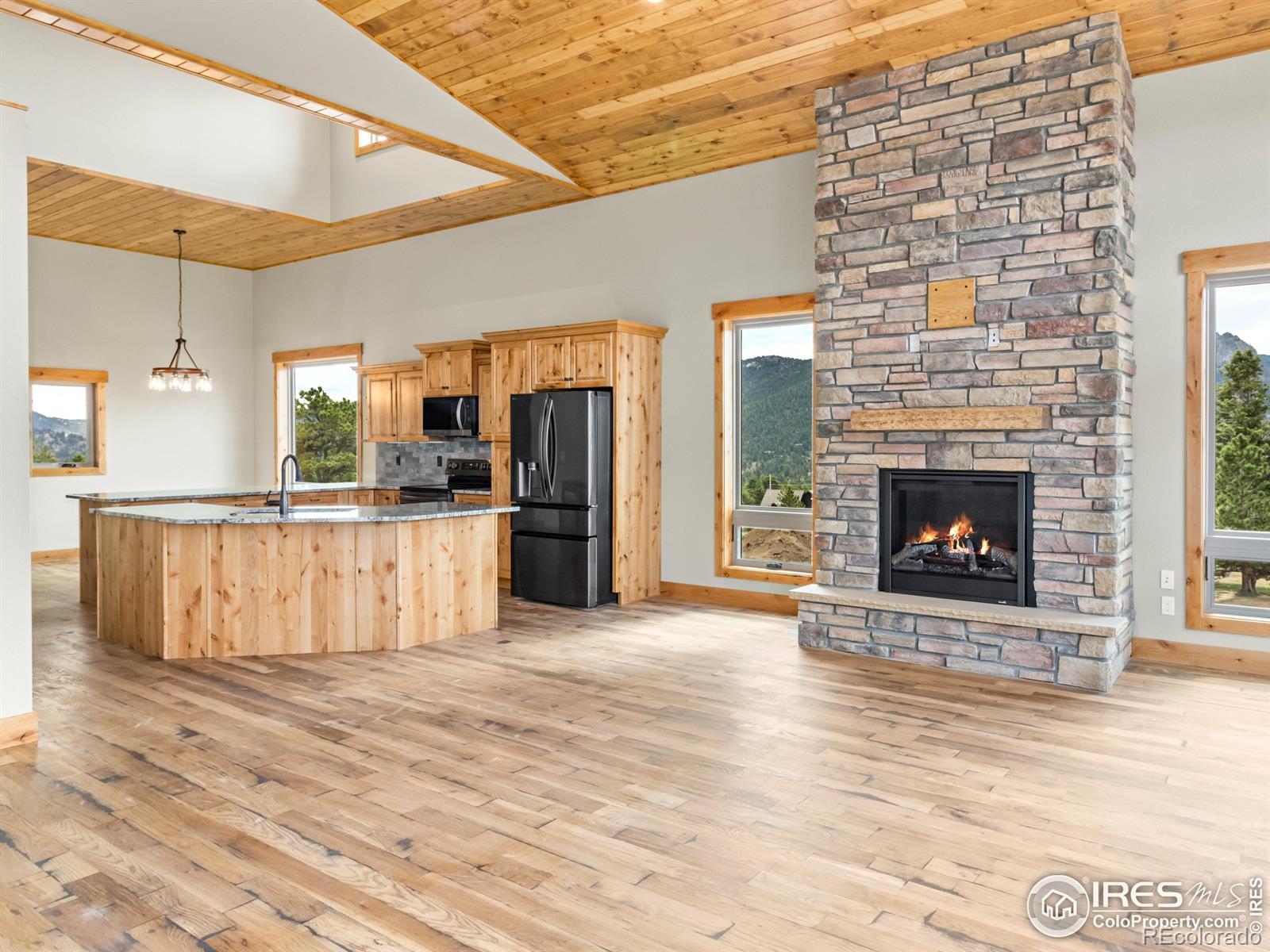 Brand New Custom Mountain Home with BIG VIEWS to Longs Peak! Easy living awaits with an open great-room design, featuring a stone fireplace, beautiful hardwood flooring & a wall of windows to take in those views to Longs Peak, Mount Meeker and Twin Sisters. Spacious kitchen with lots of storage, slate-stainless appliances & stunning granite counters. Three generous bedrooms and 2.5 baths, including a spa-like primary suite with oversized shower. One of the first homes in Estes Park under new Energy Code: ERV System (pre-treated outside air), Insulation: Ceilings - R-60, Walls-R-30 or R-20 (cavity) + R-5 (continuous), Floors - R-30, Crawl - R-19 with upgraded fiberglass blanket, Motion sensor lighting (photo cell and timer switched with dark sky compliance), whole house Sprinkler system, EV system in garage for charging electric cars, Solar ready conduit in attic, upgraded exterior zip system "green board" for better air seal, hardy board siding for fire mitigation, super-efficient electric furnace with heat-pump & central air. Expansive decks, 1-acre site and a 3-car garage completes the package. Your new home is ready to enjoy! Custom designed mountain home, open floorplan, fantastic kitchen, generous bedrooms, luxurious baths and a huge view to Longs Peak. One of the first homes in Estes Park under new Energy Code: ERV System (pre-treated outside air), Insulation: Ceilings - R-60, Walls-R-30 or R-20 (cavity) + R-5 (continuous), Floors - R-30, Crawl - R-19 with upgraded fiberglass blanket, Motion sensor lighting (photo cell and timer switched with dark sky compliance), whole house Sprinkler system, EV system in garage for charging electric cars, Solar ready conduit in attic, upgraded exterior zip system "green board" for better air seal, hardy board siding for fire mitigation, super-efficient electric furnace with heat-pump & central air.