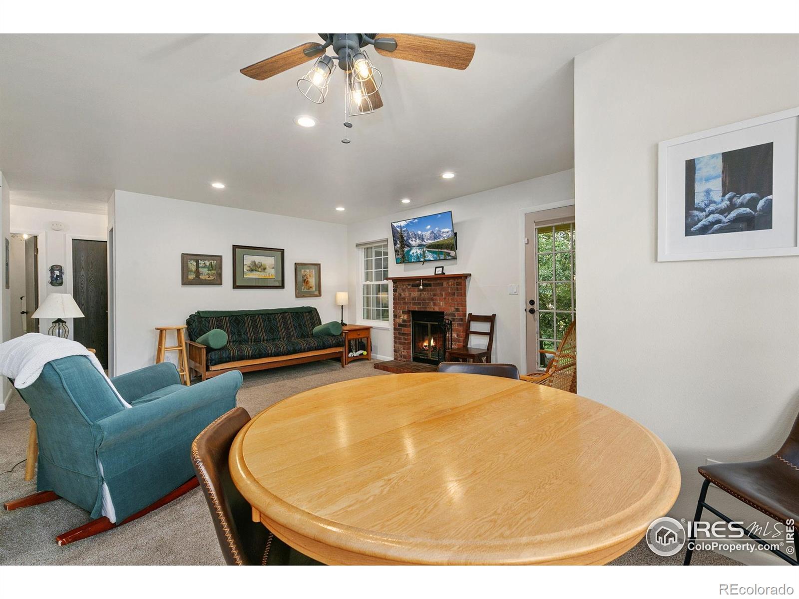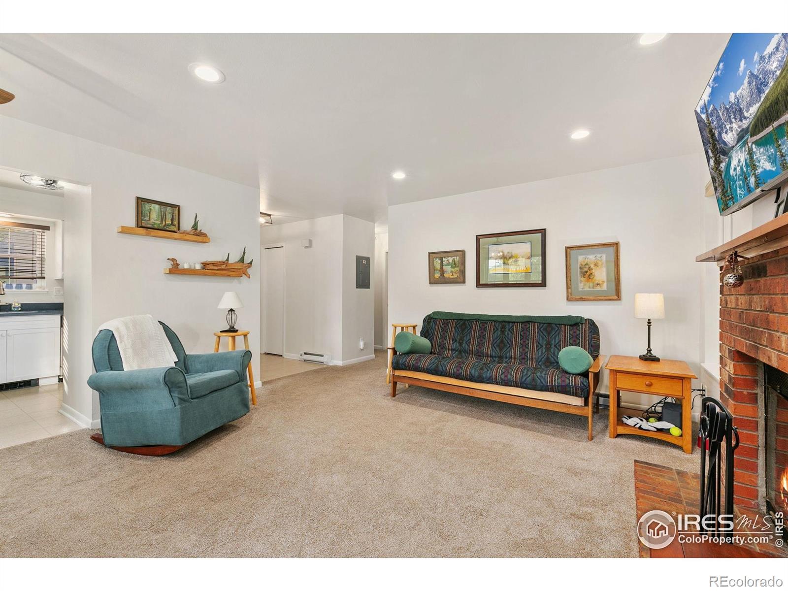 SELLER IS HIGHLY MOTIVATED!! Welcome to this beautifully updated condo in a prime Fort Collins location, just minutes from CSU and directly across from the park. This desirable corner unit is filled with natural light, creating a bright and welcoming atmosphere.The newly remodeled kitchen is a standout, featuring stainless steel appliances-including a new refrigerator-modern finishes, and plenty of room for cooking and entertaining. The living room offers a cozy retreat with its classic brick wood-burning fireplace, while the dining area overlooks the park for a peaceful backdrop at mealtime. The spacious primary bedroom sits next to a fully updated bathroom with stylish tile and fixtures. A second bedroom with a large closet provides flexibility for guests, a home office, or additional living space. Convenient hallway laundry makes everyday living easy. Step outside to your private back patio, perfect for relaxing or hosting friends. Additional highlights include newer windows, updated lighting, a large storage closet under the stairwell, and abundant parking right in front-no hassle, no searching. Best of all, this location puts you across from Fischer Natural Area and Rolland Moore Park, with trails, open space, CSU, Old Town, and shopping/dining just minutes away.