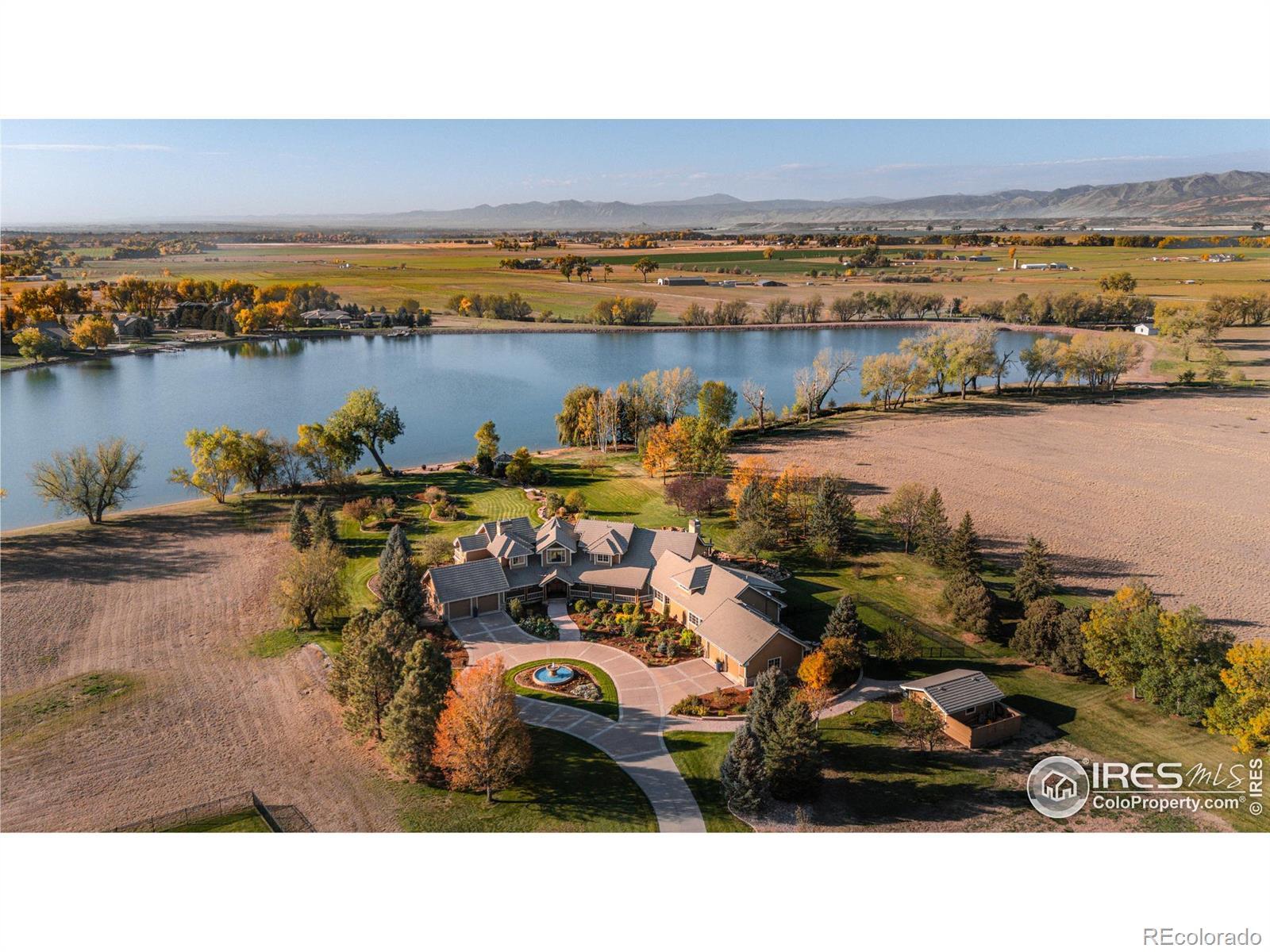 Enjoy privacy and exclusivity at this unrivaled Crystal Lane retreat, just 10 minutes from Longmont amenities and 30 minutes from Downtown Boulder. Experience gated, waterfront living at its very best in this stunning showplace featuring huge mountain views, expansive interiors and a bucolic water-front location on 5.57 verdant acres on Boulder County's Crystal Lake. Inside this beautifully remodeled residence, ceilings soar above rich hardwood floors and elegant millwork, while oversized windows frame magnificent vistas in every direction. A covered porch and gracious foyer open to the home's show stopping curved staircase, creating a dramatic first impression. The spectacular kitchen awaits your next culinary achievement with rows of custom cabinetry, granite countertops, and upscale stainless steel appliances. The massive center island is perfect for casual dining. A home office, family room and large laundry room add convenience to the first floor. Outside, lush lawns, towering trees, and meticulously curated gardens stretch to the shores of Crystal Lake. Entertain on the large patio or enjoy a peaceful cup of coffee in the charming gazebo. The outdoor fire pit is the perfect setting for stargazing, or head down to the lake for swimming, kayaking, paddleboarding and fishing. With 5.57 acres all to yourself, you'll never lack peace, privacy and room to roam. The updated main-floor owner's suite boasts tray ceilings, a warm fireplace, walk-in closets and mesmerizing views. In the en suite spa bathroom, discover a custom clawfoot tub, oversized walk-in shower and waterfall vanity. Luxurious accommodations continue with a first-floor secondary suite and two more en suite bedrooms upstairs, both with a private balcony. The lower level features a gym, storage and utility rooms and a separate guest suite with private entrances. The home features two flanking oversized two-bay garages for storing both the daily drivers and the weekend toys.
