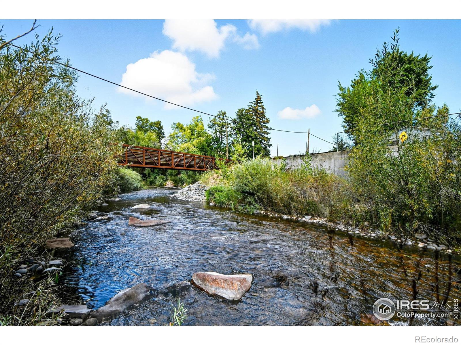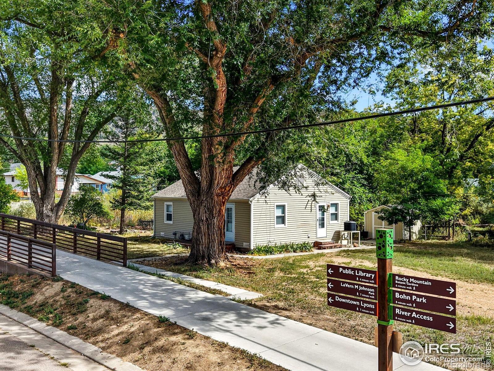 NEW LOWER PRICE! Welcome to your own little slice of Heaven in the heart of Lyons! This is a truly unique and special creek-front property, just steps from all that Lyons has to offer. Step out your front door and you literally have the Lyons trail system at your feet! Step across the bridge and you are in bustling Downtown Lyons to enjoy coffee, meals, brews, and entertainment! Imagine entertaining, creekside, on the flagstone patio with a built-in firepit, beautiful flagstone benches, and the sound of trickling water in the background! A stone staircase brings you directly into the water, where you can enjoy swimming, lounging, fishing, and floating! Nestled on a ~1/4-acre lot with towering trees, this 2-bed/1-bath home has been updated throughout and offers a bright living area with gleaming hardwood floors. Included are updated lighting and fixtures, blinds, doors and trim, windows, and on-demand hot water. The bright kitchen has ample cabinet space with granite countertops and tile floors. This is a prime location with easy access across the bridge to historic Downtown Lyons. It is an easy walk to the dog park, Bohn Park, Picture Frame Rock, and miles of hiking trails. Just 15 minutes to Longmont and 30 minutes to Boulder, this is a fantastic opportunity to experience small town living in the foothills of the Rocky Mountains, with amenities and employment opportunities just minutes away. Creekside homes don't become available too often - don't miss this rare opportunity!