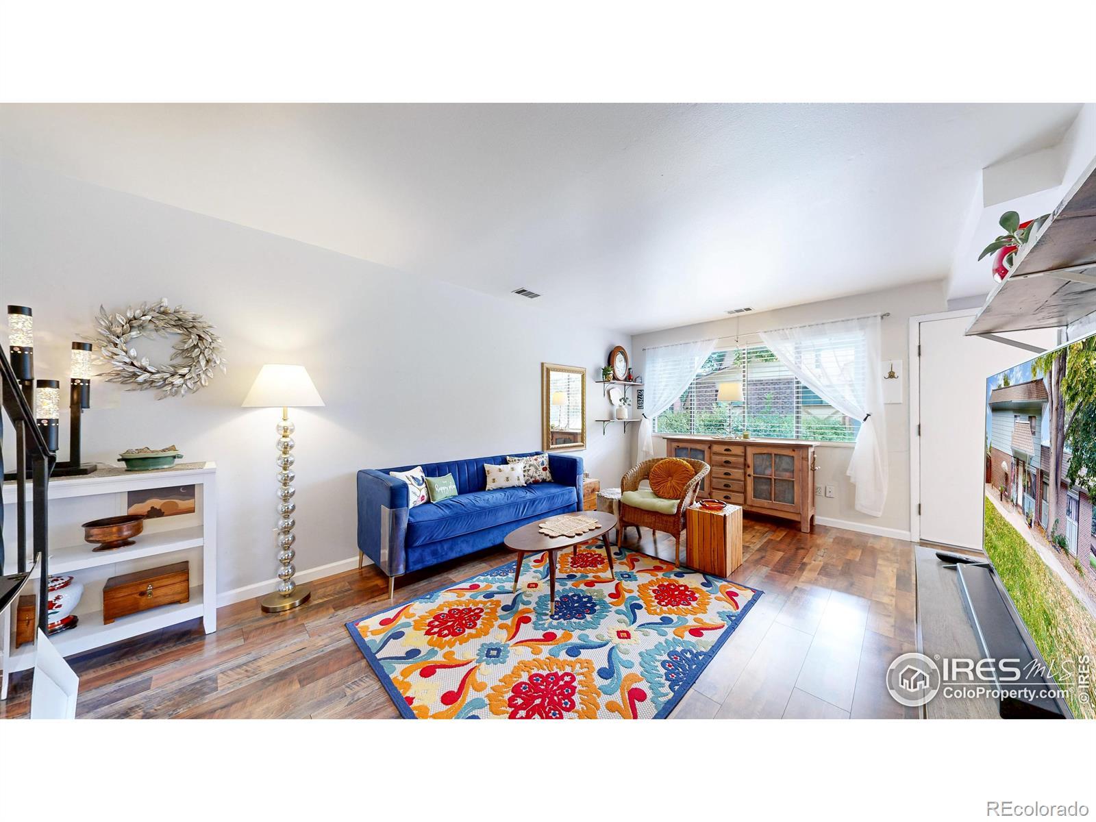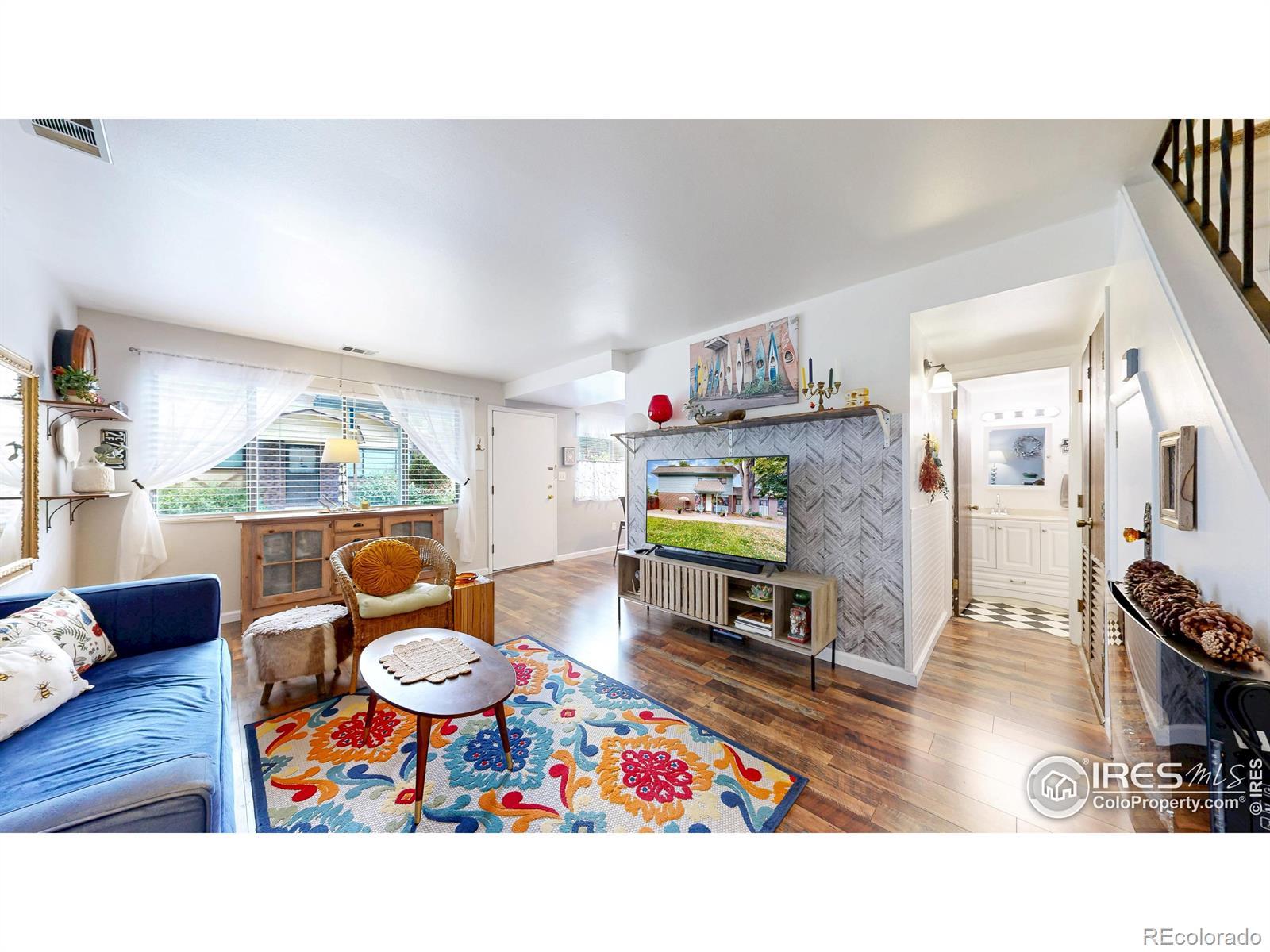 HUGE PRICE REDUCTION on this great private end unit! This inviting 2-bedroom, 2-bathroom condo is positioned in a desirable central spot of Fort Collins. This impeccable condo has functional design with modern conveniences, making it a fantastic choice for anyone seeking low-maintenance living with easy access to the city's best amenities. You'll be greeted by an amazing large front patio spanning the whole front of unit. Inside, you'll find a bright and open living space with loads of natural light. Front patio is a great spot to enjoy morning coffee or evening relaxation all while being surrounded by green space. The kitchen is designed with practicality in mind, featuring ample counter space, range with hood, and cool retro refrigerator. Enough space to enjoy eat in dining/kitchen. Both bedrooms are generously sized, with the primary suite offering plenty of closet storage in the walk in closet, while the second bedroom provides excellent flexibility for guests, a roommate, or a home office. A laundry area within the unit adds an extra layer of convenience and is equipped with a stackable unit. Enjoy all the recent updates the owners have lovingly taken care of: NEW electrical panel and wiring, NEW blinds, NEW carpet, interior paint and LVP & so much more! This home also offers a 1 car garage steps from unit. The exterior is well-maintained by HOA, enhancing the overall sense of ease.Just minutes away, you'll find the shops & dining options at Foothills Mall, nearby grocery stores like Sprouts and restaurants and bike trails, which makes commuting around Fort Collins simple. Outdoor enthusiasts will appreciate the quick access to Spring Creek Trail and Edora Park, perfect for biking, walking, or enjoying the Colorado sunshine. With its ideal combination of a thoughtful interior layout, cozy details, and proximity to both everyday necessities and recreation. Minutes from CSU and downtown FOCO. Great for close to the "University" living without all the congestion!