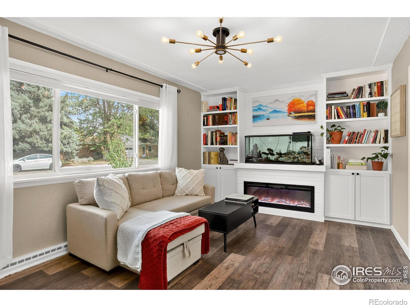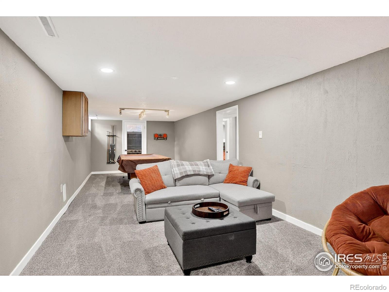 Light-Filled Retreat in the Heart of Longmont. Moments from the vibrant energy of Main Street, yet tucked within a peaceful residential setting, this beautifully refreshed Longmont residence blends modern comfort with effortless livability. Thoughtfully updated throughout, the home showcases new lighting, upgraded hardware, and a brand-new roof and furnace-creating a turnkey sanctuary just steps from parks, schools, and the city's beloved shops and dining. A welcoming living room with custom built-ins and an electric fireplace sets the tone, while the bright, reimagined kitchen features an induction stove, new quartz countertops, a charming breakfast nook with built-in seating, plentiful cabinetry, and a skylight that drenches the space in natural light. The expansive family room, wrapped in windows and flowing seamlessly to the kitchen, is an ideal setting for entertaining. Generously scaled bedrooms offer private retreats, including a main-floor bedroom with its own entrance and a serene primary suite with barn doors, a walk-in closet, and a spa-like ensuite boasting a huge shower and dual sinks. The lower level unfolds into a versatile recreation area with new carpet, abundant storage, and an entertainment space complete with a pool table. Outside, a private fenced driveway provides ample parking, while the spacious backyard invites outdoor living with garden beds and an in-ground firepit for evenings under the stars. Designed for gathering, entertaining, and everyday ease, this home embodies Longmont living at its most inviting-bikeable to everywhere you want to be.