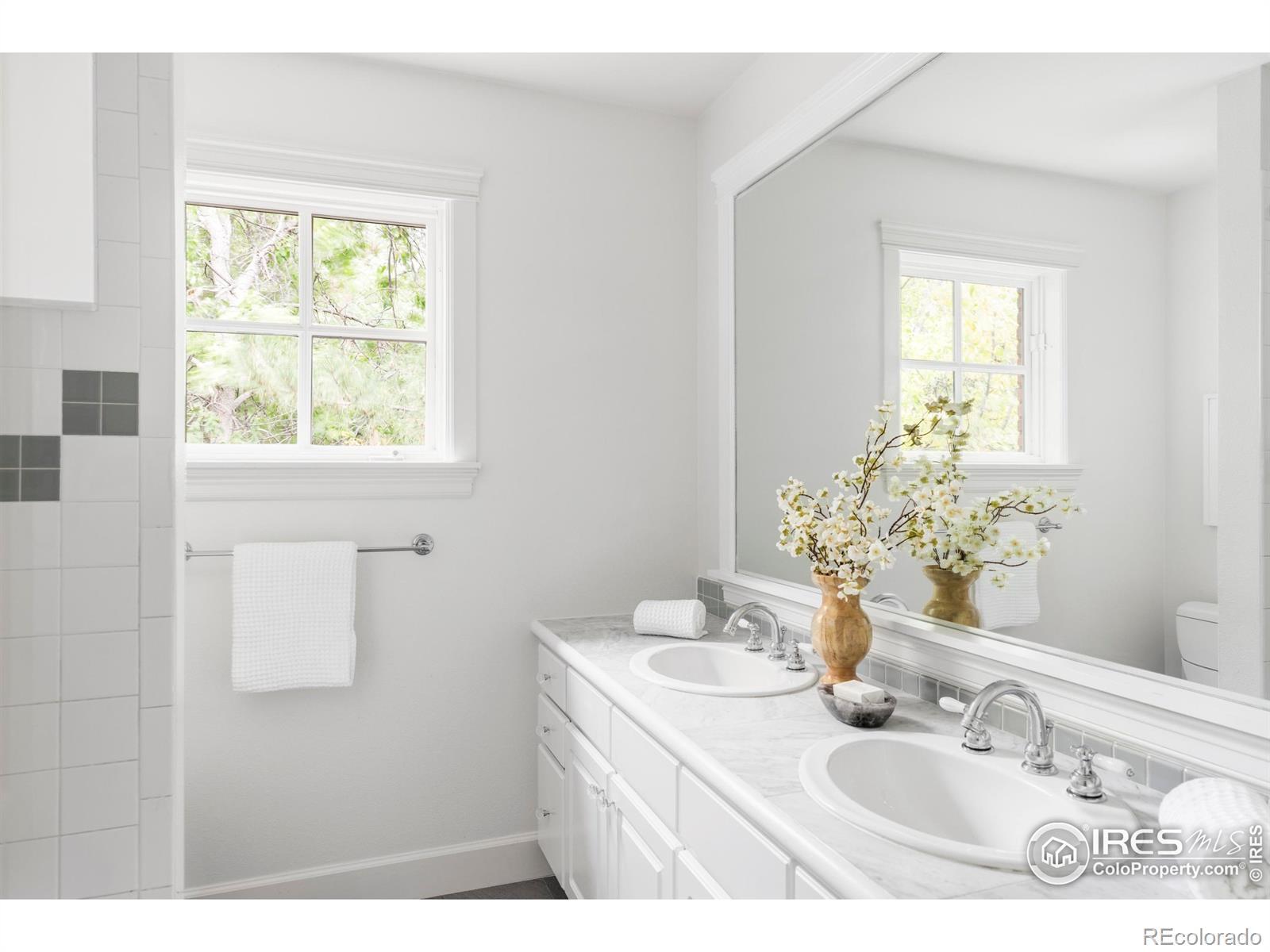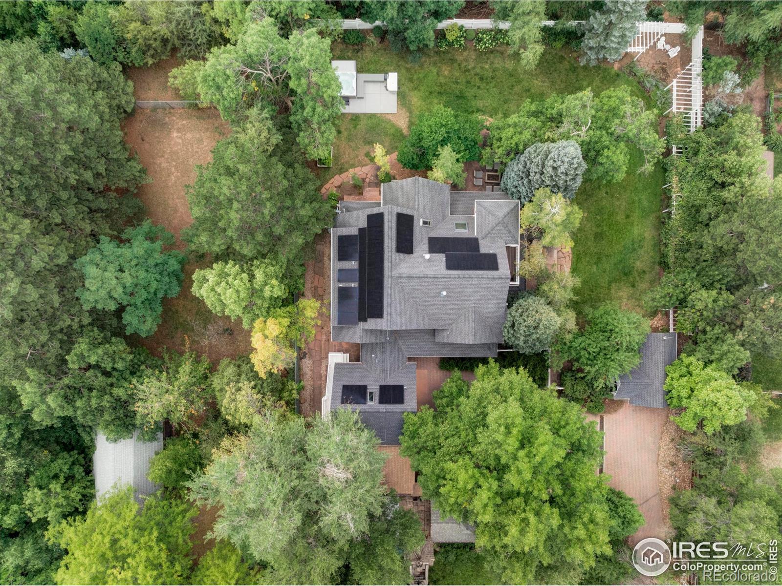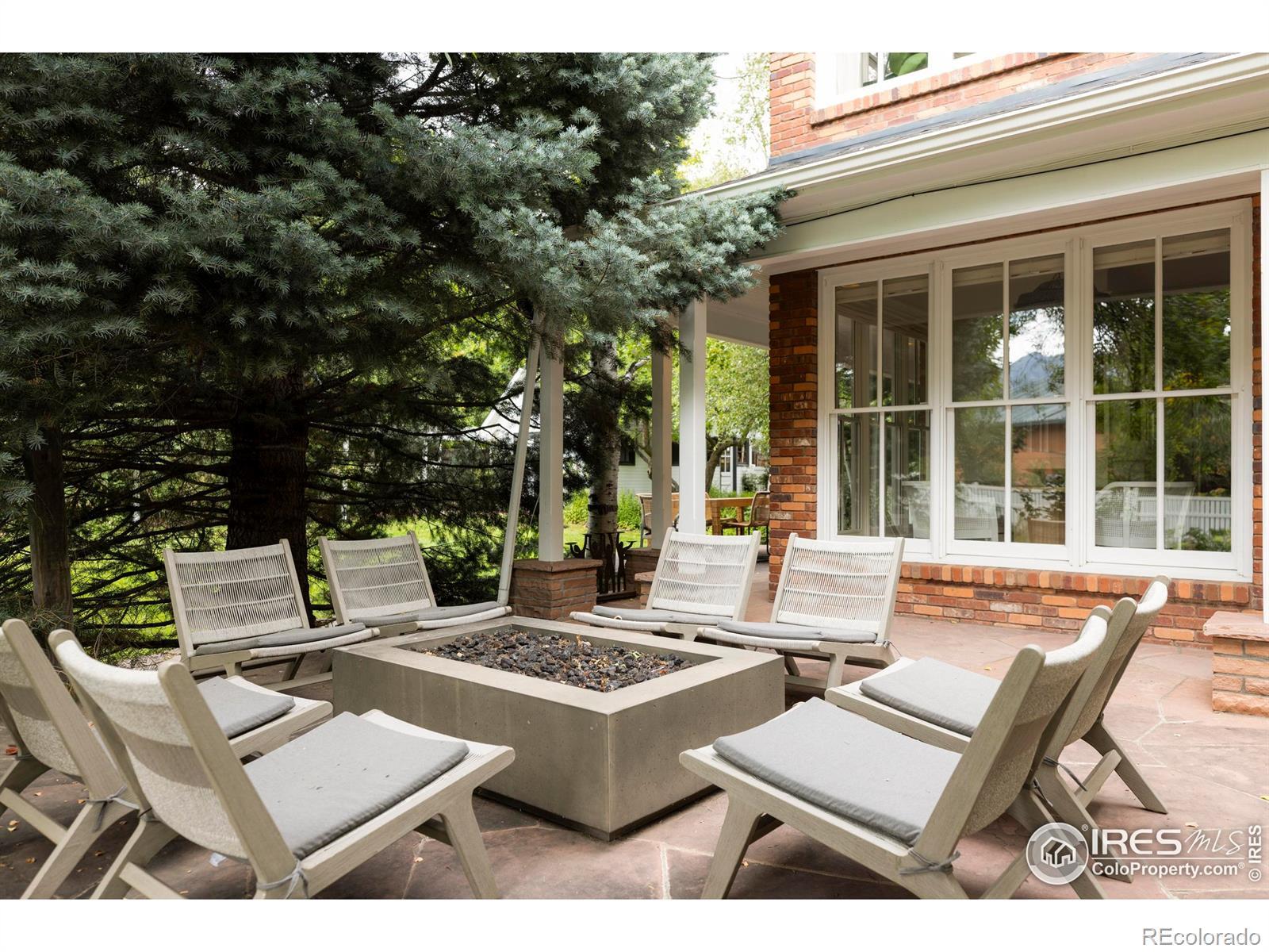 Tucked down a private brick lane on one of Boulder's most coveted streets, this half-acre retreat at 1070 Juniper blends timeless charm, thoughtful updates, and an incredible indoor-outdoor lifestyle. Mature trees and lush gardens create a sense of seclusion, all while enjoying a premier North Boulder location just minutes from trailheads, Ideal Market, top-rated schools, and Downtown Boulder. Inside, a welcoming foyer introduces hardwood floors and beautifully appointed living spaces. The formal dining room impresses with soaring windows, wood-beamed ceilings, and an ornate pocket door. The adjoining kitchen features a large island, high-end appliances, and a bright breakfast nook, while French doors open to the flagstone patio. The double-height living room is anchored by a fireplace and walls of glass leading outdoors. Nearby, the family room offers flexibility as a music room, sitting area, or lounge, with its own backyard access. A private office, powder room, and mudroom with built-ins, sink, and laundry connect seamlessly to the yard and attached garage. Upstairs, a landing overlooks the living room and leads to a hidden room-perfect as a meditation space, playroom, or office. The primary suite is a true sanctuary with a sitting area, hardwood floors, French doors to a private balcony, and two custom closets, including a spacious walk-in. The en suite bathroom includes a marble vanity with double sinks, soaking tub, walk-in shower, and water closet. Two additional bedrooms with loft spaces and mountain views share a bathroom with dual sinks. The lower level adds versatility with two bedrooms, a bathroom, flex areas, and a custom-built media lounge. Outdoors, flagstone patios, pergolas, and gardens evoke a secret-garden feel, while the fenced backyard features a Jacuzzi, cold plunge, lawn, and Flatiron views. A two-car garage, detached single-car garage, and private studio with separate entrance complete this exceptional retreat.