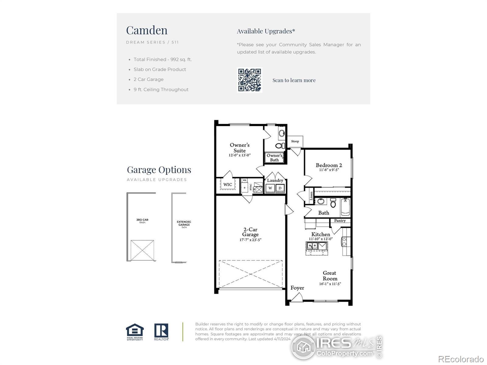 Builder offering $10,000 incentive with use of preferred lender. The Camden is a thoughtfully designed 992 sq ft floor plan, meticulously crafted for attainability. Discover a perfect blend of functionality and comfort in this charming open-concept living space, boasting modern features and a smart layout of two bedrooms and two full baths. HOA includes trash, non-potable water & neighborhood pool! Upgrades - Refrigerator, 42" Cabinets, Gas Range, LED disc light package, Front landscape, backyard landscape, Cedar privacy fencing