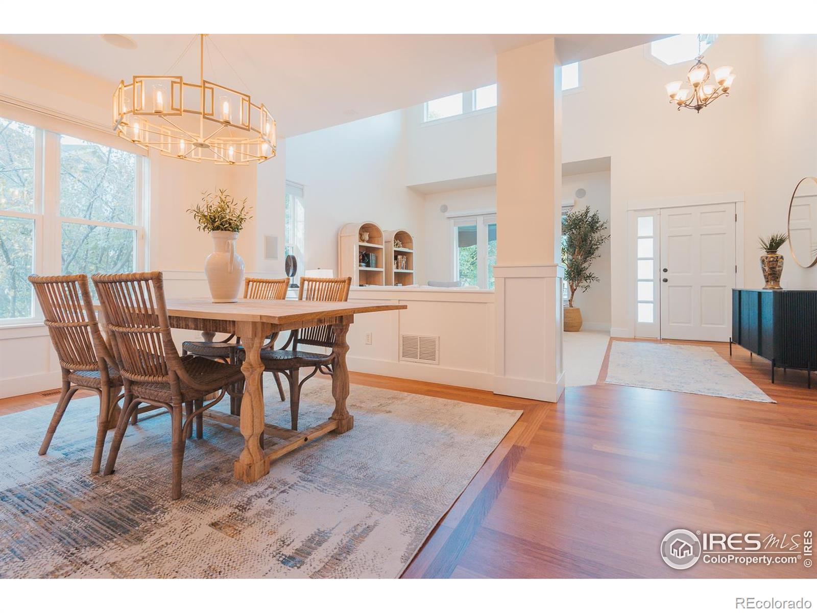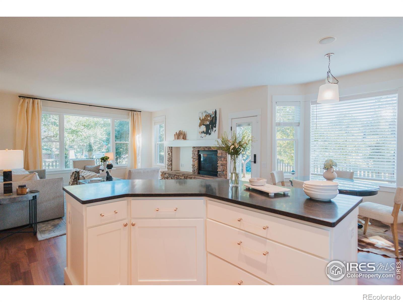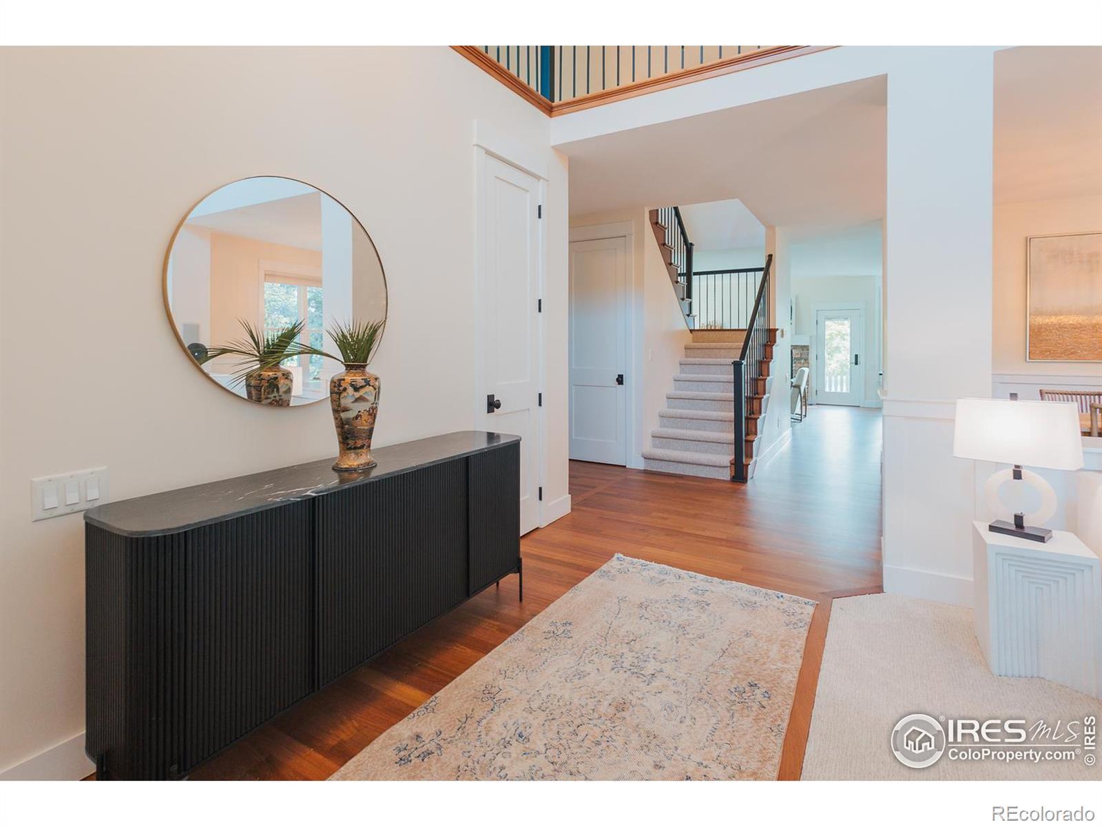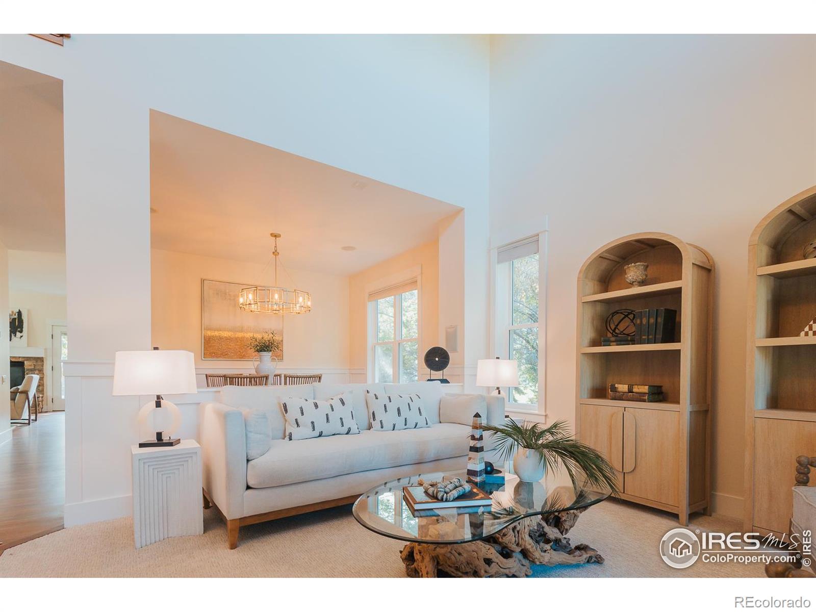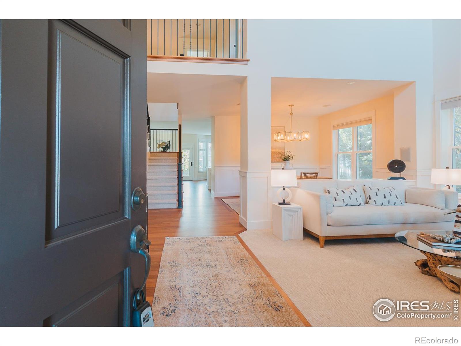 Impeccable total remodel of this 5-bedroom, 4-bath home in prestigious Fossil Lake Ranch. This lovely 4079 square foot home abutts public open space and is located on a corner lot at the end of a cul-de-sac, just steps from the neighborhood pool. Views of Colorado snowcapped mountains can be enjoyed from several areas in the home and the front porch. This meticulously maintained gem showcases pride of ownership and features all new finishes since the original build in 2001. Upgrades include all new windows (2018), new roof (2018), refinished Brazilian cherry wood floors (2025), level 5 drywall throughout, new interior paint (2025), basement remodel with 10' ceilings, 8' doors and a wet bar, all remodeled bathrooms and kitchen, new GE gas stove (2025), paneled refrigerator, new black honed granite counter tops, all new carpet (2025), and new lighting. Design features include cathedral ceilings, 8' doors, main floor office/study, eat-in kitchen, separate dining room, three living spaces including a main floor living area, main floor family room and basement rec room, a luxury 5-piece bath in the primary bedroom, an upstairs laundry room, and oversized 3-car garage. The outside oasis includes professional landscaping, a rock wall, flagstone patio and fire pit.