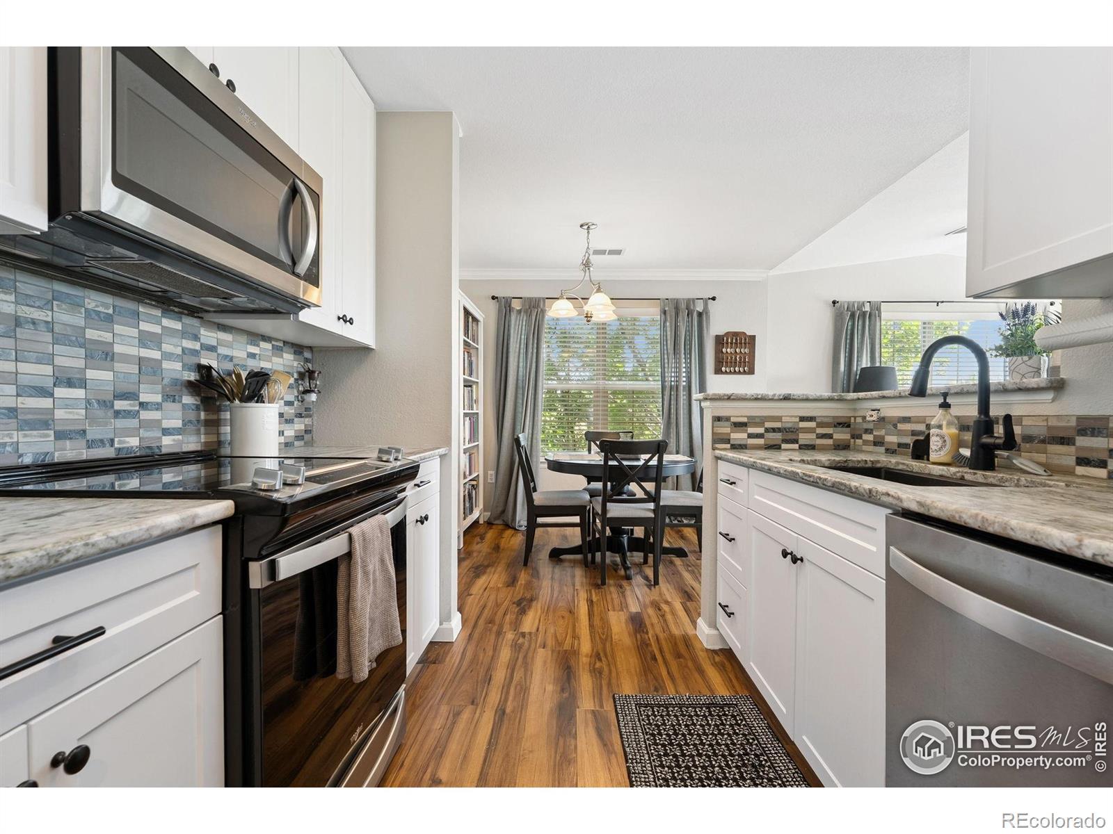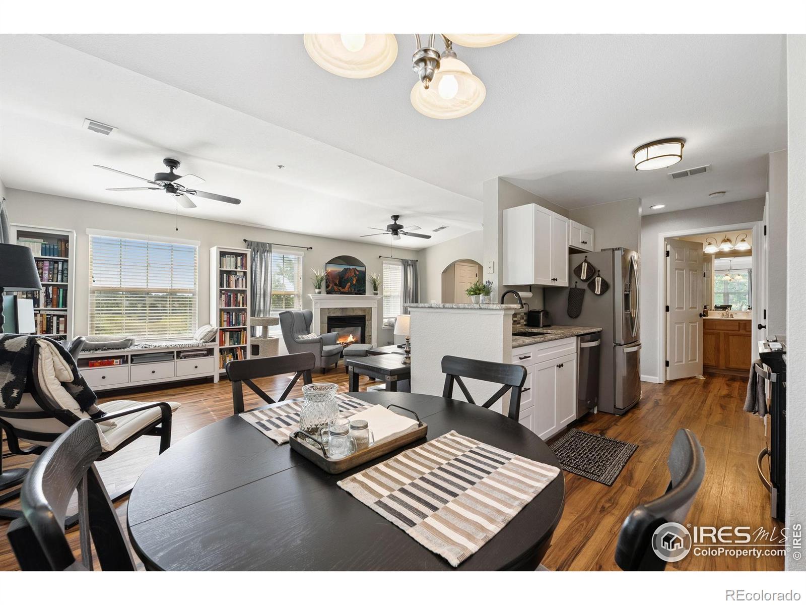 Location, Location, Location! Amazing top floor corner unit with a great location with large trees, open space right out your door plus tremendous views of Fossil Creek and Fossil Creek Park. This Exceptionally Light and Bright condo has 7 large windows in the Open floorplan with an inviting 22x12 living room which includes a cozy Fireplace and is adjacent to the dining area. The kitchen was fully remodeled in 2023 and includes a new Stainless steel Whirlpool appliance suite the washer & dryer also stay. The primary bedroom is large and also has fantastic views and faces the community garden and open space of Fossil Creek for privacy and quiet! The unit also includes a separate storage room 11x5 located on the landing adjacent to the condo. Updates in past several years: 2017-water heater; 2018-Luxury Vinyl Tile (except slate entry), 2019-new washer, added faux wood blinds, installed 3 new ceiling fans. Share in the community garden next to this building. Beautiful clubhouse w/fireplace, kitchen, pool, spa, workout room, available to rent for gatherings. HOA fee includes: Cable TV, Water/Sewer, Trash/Recycling, Landscaping/Snow removal, Exterior Maintenance/Hazard insurance, Common utilities and amenities. Great community adjacent to Fossil Creek Park! 1.7 mi paved trail connecting to 36 miles of trails, enjoy Portner Reservoir, prehistoric themed park, splashpad, ball fields, skate & dog parks!