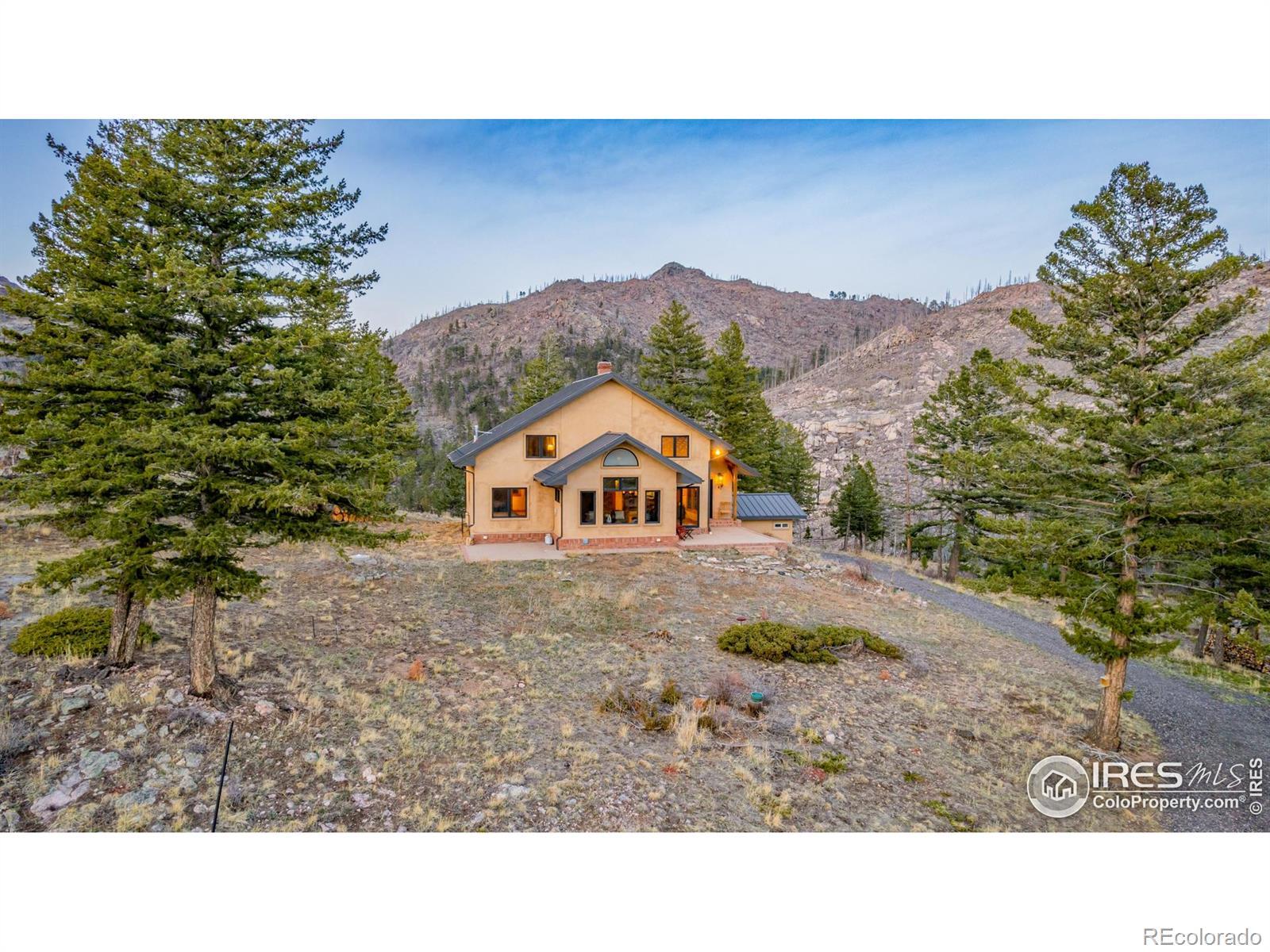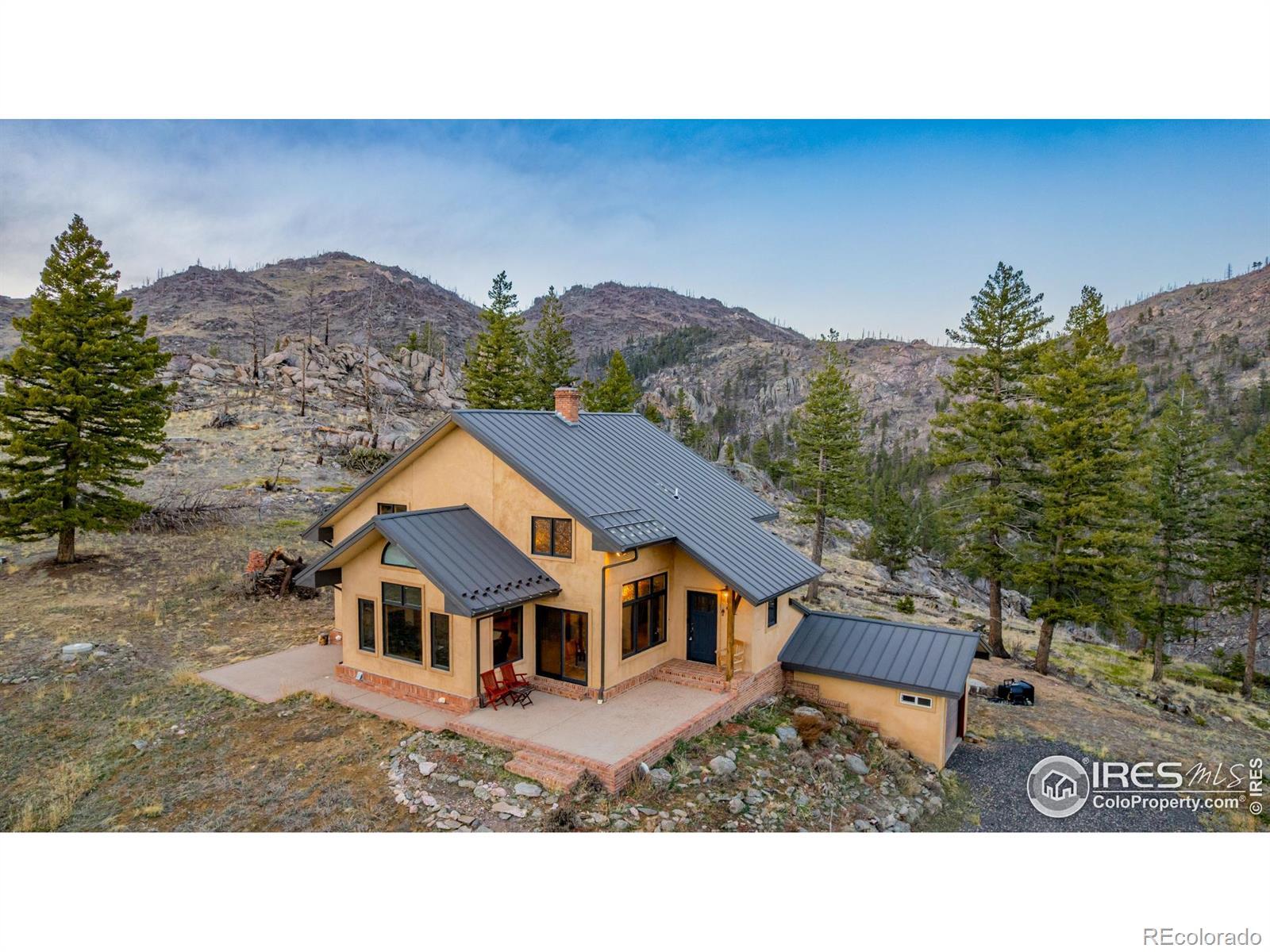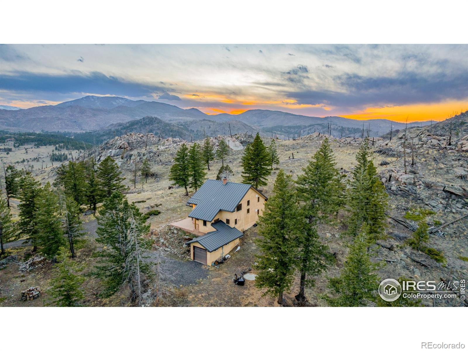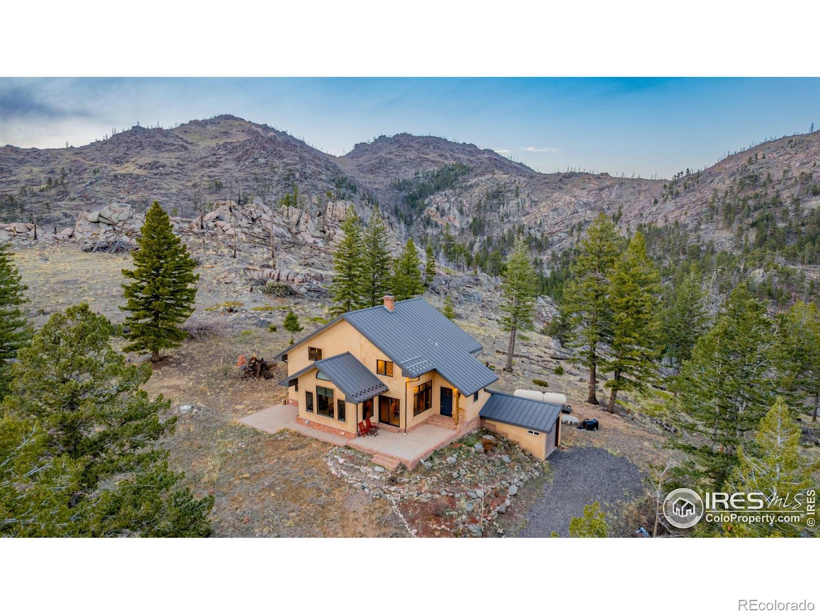 Nestled in the scenic beauty of Rist Canyon, this custom-built retreat blends rustic charm with modern efficiency. Perched on an elevated lot, it captures panoramic views of the mountains and valley. A private recycled-asphalt drive leads to this eco-conscious home with a durable metal roof, gutters, snow guards, and rain barrels for sustainable water use.Inside, the great room welcomes you with exposed beam ceilings, white oak floors, and double-pane windows. A European fireplace that doubles as a pizza oven creates the perfect spot for cozy nights or entertaining. The kitchen features solid wood cabinetry, energy-efficient appliances, and a brand-new refrigerator. The main-level primary suite offers a walk-in closet and full bath, while upstairs you'll find two bedrooms and a loft with soaring cathedral ceilings.The unfinished basement provides a wine cellar, workshop, and laundry area with room to expand. Stay connected with Starlink, and take advantage of the attached garage with a Level 2 EV charger. Surrounded by evergreens, aspens, and 500 newly planted trees, the property is a haven for nature lovers. Owl and bat houses invite local wildlife while preserving everyday tranquility. Just 35 minutes from Old Town Fort Collins, you'll have access to shops, dining, and recreation. Outdoor adventures abound-fish or raft the Poudre River, hunt on nearby public lands, or relax at Horsetooth Reservoir just 30 minutes away. For bigger escapes, Rocky Mountain National Park and Estes Park are just over an hour's drive, with world-class hiking, exploring, and seasonal elk bugling.With ski resorts and year-round activities within reach, this mountain home offers privacy, comfort, and adventure in one remarkable package.