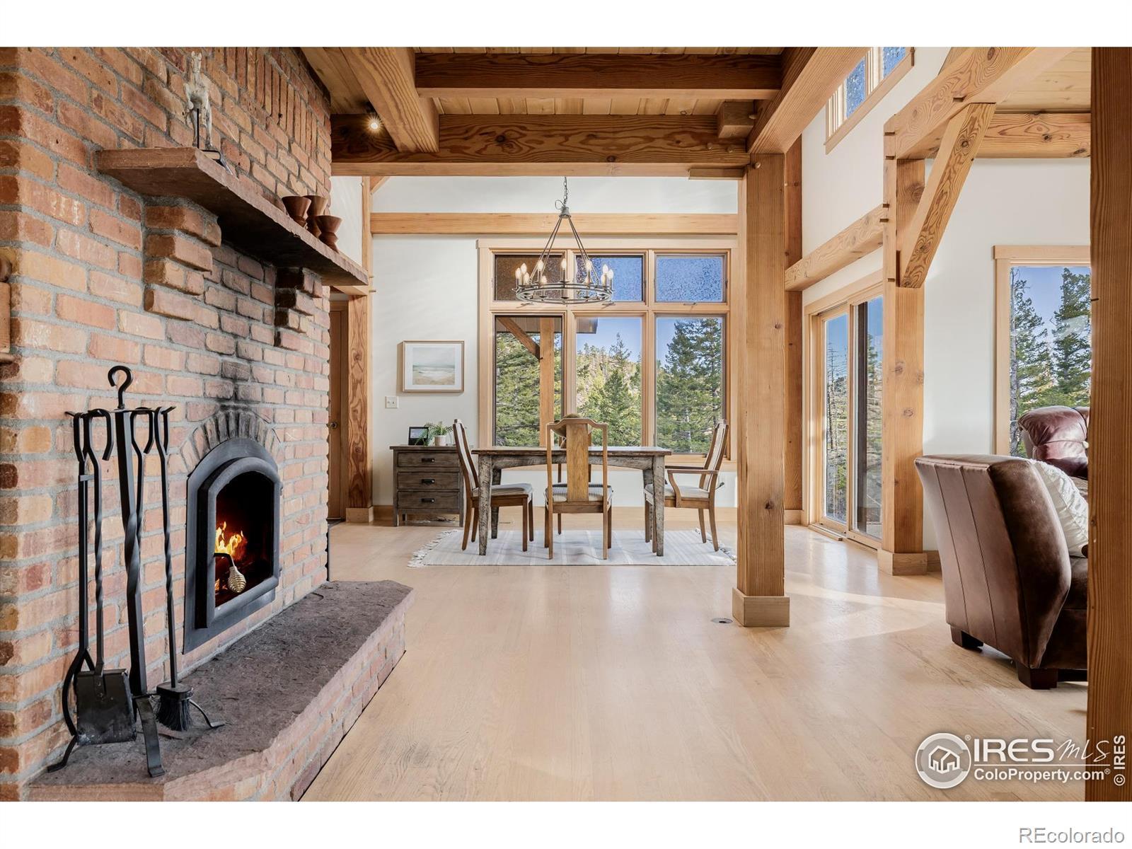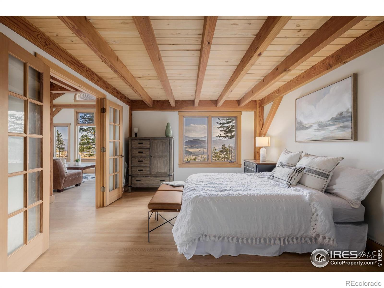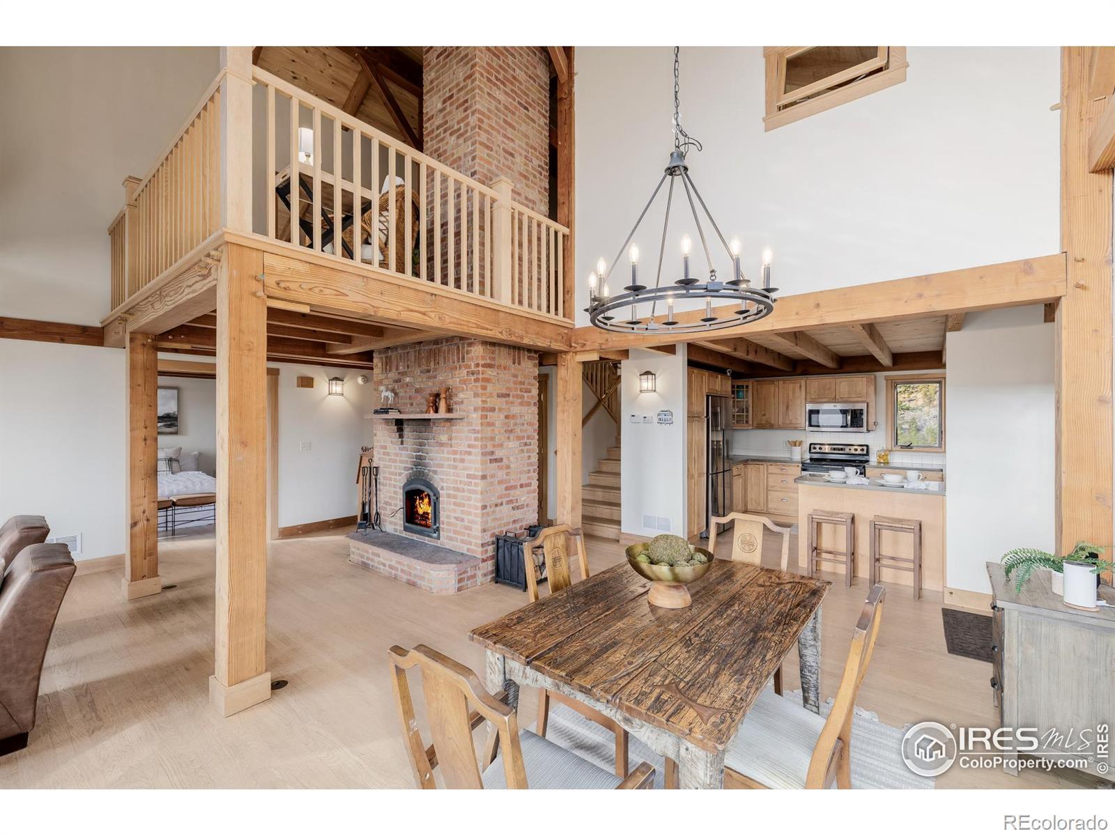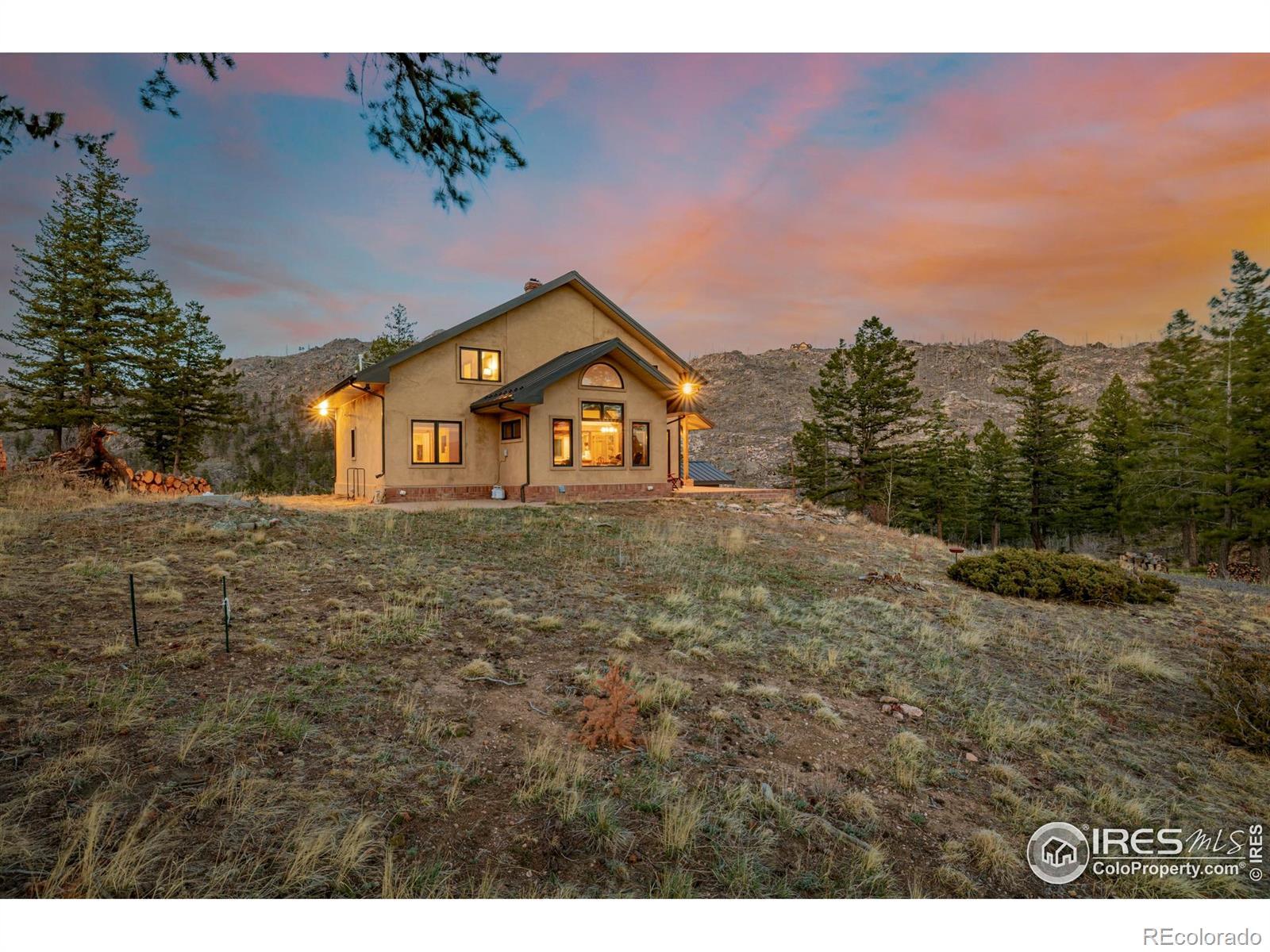 Nestled in the scenic beauty of Rist Canyon, this custom-built retreat blends rustic charm with modern efficiency. Perched on an elevated lot, it captures panoramic views of the mountains and valley. A private recycled-asphalt drive leads to this eco-conscious home with a durable metal roof, gutters, snow guards, and rain barrels for sustainable water use.Inside, the great room welcomes you with exposed beam ceilings, white oak floors, and double-pane windows. A European fireplace that doubles as a pizza oven creates the perfect spot for cozy nights or entertaining. The kitchen features solid wood cabinetry, energy-efficient appliances, and a brand-new refrigerator. The main-level primary suite offers a walk-in closet and full bath, while upstairs you'll find two bedrooms and a loft with soaring cathedral ceilings.The unfinished basement provides a wine cellar, workshop, and laundry area with room to expand. Stay connected with Starlink, and take advantage of the attached garage with a Level 2 EV charger. Surrounded by evergreens, aspens, and 500 newly planted trees, the property is a haven for nature lovers. Owl and bat houses invite local wildlife while preserving everyday tranquility. Just 35 minutes from Old Town Fort Collins, you'll have access to shops, dining, and recreation. Outdoor adventures abound-fish or raft the Poudre River, hunt on nearby public lands, or relax at Horsetooth Reservoir just 30 minutes away. For bigger escapes, Rocky Mountain National Park and Estes Park are just over an hour's drive, with world-class hiking, exploring, and seasonal elk bugling.With ski resorts and year-round activities within reach, this mountain home offers privacy, comfort, and adventure in one remarkable package.