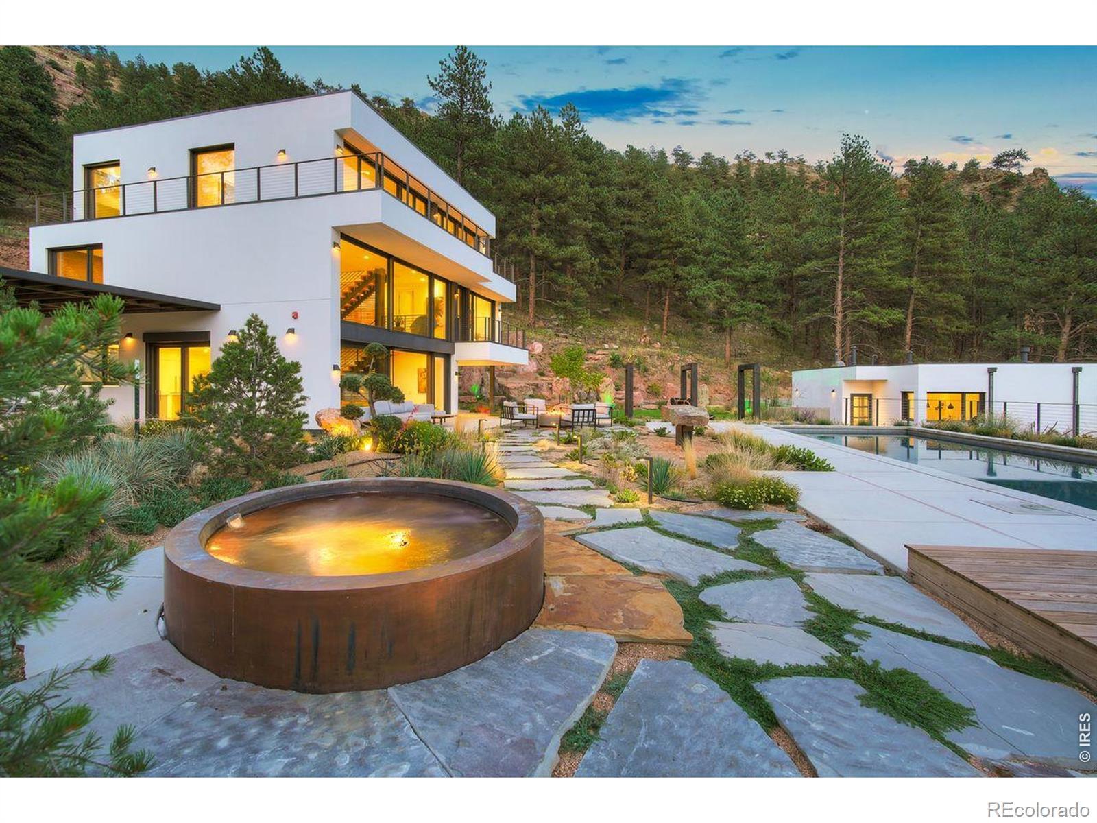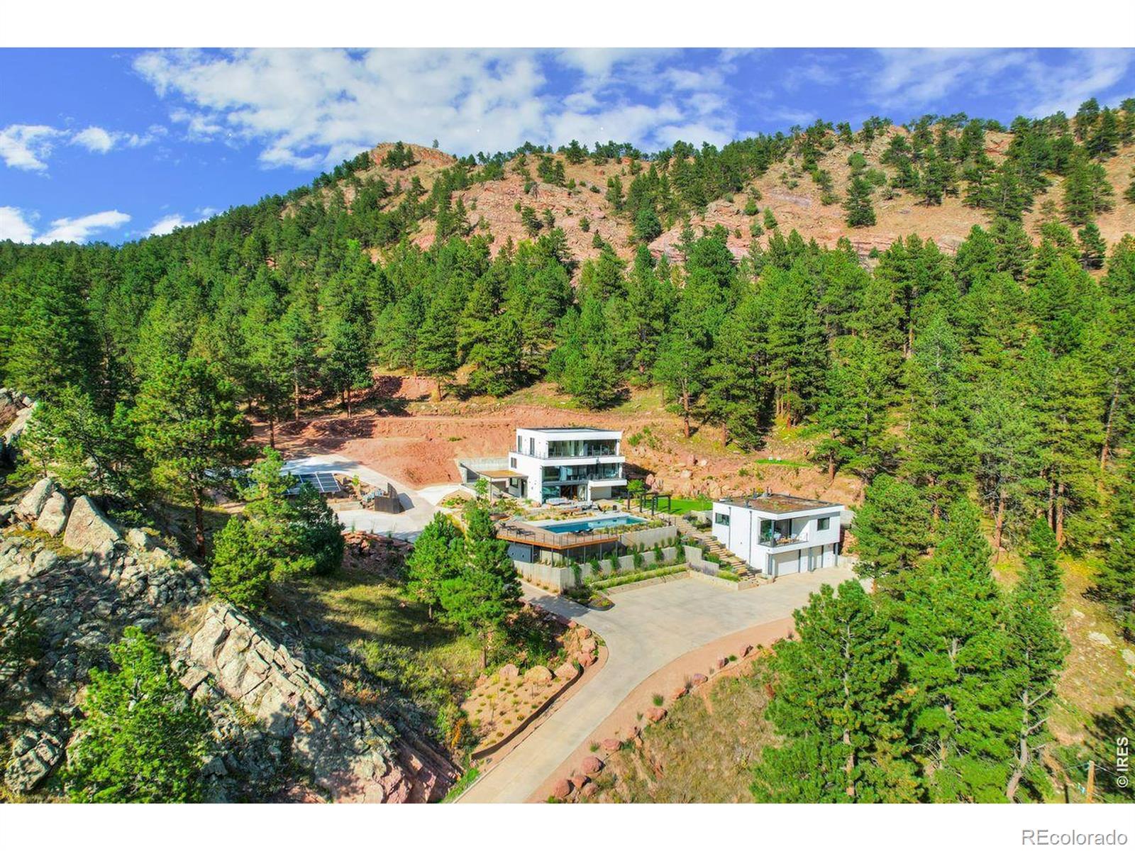 Welcome to Lion Point-an ultra-luxury mountain estate where contemporary architecture, total privacy, and forward-thinking sustainability meet, just ten minutes from Pearl Street and the soon-to-arrive Sundance Film Festival. Set on almost 15 pristine acres with dramatic rock outcroppings, ancient forest, and a 1,000-year-old Ponderosa Pine, this property offers sweeping south-facing views and unparalleled serenity.Built with German Passivhaus principles, the home delivers exceptional comfort and efficiency through insulated wall systems, triple-pane windows, airtight construction, and a 10 kW solar array. The main residence features 6 bedrooms and 4.5 baths, anchored by a chef's kitchen with Thermador appliances, custom lacquer cabinetry, and Yule marble. The great room showcases soaring ceilings and floor-to-ceiling glass framing cinematic mountain vistas.A private cinema room enhances entertainment, while the primary suite includes a spa-inspired bath, walk-in closet, dedicated office, and radiant morning light. Healthy living materials-low-VOC finishes and formaldehyde-free insulation-pair with Savant smart-home technology for effortless control of lighting, climate, security, and audio.Outdoor amenities include a pristine emerald pool, custom copper hot tub, steam sauna, full outdoor kitchen, ambient lighting, and landscaped pathways with automated irrigation. A beautifully finished ADU provides an additional living space. Radiant heating, fire-resistant exterior materials, and expansion potential complete this one-of-a-kind estate.Whether a primary or secondary home, Lion Point is a great way to invest in the future growth of Boulder as Sundance and other events light the way.Lion Point is a private sanctuary of design, nature, and innovation-perfectly positioned above Boulder's rising cultural moment.