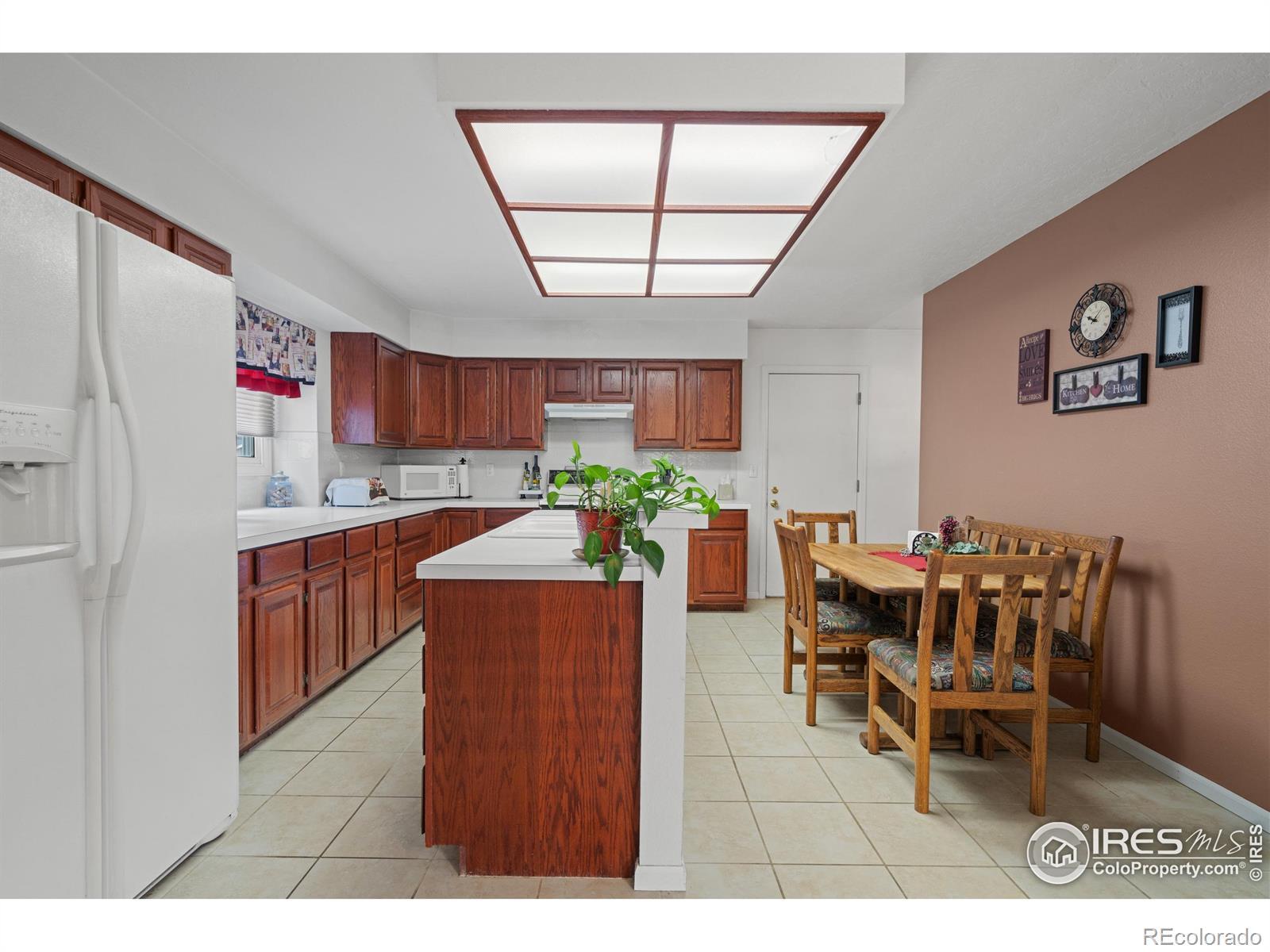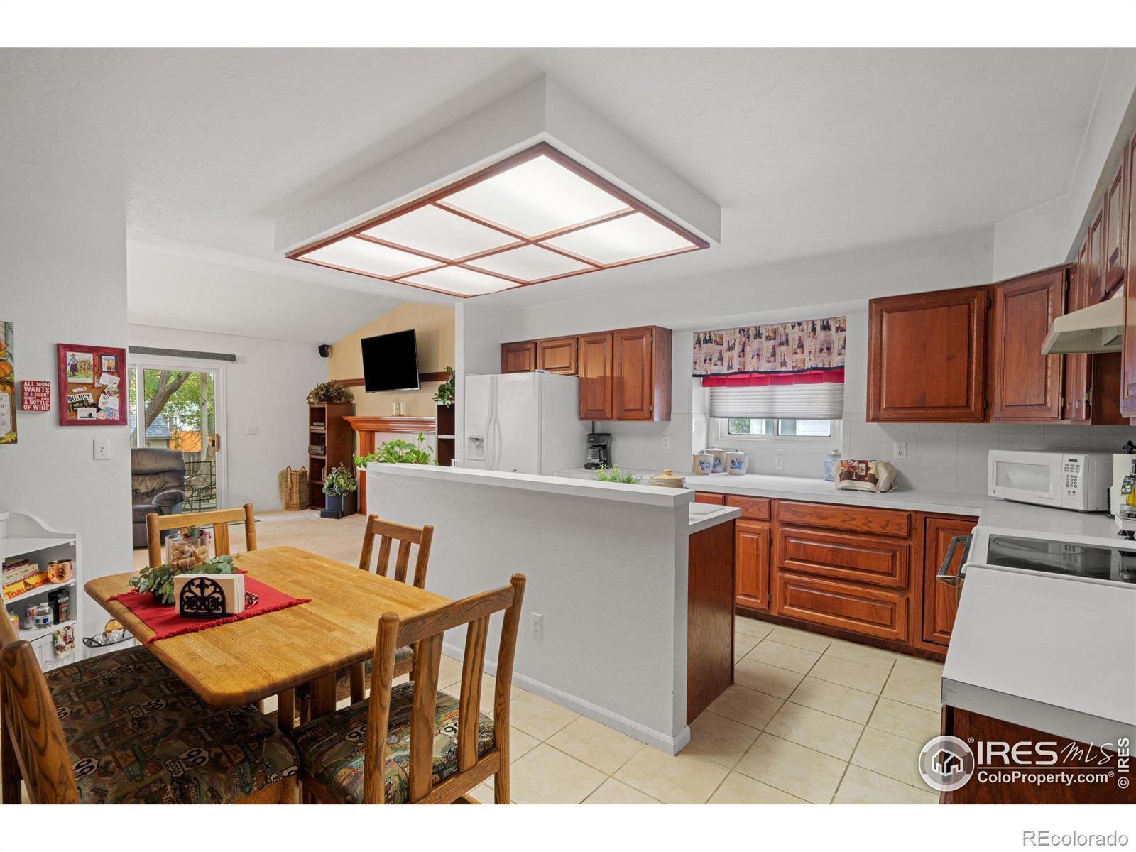 Welcome to this beautiful brick ranch-style home offering space, comfort & potential. Featuring 4 bedrooms, 3 bathrooms & 3,320 total sq ft (1,660 on the main level), this home provides room for everyone with a layout designed for everyday living & entertaining. The kitchen showcases cherrywood cabinets, a large island, an eat-in dining area & a separate formal dining room-ideal for gatherings or quiet meals. Natural light fills the home, highlighting the open design & generous storage throughout. The inviting living room features vaulted ceilings & a cozy fireplace, creating the perfect space to relax. A large finished basement offers its own kitchenette, perfect for guests, multi-generational living, or extra recreation space, plus bonus storage areas. Step outside to enjoy a spacious, fully fenced backyard complete with a deck, mature trees, & a modern storage shed-all backing to the scenic Larson Trail, offering peaceful views of nature & added privacy. Located in a desirable west Greeley neighborhood, this home combines comfort, functionality, & timeless charm.Priced to sell-a little TLC will bring instant equity and make this home truly shine!