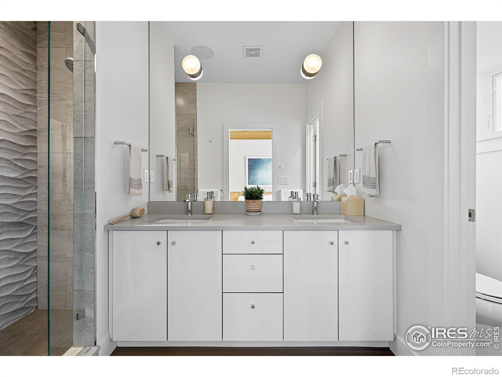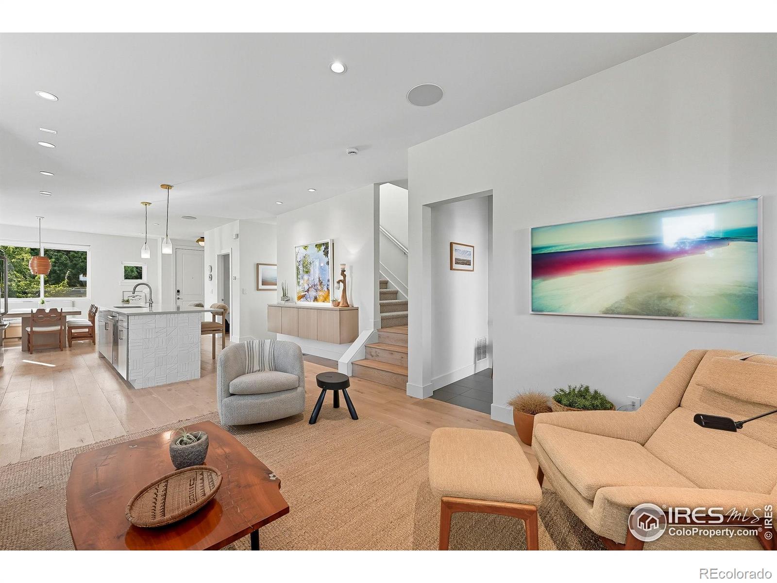 Welcome to 4740 8th street, where professional design, layout and finishes come together seamlessly for elevated living. Owned by top designers as their primary residence, the vibe is fun and refined both indoors and out while offering immediate access to some of the most beautiful natural surroundings in Boulder. Nearly everything has been thoughtfully updated, including hand-troweled walls for smooth texture, dim-to-warm LED lighting and minimalist built-ins that showcase art and objects with beauty and functionality. Sonos sounds, foothills views and abundant sunlight flood the space and won't harm your best pieces as the windows are UV and custom-shade protected. American clay, Calacatta marble and wide-plank white oak finishes add to the overall sense of grounded well-being throughout. The main level is ideal for entertaining with a handmade dining table and banquette, front porch, and covered deck in the backyard allowing full enjoyment of the Colorado weather year-round. The well-appointed primary suite and two additional bedrooms upstairs include a washer/dryer and murphy bed for versatility, while downstairs features a 4K video projection system, full en-suite bedroom and kitchenette for potential use as a separate living space. At the end of the street to the South bike paths take you to downtown Boulder with stops at Wonderland Lake and Sanitas Valley or throughout Boulder County. Get your adventure on a few blocks North at the Skyline Traverse toward Lyons or cruise around Eagle trail and Boulder Reservoir. Moxie Bakery, Amante Coffee, and Bellota's margaritas are within walking distance, as is the First Fridays Artwalk at nearby Emerald City. Lucky's Market grocery, shops and restaurants are just a few minute drive, with downtown a few more making this the ideal location for your next chapter here in beautiful Boulder, Colorado!