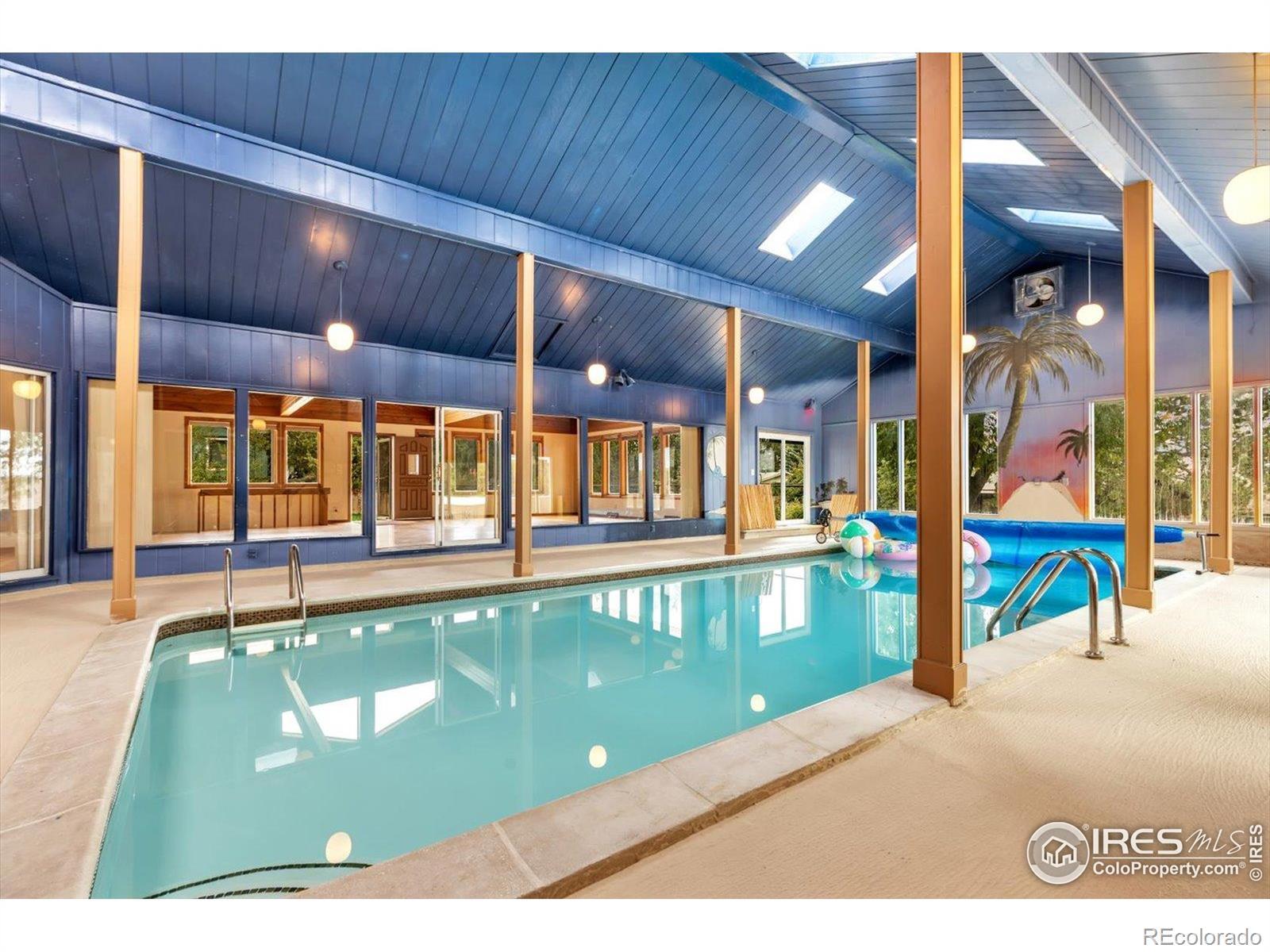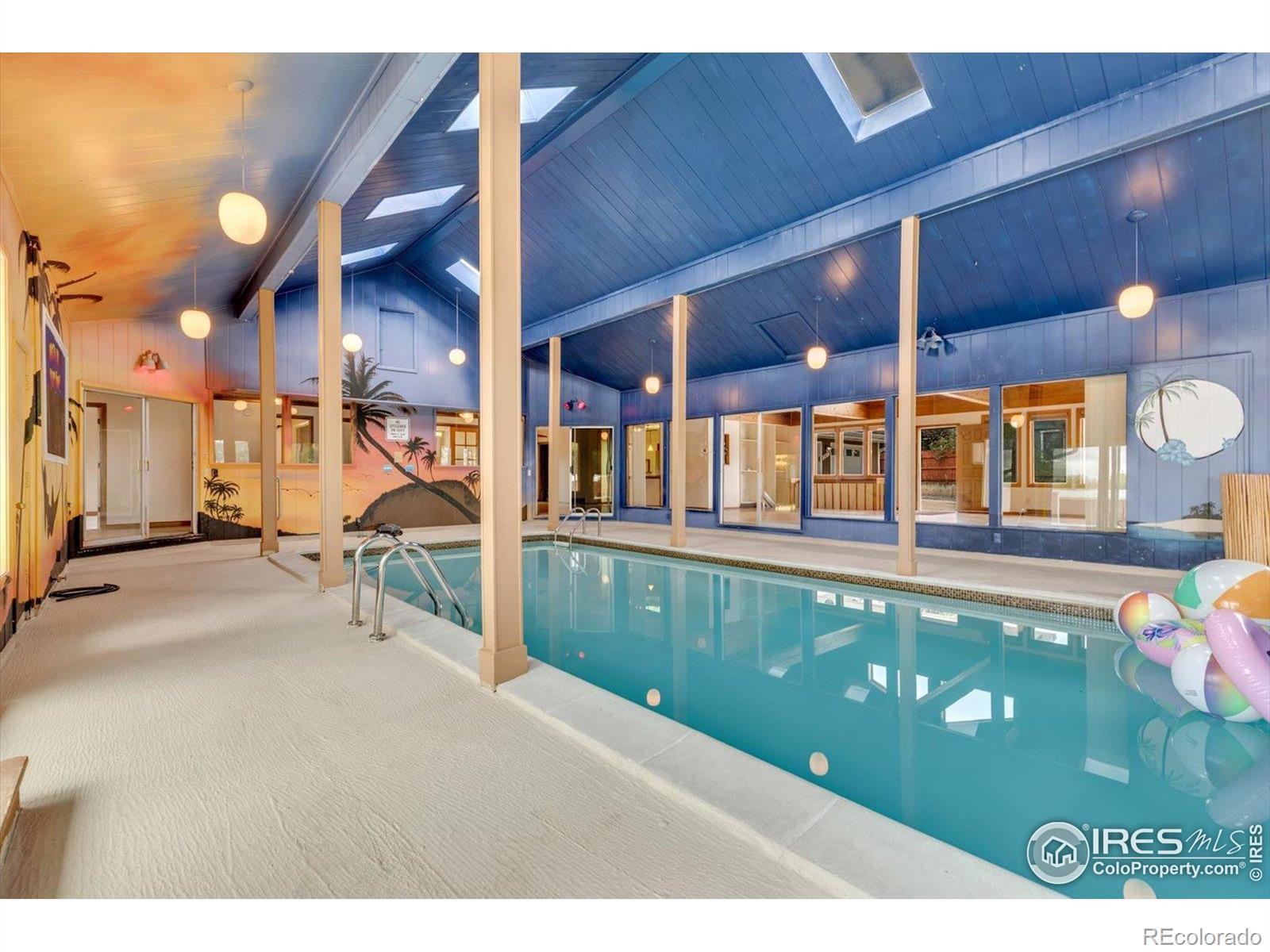 A one-of-a-kind opportunity to own this Sunset gem! Nestled between Sunset Golf Course and Open Space/Trail systems, this sprawling 5 bedroom, 4 bathroom-home on nearly .6 acres and NO HOA, features five garage spaces, RV Parking, panoramic views and an indoor pool! This home was built for easy living and epic entertaining! Step inside to vaulted ceilings, sun-splashed spaces & a breezy indoor-outdoor flow that makes everyday feel like a vacation. The main living area opens to your very own pool, walk-out patio for BBQ's & starlit evenings with friends. The basement has a potential apartment. Enjoy sought-after NextLight service! Got toys? You'll enjoy the 5-car garage with 35' RV bay. All this just a short stroll to downtown Longmont!