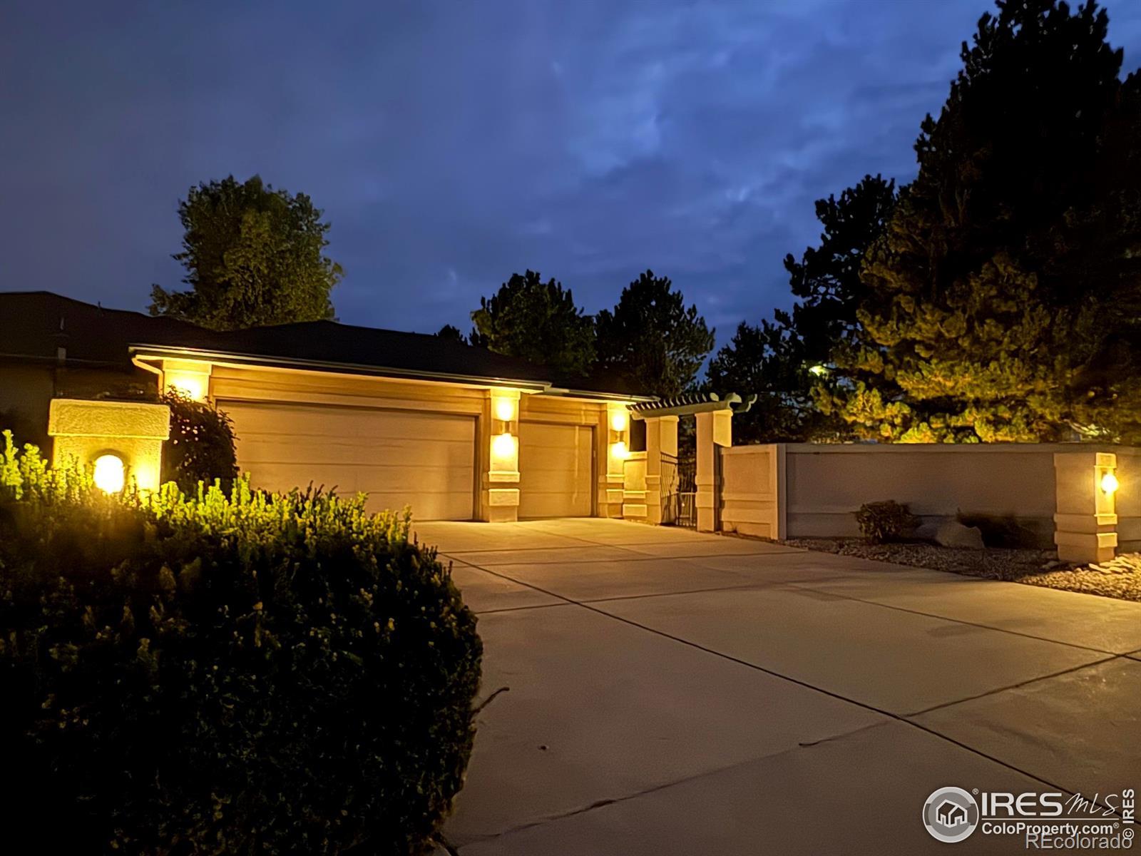 Experience luxury main floor living, with three bedrooms, an office w/ French doors, & laundry on one level. The home distinguishes itself with a modern flare, while at the same time exuding comfort and function. Located in the coveted Fairway West community (near The Olde Course golf course), the .31 acre lot will impress with a backyard that doubles as a wooded escape, ready for a meditation session, beautifully landscaped w/ a bubbling Zen pond, partially covered patio, built-in fire pit, and solid stucco privacy wall spanning the entire perimeter. The stucco exterior will draw you inside to an inviting entrance, living room w/ a large wall of windows & sliding doors leading to your backyard oasis, and a 2-sided fireplace. The other side of the fireplace leads you to the dining room & kitchen which also opens up to the backyard sanctuary with large windows and sliding doors. Winding down, you head to the extended primary bedroom to release your day in a lounge chair facing the oversized corner windows, opening yourself fully to the beauty of the backyard space. Once inside, you will absorb the awesome vibe and know this is your new home.