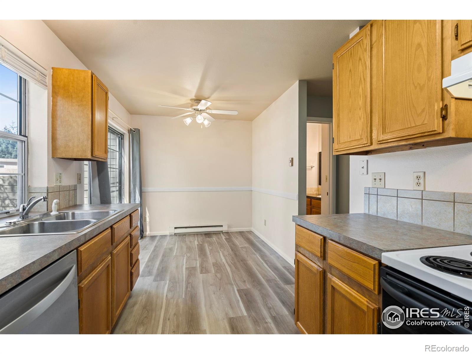Mid-Town convenience meets comfortable living in this 3 bed, 3 bath, 3-level condo just west of Rocky Mountain High School. Fresh and move-in ready with newer interior paint, LVP flooring, and carpet, plus a newer refrigerator, newer water heater, and a brand-new dishwasher. An efficient layout centers around a spacious living room with a cozy fireplace, while the finished basement adds a second living area, a private bedroom, a bathroom, and a full-size washer/dryer. Enjoy Colorado evenings on not one but two covered decks, and store gear with ease in the oversized 1-car garage-room for a car, bikes, and extra storage. The HOA delivers the amenities people love: pet-friendly living, pool, tennis courts, clubhouse, and serene, park-like grounds with mature shade trees and green spaces throughout. The location is stellar-steps to the bus stop or hop on the Spring Creek bike/walk trail to CSU or around town. A huge park system and RMHS are nearby, with groceries, restaurants, and foothills recreation just minutes away.