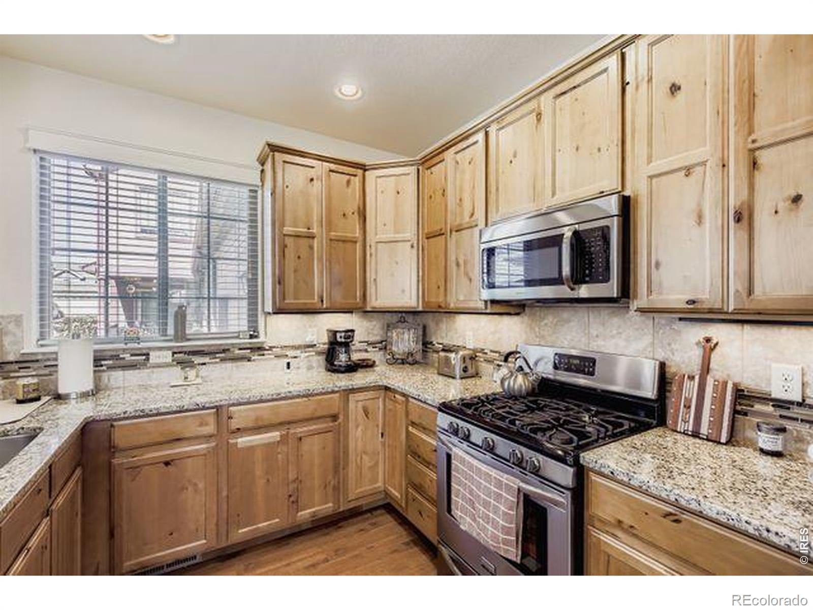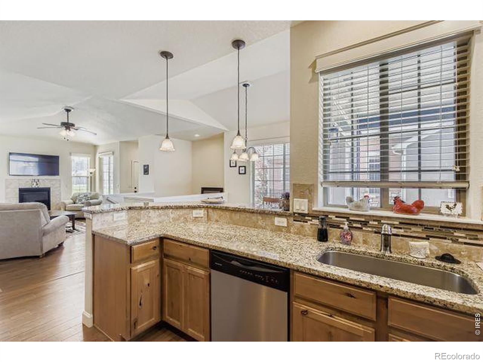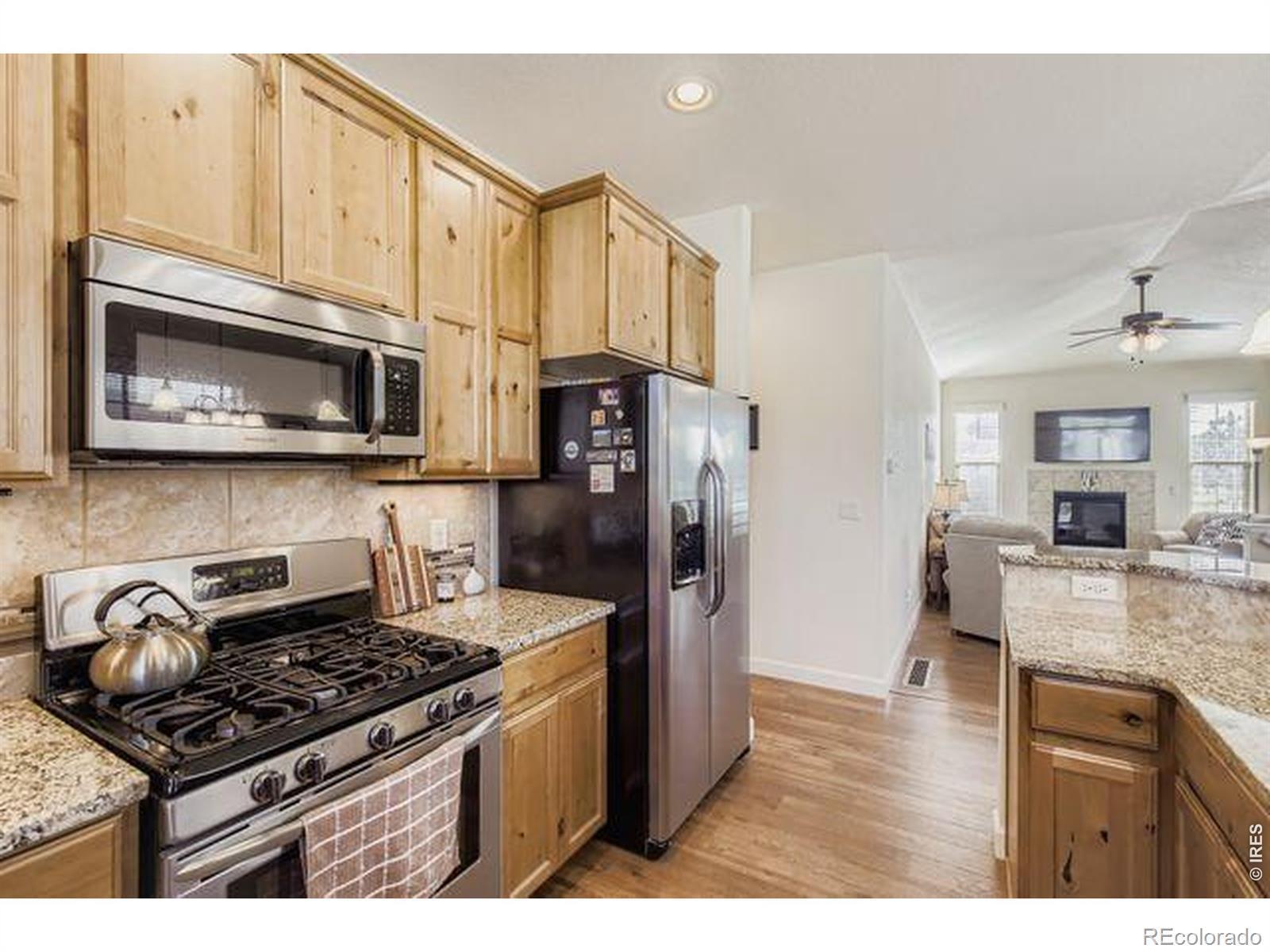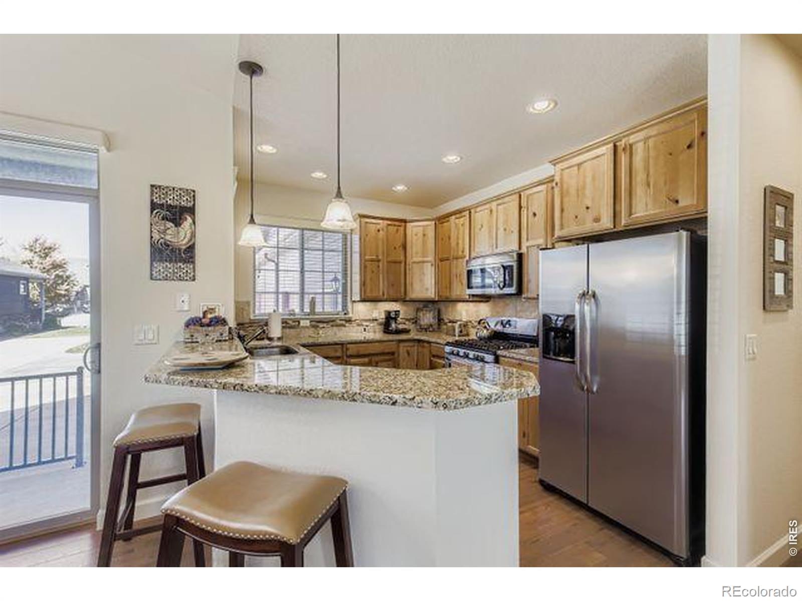 Price just reduced! Beautiful patio-style townhome in like new condition! Immaculately maintained by its original owners, this ranch plan offers high end finishes throughout and an open, comfortable layout. The HOA covers hazard insurance, pool, clubhouse, community open space maintenance, lawncare, and snow removal! This is a perfect low maintenance lock-and-leave home! The main floor features luxury vinyl wood plank flooring, granite countertops in the kitchen and bathrooms, tile flooring in all bathrooms & laundry, and a cozy gas fireplace in the living room. The kitchen includes 42 inch knotty alder cabinetry, stainless steel appliances, under cabinet lighting, a large breakfast bar, and a 5-burner gas range. The partially finished basement provides a builder finished guest bedroom and a Jack -and-Jill bathroom, ideal for visitors and potential future expansion. Additional features include a covered back patio, a 2-car attached garage w/ finished & textured walls, and a neighborhood pool and clubhouse (just steps away)! Conveniently located near shopping, dining and all of Loveland's newest developments and amenities! This home is truly a must see!