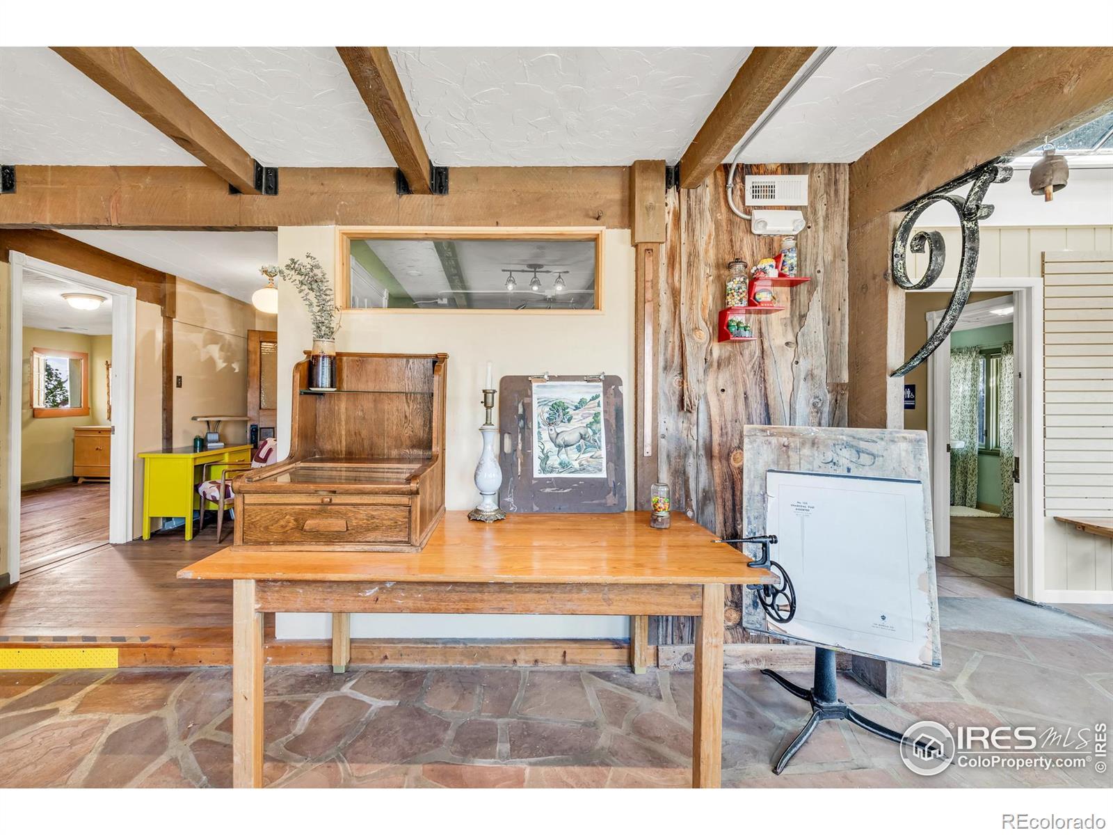 Showcasing a rare balance of charm, flexibility and opportunity, this distinctive live/work property is perfectly positioned in the heart of Old Town Lyons. Fully rebuilt from the roof rafters to the floor joists, it combines historic character with modern comfort across two thoughtfully designed levels. The street-facing portion provides 1,043 square feet of retail or office space - ideal for a boutique, gallery or studio - while the rear residence offers 872 square feet of private living space, complete with a remodeled kitchen, bath, laundry and outdoor patio. A fenced decorative garden with additional work studio space, a covered seating area and shed adds a peaceful retreat for relaxation or creativity. With commercial downtown zoning, off-street parking, updated systems throughout and proximity to the shops, eateries and scenic byways leading to Estes Park and Rocky Mountain National Park, this versatile property embodies small-town charm and entrepreneurial spirit in one of Colorado's most beloved destinations.