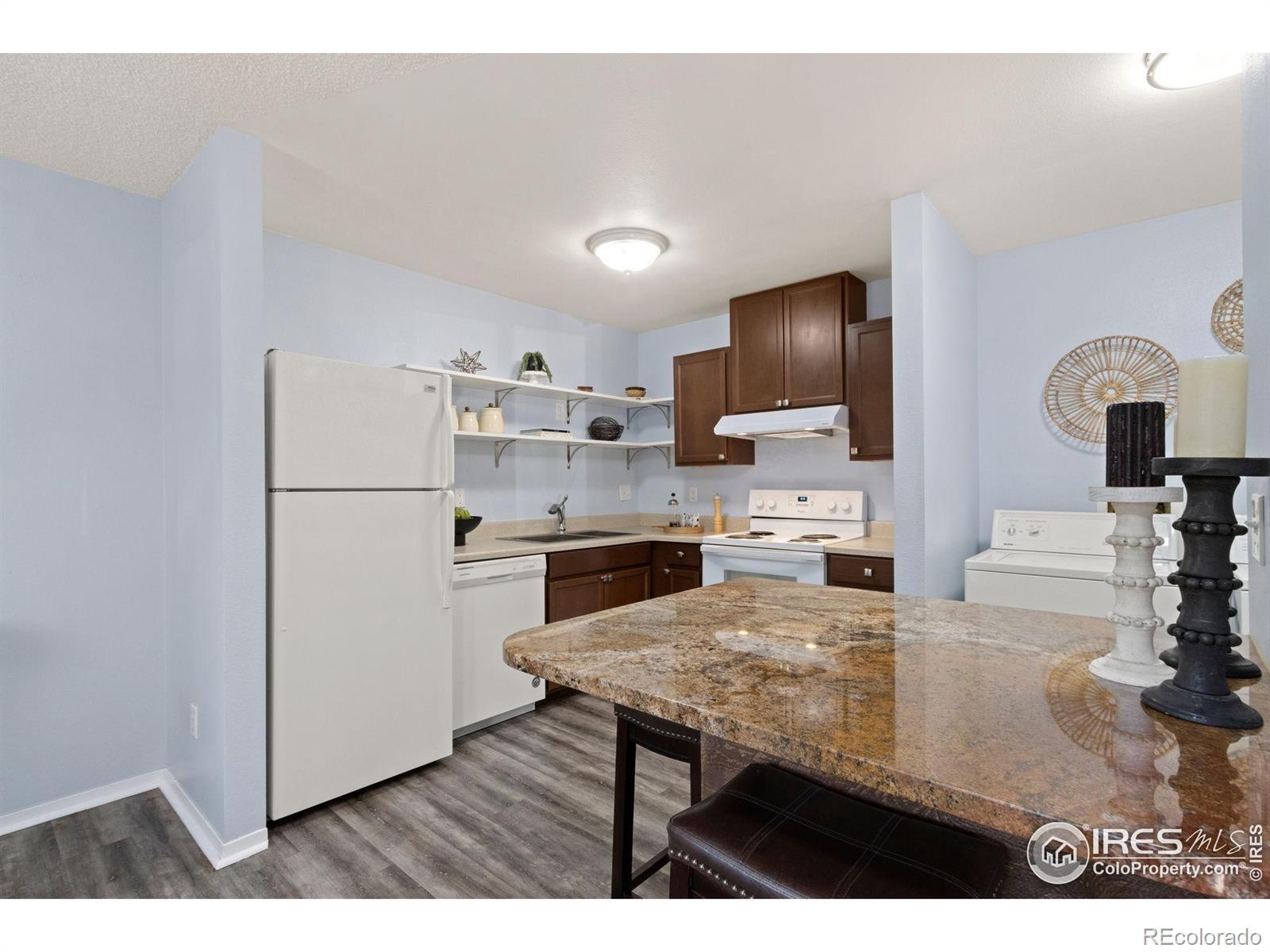 Smart Living Across from CSU Campus! Discover this ground-level 2-bedroom, 2-bath Fort Collins condo at 710 City Park Ave #C310, offering direct outdoor access, two private patios, and an efficient layout ideal for everyday living or long-term investment. The interior features a spacious living room with wood-burning fireplace, dedicated dining area, and a kitchen with peninsula seating, abundant cabinet storage, electric range/oven, refrigerator, dishwasher, and in-unit laundry with full-size washer and dryer. Durable LVP flooring runs throughout, and the updated bathroom vanities and lighting provide clean, modern finishes. The primary bedroom with mirrored closet doors sits opposite a second bedroom that works well for sleeping space, office use, or flexible layout needs. This condo includes a covered front porch plus a sheltered rear patio-a standout feature for ground-level units-offering options for outdoor dining, gear storage, or container gardening. Exterior-entry building access minimizes shared indoor space while maintaining proximity to parking and landscaped green areas. This location delivers strong lifestyle and commuter convenience: 0.2 mi to City Park & Sheldon Lake, 0.5 mi to Colorado State University, 0.6 mi to Mugs Coffee Lounge, 0.7 mi to Whole Foods, 0.8 mi to King Soopers, and roughly 1 mile to CSU Canvas Stadium. Multiple bus routes run along W Lake St and City Park Ave, connecting to campus, downtown Fort Collins, and surrounding commercial corridors. This unit combines ground-floor accessibility, private outdoor living, in-unit laundry, functional two-bedroom configuration, and a high-amenity central Fort Collins location-making it well-positioned for both owner-occupants and investors seeking proximity to CSU, recreation, transit, shopping, and dining. Schedule your virtual tour or private showing today!