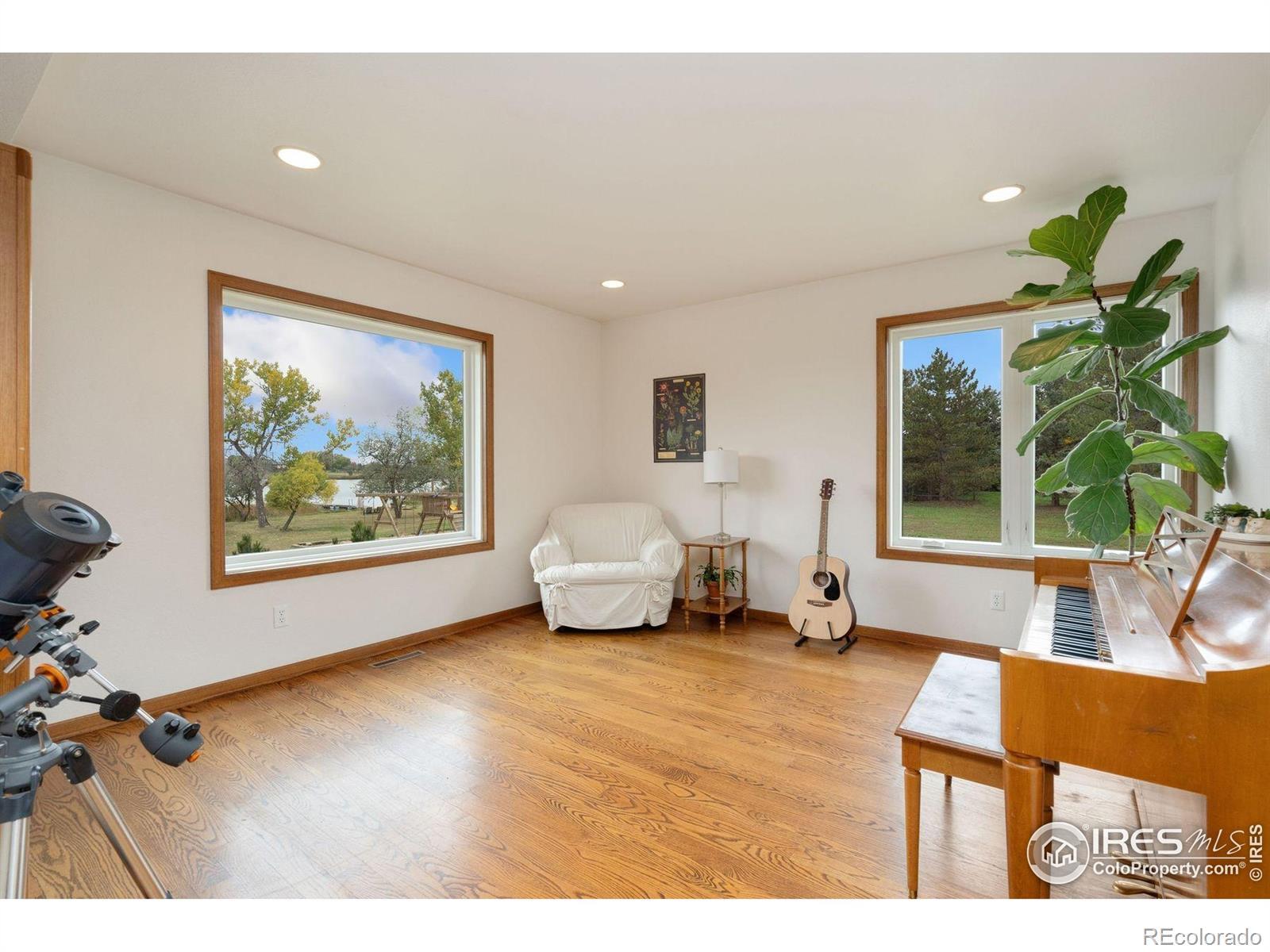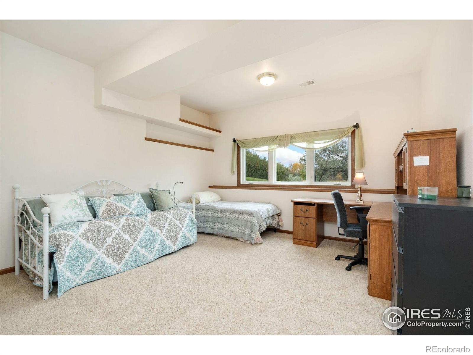 Discover an extraordinary waterfront estate where luxury meets nature on 3.34 private acres of Colorado shoreline. This expansive 8,975-square-foot residence commands one of Fort Collins' most serene settings, offering 9 bedrooms and 7 bathrooms thoughtfully distributed throughout its sophisticated floor plan. The main home welcomes you with an open, sun-drenched kitchen featuring stainless steel appliances, abundant cabinet storage, and a walk-in pantry, while multiple living areas flow seamlessly into a private primary suite complete with west-facing deck, dual walk-in closets, and panoramic views that capture Colorado's natural grandeur. A dedicated home office provides the perfect workspace, while the walk-out basement opens directly to your private oasis-where morning coffee on one of several patios and decks becomes a daily ritual against a backdrop of mountain vistas and natural wetland habitat teeming with wildlife. Step outside to your personal shoreline with private dock access, ideal for launching kayaks, paddleboards, or simply watching the sun set over the water. The fenced garden plot invites cultivation, while the massive workshop-sized for vehicles, boats, equipment, or creative projects-appeals to collectors and hobbyists alike. Host gatherings under open Colorado skies, explore your own nature preserve, or simply retreat to this peaceful sanctuary where space and sophistication converge. The property's remarkable flexibility includes an impressive 3,500-square-foot attached addition built in 2014 with luxury finishes throughout-featuring a full kitchen, primary suite, and finished daylight basement with guest bedroom-that can function independently or integrate seamlessly with the main residence, making it ideal for multi-generational living, guest quarters, rental income, or extended family visits.