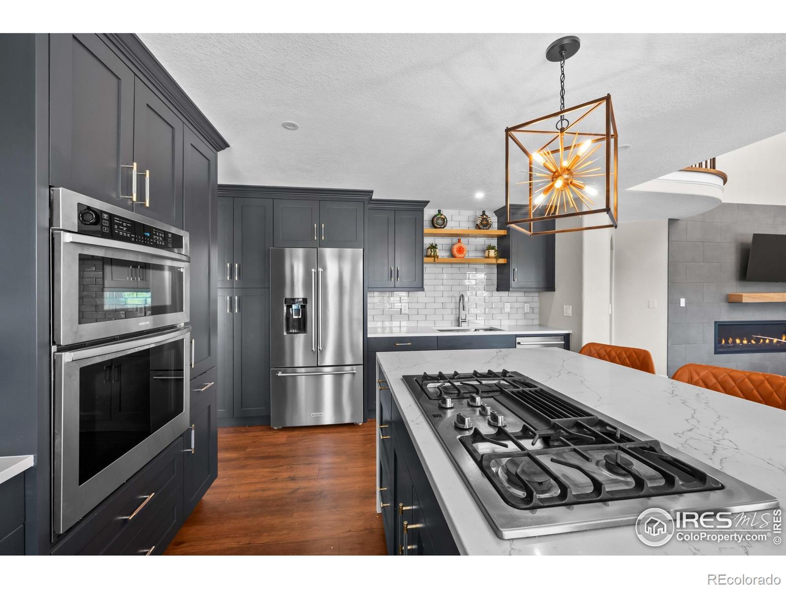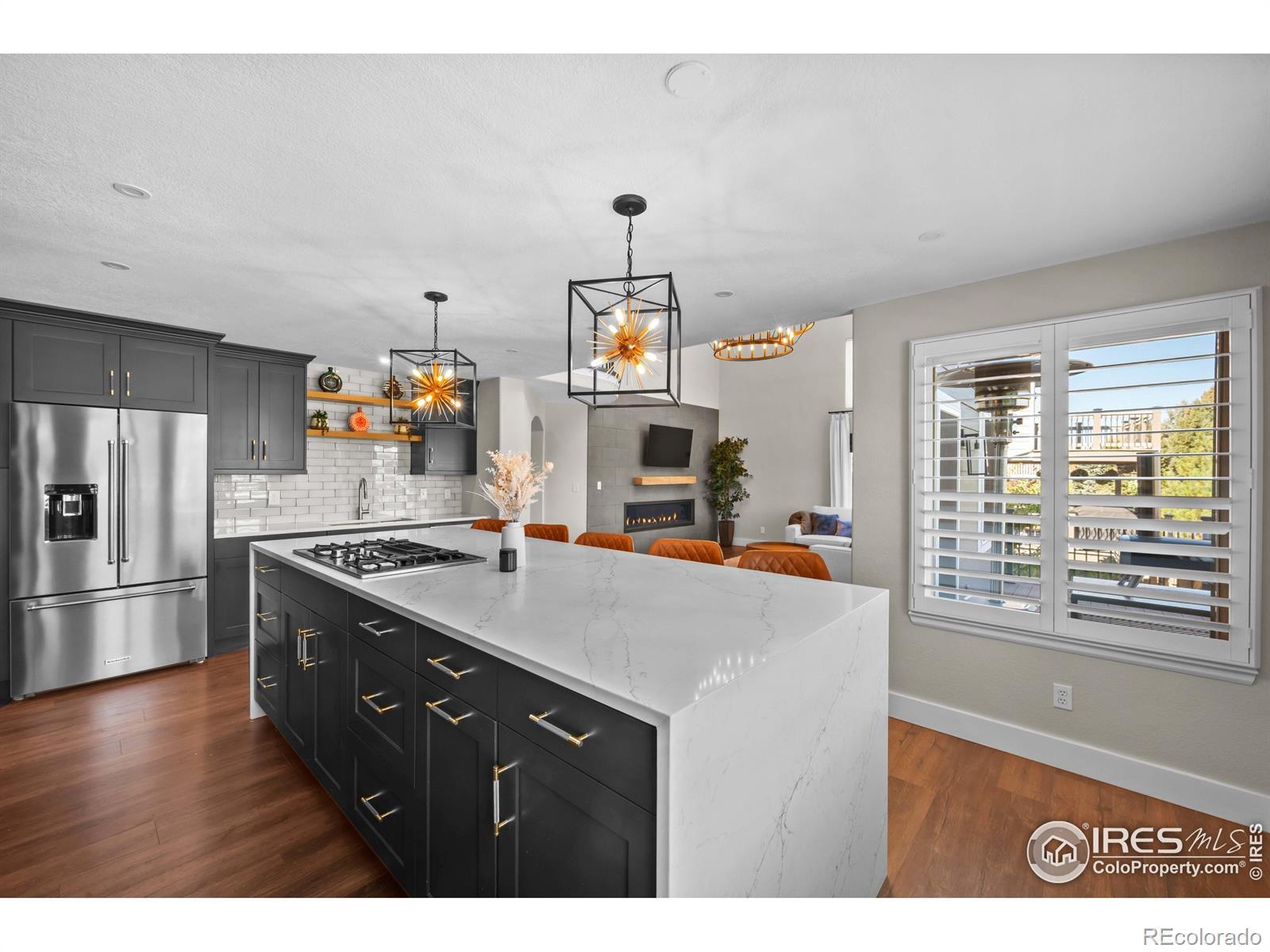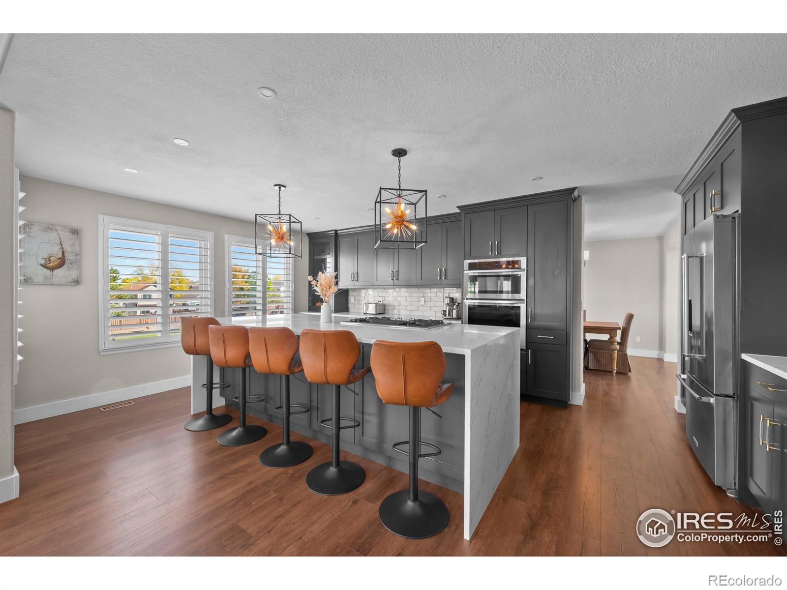 Welcome to your dream home in Highlands Ranch! Step into this turn-key gem featuring 5 spacious bedrooms, 4 bathrooms, and over 4,000 sq ft of living space. From the moment you enter, you'll be captivated by the sleek, high-end finishes, including luxury vinyl wood flooring, modern light fixtures, a crisp color palette, and a two-story family room that floods the space with natural light. Every sqft of this home has been updated to perfection! Chef's Kitchen: The gourmet kitchen is a showstopper, boasting blue-gray shaker cabinetry, quartz countertops, a center island with waterfall edge, double ovens, gas cooktop, and stylish subway tile backsplash-ideal for entertaining or everyday luxury. Spacious Bedrooms & Thoughtful Layout Upstairs: the primary suite offers a serene retreat with generous dimensions, while three additional bedrooms provide ample space for family or guests. Fully finished walkout basement with wet bar for entertaining. 4 year home warranty is transferable to buyer! Outdoor Enjoyment & Prime Location: Situated on a 7,884 sq ft lot, the property offers plenty of outdoor space for relaxation or play. There's is a lovely deck with mountain views and modern spiral staircase leading to your patio below. Located in the desirable Eastridge neighborhood, you're minutes from parks, top-rated schools, shopping, and dining. Bonus Features: Enjoy a 3-car garage, access to community amenities like pools, fitness center, and clubhouse included with your HOA.