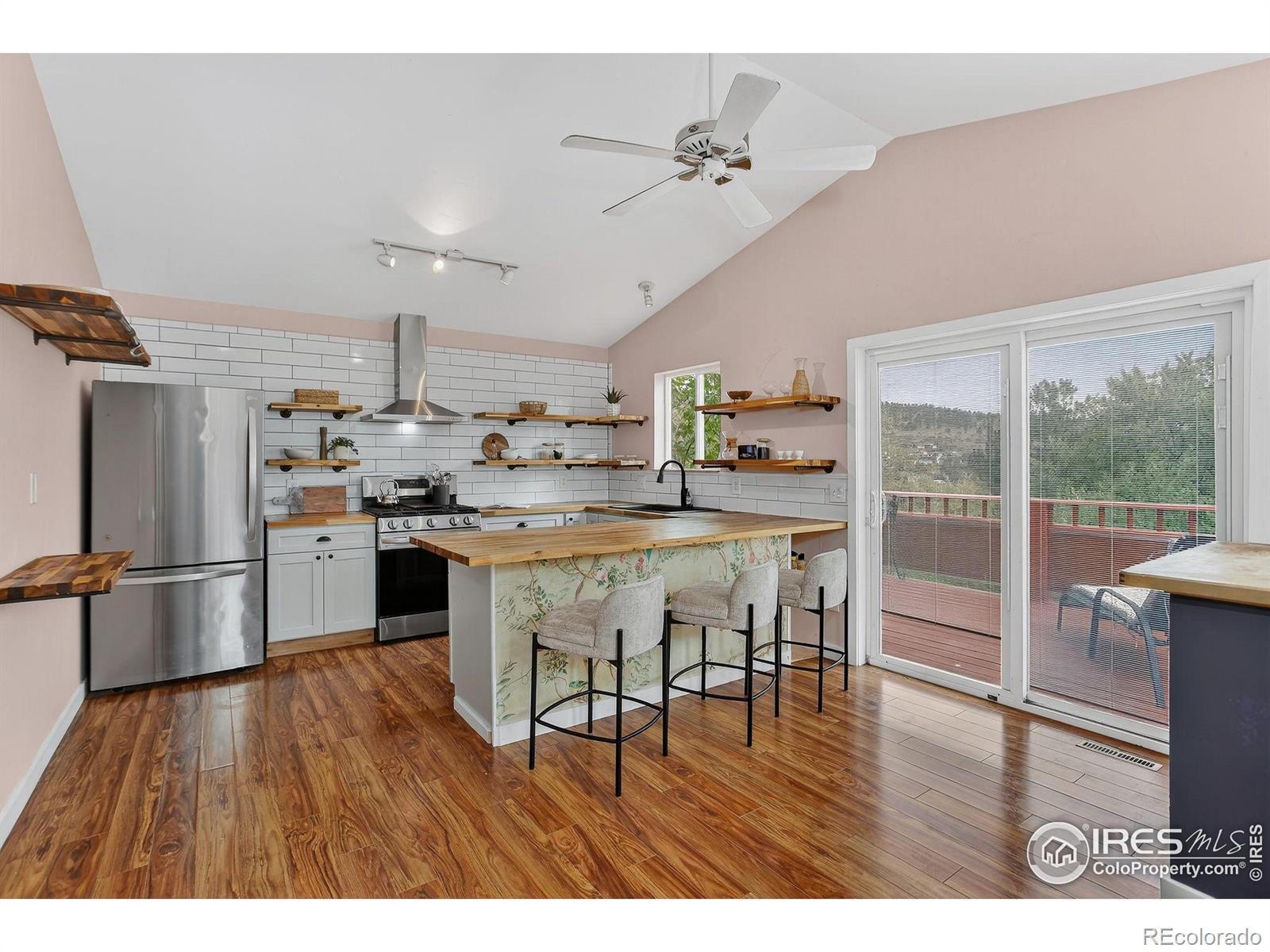 Seller would love to make a deal in 2025! Welcome to 209 Ewald Ave. Lyons, CO. If you desire to live in town, but have the unique feeling of seclusion and living in the trees, look no further because 209 Ewald is "The One!" Modern design meets an original 1985 construction with a 2014 addition and remodel bringing 209 Ewald into the present. With fun colors, practical rolled steel-clad siding and stucco finish this home is NOT a cookie-cutter home, but a home that has the character and charm to set it apart from the rest. Let your artistic flare thrive and house plants flourish in this sun soaked Lyons home on the hillside. The deck off the kitchen offers one of the greatest focal points, a hang-out spot in the sky at tree level, with birds hopping from branch to branch a few feet away with amazing foothill views. This 3 bedroom, 3 bath home is ready for you to add your specific touches, but is move-in ready with a layout that can be flexible to your needs. The walk-out basement, could work as guest space, office, a shop or a grand area for your furry dog friends. The basement bathroom is plumbed for a shower or even dog wash station. The yard space is set up with tiered garden areas and a robust pear tree thrives next to the sandstone patio and deck. Located right on the edge of town, you have easy accessibility to walk to everything in downtown Lyons like restaurants, shops, breweries, multiple parks, and music venues. (Rockygrass in Lyons is a highlight of the summer!) However, a slight pivot the opposite direction and you disappear into the mountains on your mountain bike (Hall Ranch is roughly 1.25 miles away) where you can drop your feet in the St. Vrain river afterwards as you scout your best fishing or camping spots. Lyons, CO is known as "The Gateway To The Rockies" and Lyons truly has the vibe that makes you feel welcome to dive right into the fun and adventure of Colorado.