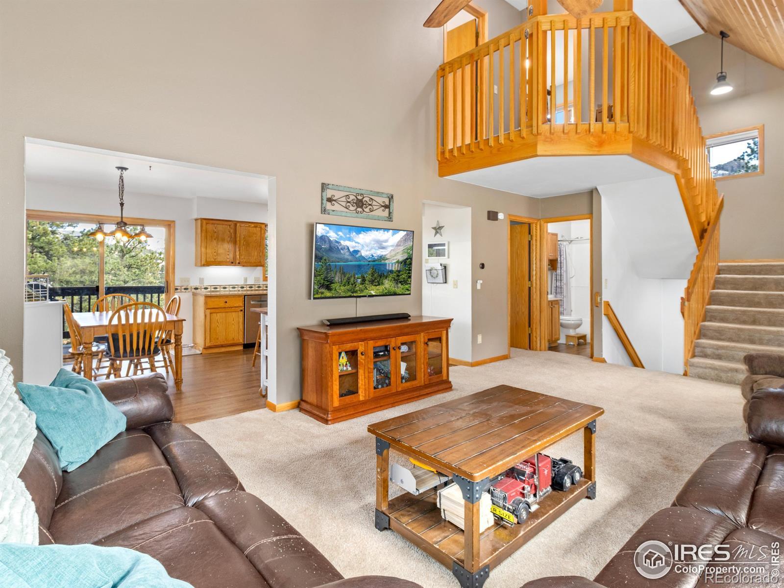 Tucked among the pines on the west side of town, this 3-bedroom, 3-bath home offers the perfect balance of privacy, space, and accessibility to all that the Estes Valley offers. With 2,100 square feet of inviting living space and a generous .84-acre lot, this property gives you room to breathe, play, and enjoy the best of Estes living - just minutes from downtown and the entrance to Rocky Mountain National Park. The home sits proudly among mature trees, with a gently sloping drive leading to a two-car attached garage and covered front porch. It's the kind of home that blends seamlessly into the natural landscape - quiet, established, and thoughtfully cared for. Step inside, and you'll find an open, light-filled layout designed for comfort. Whether you're curled up on the sofa watching a snowstorm roll in or entertaining friends on a summer evening, the space feels cozy yet connected to nature. A sliding glass door opens from the dining room to one of the home's balconies, where you can grill dinner while watching the light shift across the peaks. Upstairs, the primary suite feels like a true escape, with its own private balcony overlooking the mountains. Imagine waking to sunlight streaming through the trees, coffee in hand, and the crisp scent of pine in the air. The lower level adds more versatility - perfect as a recreation room, hobby space, or cozy family den. With walk-out access to the fenced portion of the yard, it's ideal for pets, kids, or simply stepping outside to enjoy the peaceful surroundings. Outdoors, there's plenty of room to garden, play, or just soak in the scenery. This isn't just a place to live - it's a place to thrive, breathe, and reconnect. Welcome home to 1263 Broadview Road - where mountain serenity is part of your every day.