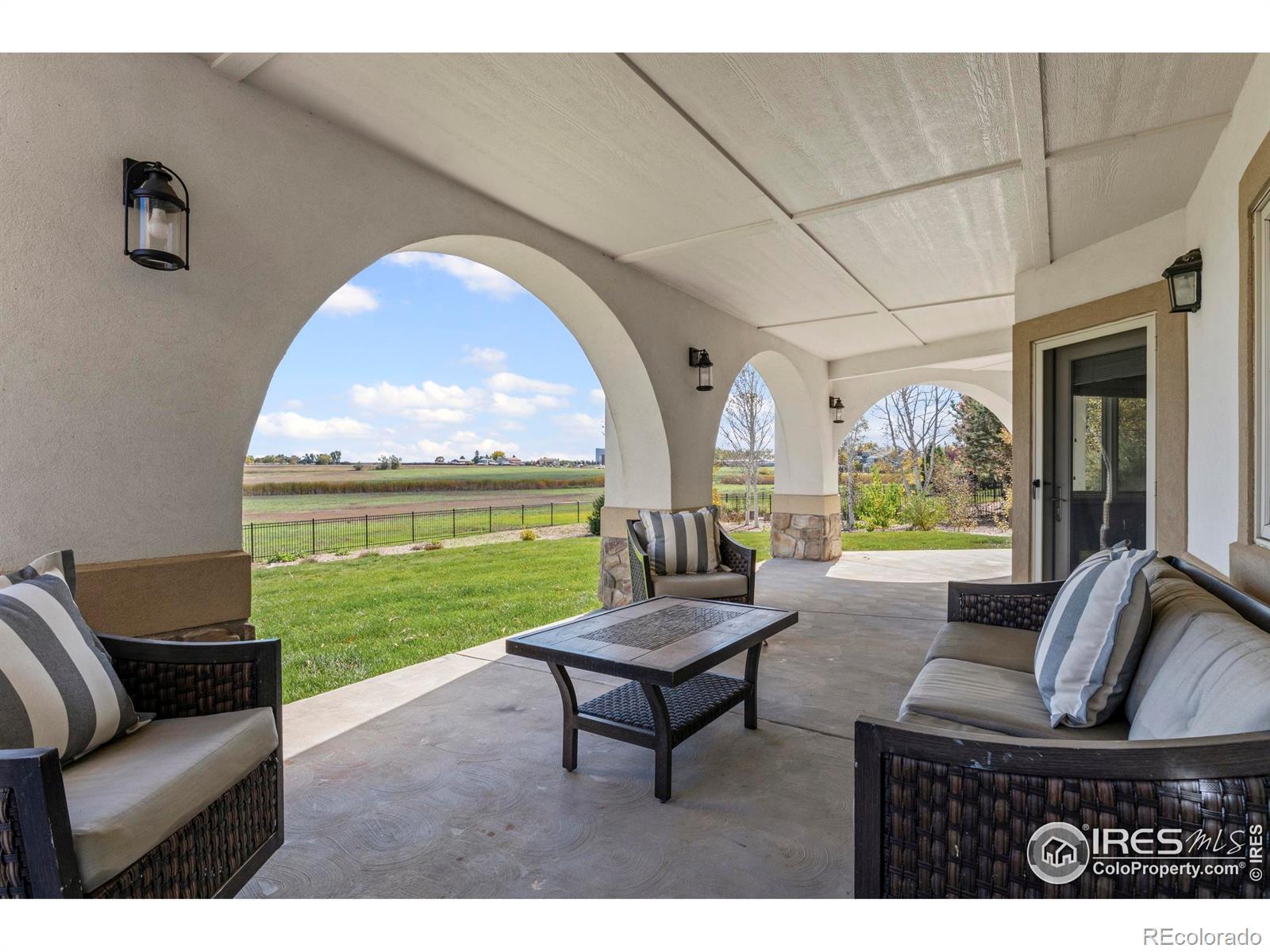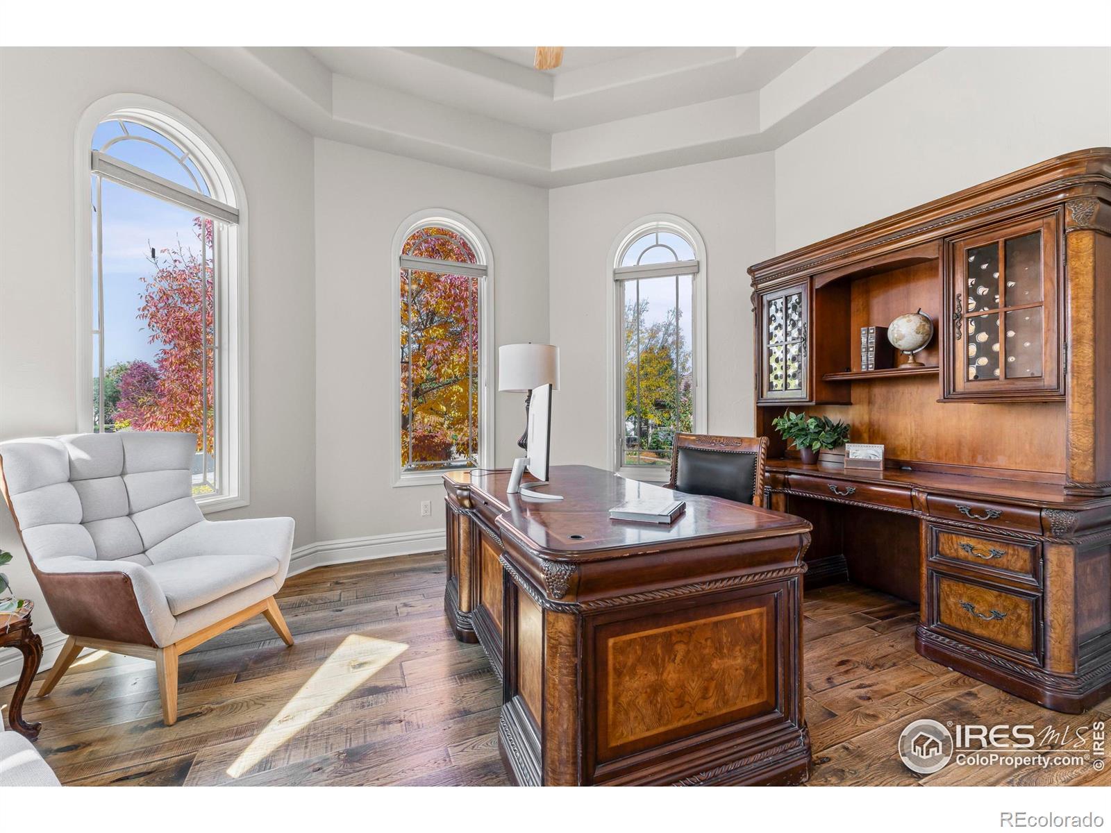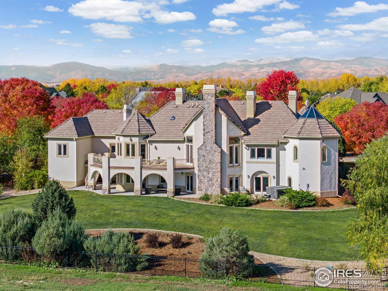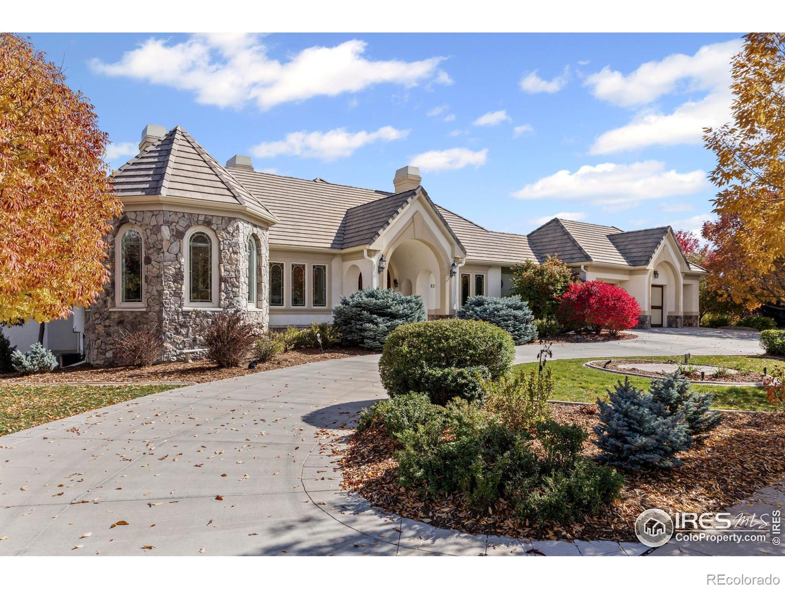 Step into your dream sanctuary at this majestic Ranch with walkout basement, boasting 5 beds, 5 baths, 4 fireplaces, and three laundry areas! On nearly an acre of land, the fenced yard with dual gates and dual patios completes this haven set for family gatherings or multi-generational living. Enter the grand main floor foyer, stepping into the warmth of luxurious tile and hickory floors. The living room flows into a gourmet kitchen with two islands, a prep sink, pot filler, and a warming drawer. Gorgeous counter tops, a wine fridge, and Thermador fridge/gas range/oven are prime for entertaining guests, plus custom cabinets, and an eat-in nook with fireplace and ample windows. A grand formal dining room awaits toasts, and the oversized pantry room features its own built-in storage. Retreat to the main floor primary suite, with built-in bookshelves, and a fireplace. The walk-in closet has an island, and gorgeous built-ins. The stone-clad shower with dual heads, and the 72" jetted tub, create a spa-like experience. The pyramid shaped sky light channels natural light. An octagon-shaped main-floor office (or 5th bedroom) has a private exterior door and plenty of windows. Unwind on the upper back patio, overlooking the private open space just beyond the yard. Venture downstairs where three rooms each open to the walkout lower patio. The 2nd primary bedroom has a cedar walk-in closet, bath with a poured-pan shower, and dual vanities. The cork-floored wine room cradles bottles in gorgeous racks, while the tranquil sauna room steams away the world. A fireplace unites the great room and wet bar areas. This level also features a separate staircase entry, up into the garage. This isn't just a home - it's a heartbeat of luxury amongst walking trails, ponds, a community park/tennis/open spaces, and is near Fossil Creek Reservoir Natural Area! This location with this kind of luxury is a rare find - especially in such a prime location for I-25 travel, recreation, and amenities.