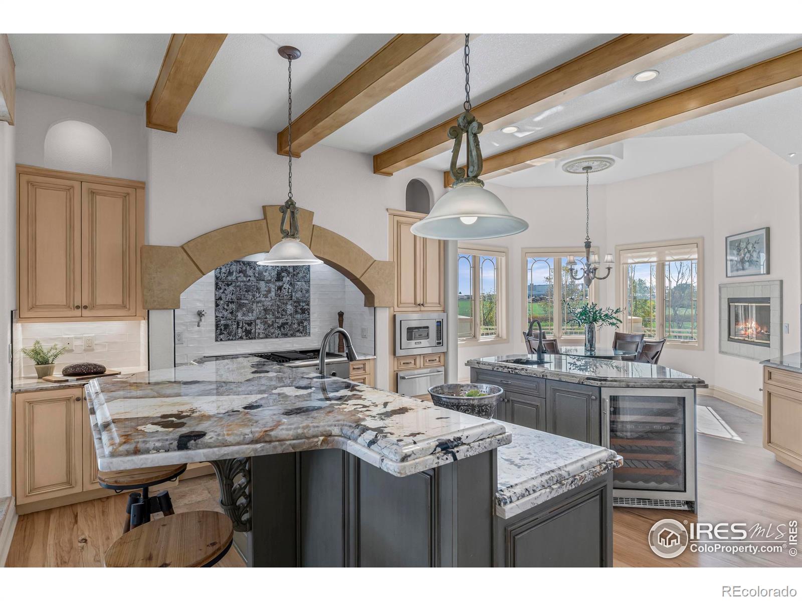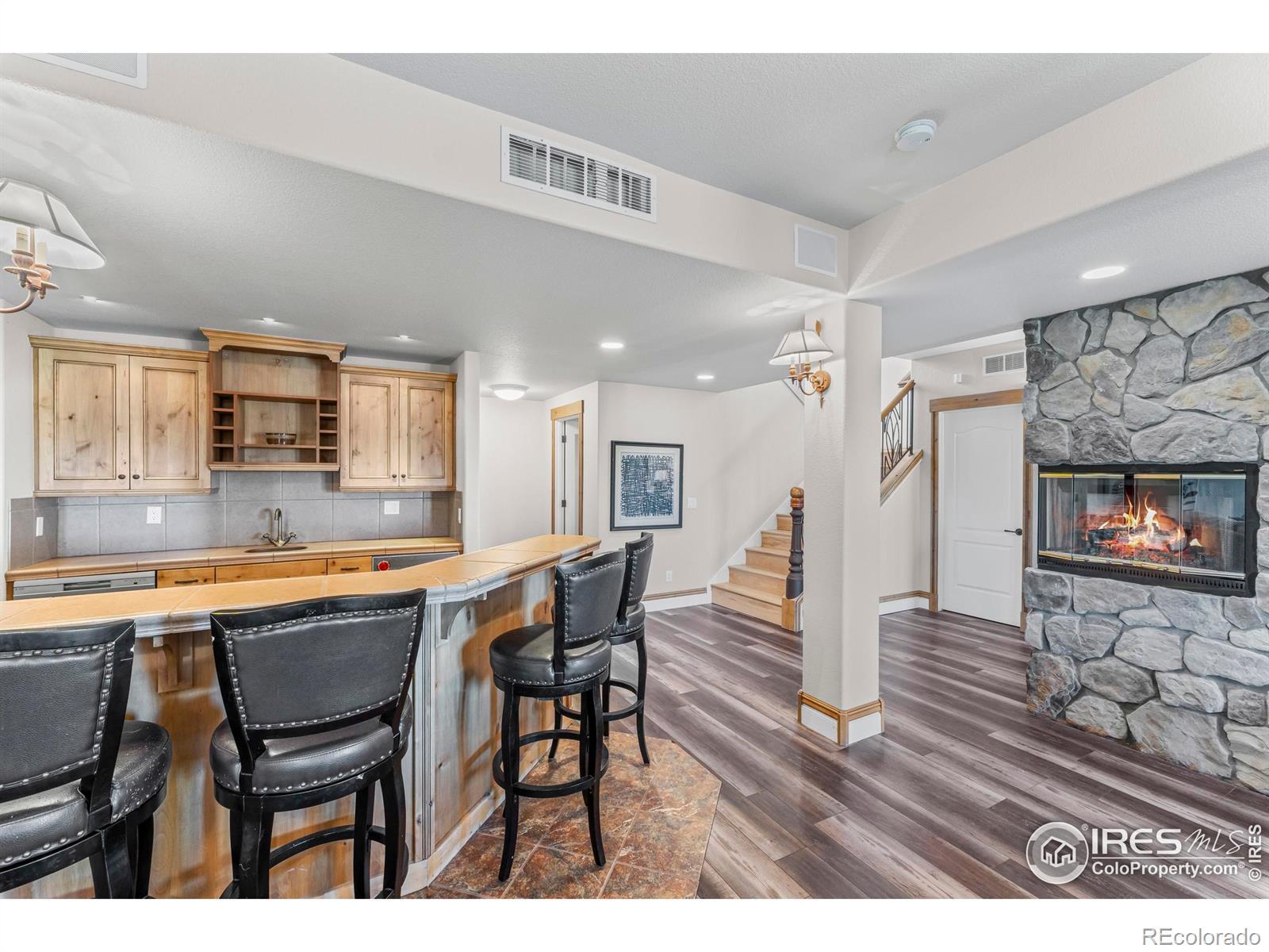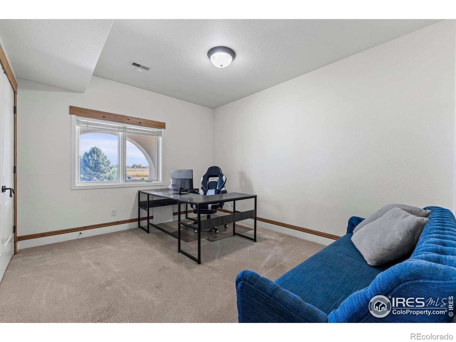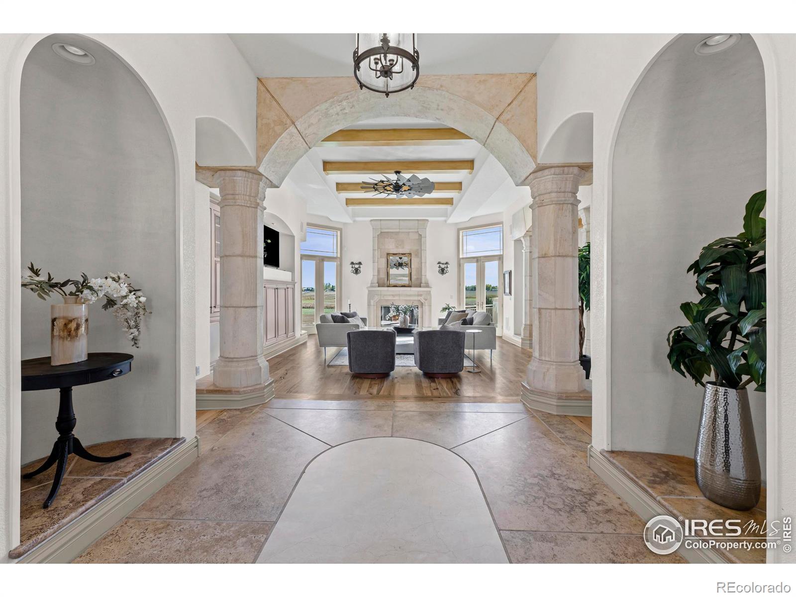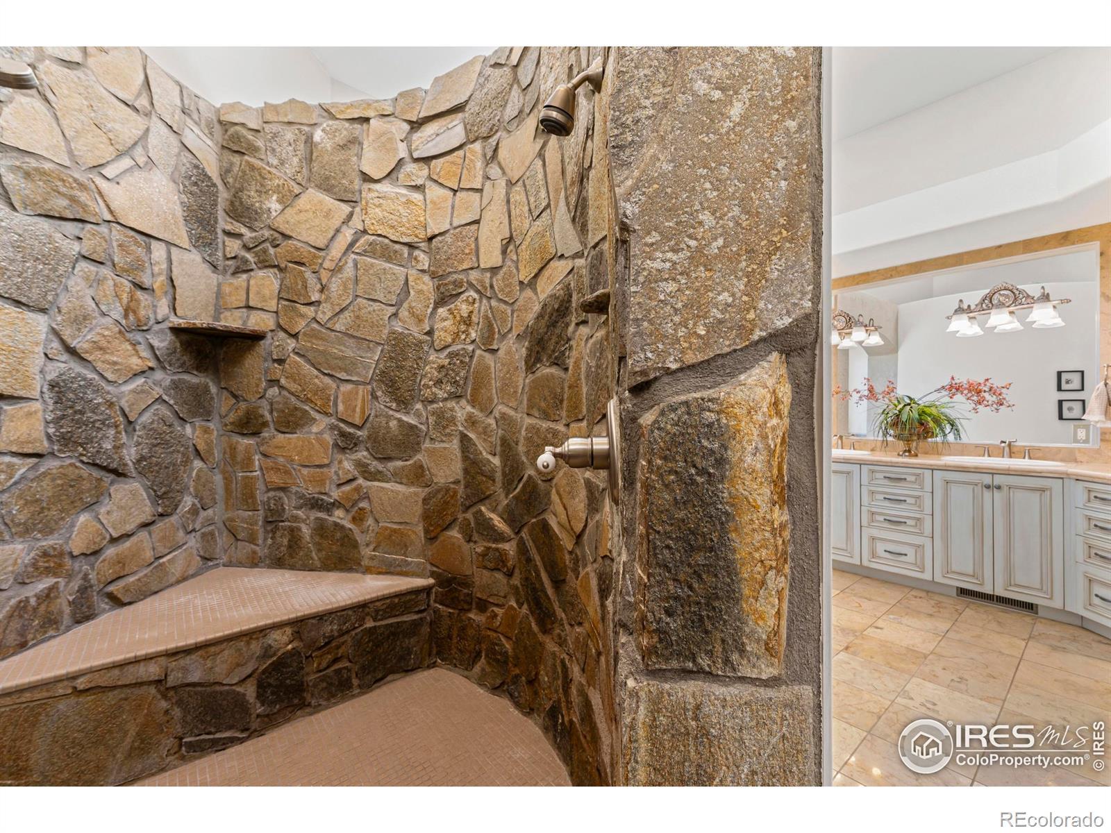 Step into your dream sanctuary at this majestic Ranch with walkout basement, boasting 5 beds, 5 baths, 4 fireplaces, and three laundry areas! On nearly an acre of land, the fenced yard with dual gates and dual patios completes this haven set for family gatherings or multi-generational living. Enter the grand main floor foyer, stepping into the warmth of luxurious tile and hickory floors. The living room flows into a gourmet kitchen with two islands, a prep sink, pot filler, and a warming drawer. Gorgeous counter tops, a wine fridge, and Thermador fridge/gas range/oven are prime for entertaining guests, plus custom cabinets, and an eat-in nook with fireplace and ample windows. A grand formal dining room awaits toasts, and the oversized pantry room features its own built-in storage. Retreat to the main floor primary suite, with built-in bookshelves, and a fireplace. The walk-in closet has an island, and gorgeous built-ins. The stone-clad shower with dual heads, and the 72" jetted tub, create a spa-like experience. The pyramid shaped sky light channels natural light. An octagon-shaped main-floor office (or 5th bedroom) has a private exterior door and plenty of windows. Unwind on the upper back patio, overlooking the private open space just beyond the yard. Venture downstairs where three rooms each open to the walkout lower patio. The 2nd primary bedroom has a cedar walk-in closet, bath with a poured-pan shower, and dual vanities. The cork-floored wine room cradles bottles in gorgeous racks, while the tranquil sauna room steams away the world. A fireplace unites the great room and wet bar areas. This level also features a separate staircase entry, up into the garage. This isn't just a home - it's a heartbeat of luxury amongst walking trails, ponds, a community park/tennis/open spaces, and is near Fossil Creek Reservoir Natural Area! This location with this kind of luxury is a rare find - especially in such a prime location for I-25 travel, recreation, and amenities.